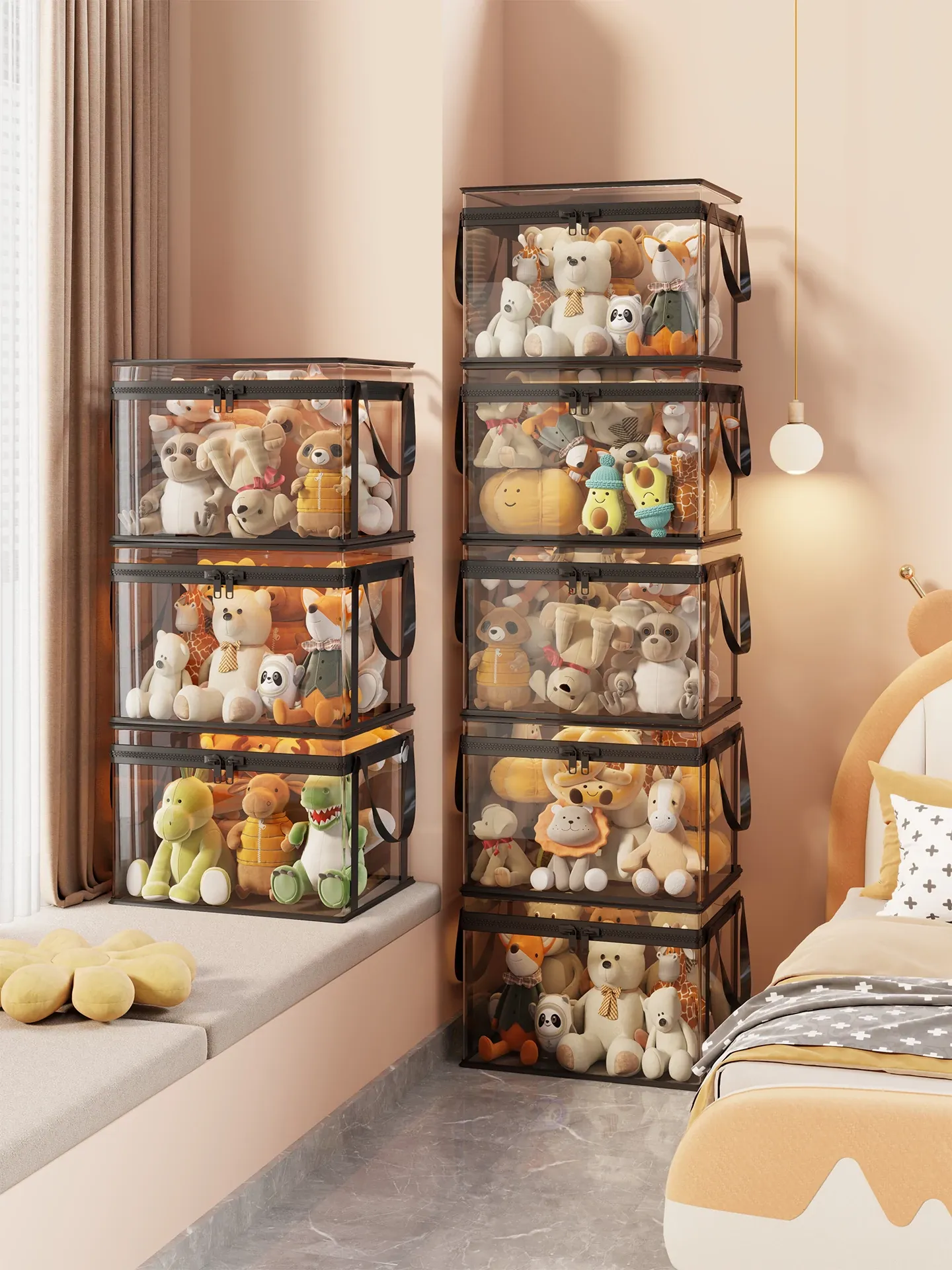 ぬいぐるみ収納バケツ|おもちゃ整理の必需品!大容量で家族向け、透明デザインで簡単に中身が見える!子供のお人形やぬいぐるみをスッキリ収納!