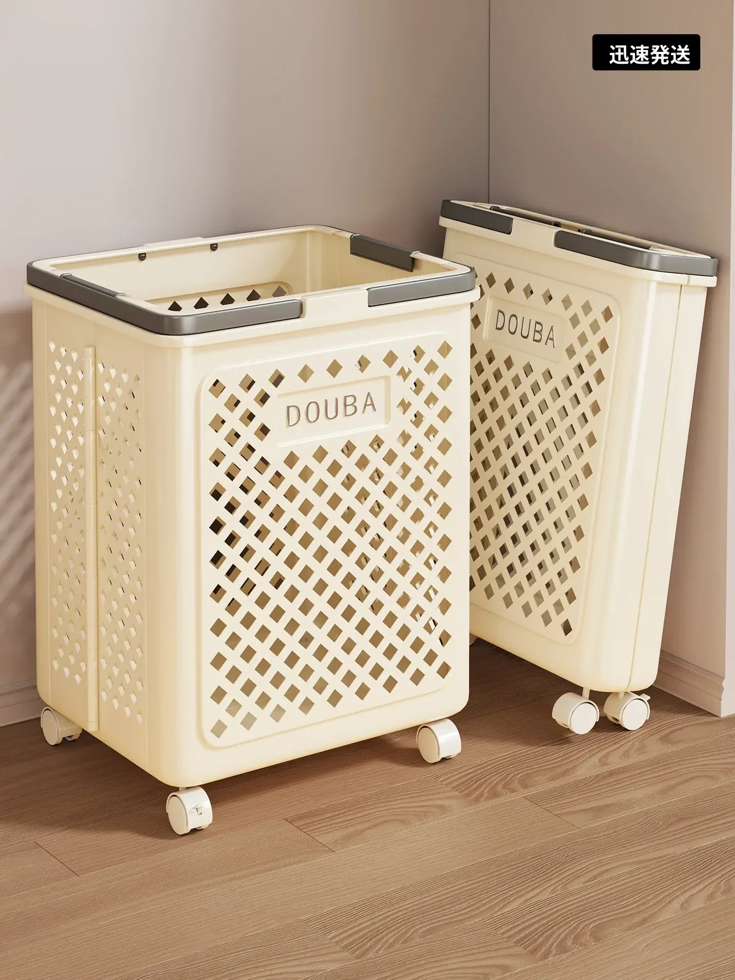 大型キャスター付き洗濯物バスケット - 家庭用の便利な収納カゴ、移動もラクラク!バスルームや浴室に最適な大容量デザインで、毎日の洗濯をもっとスムーズに!
