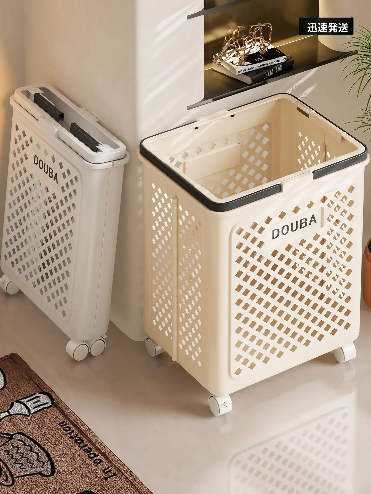 バスルームキャビネット下の便利な洗濯物バスケット - 移動可能で大容量、寮や家庭に最適!整理整頓をサポートし、清潔な空間を実現します。