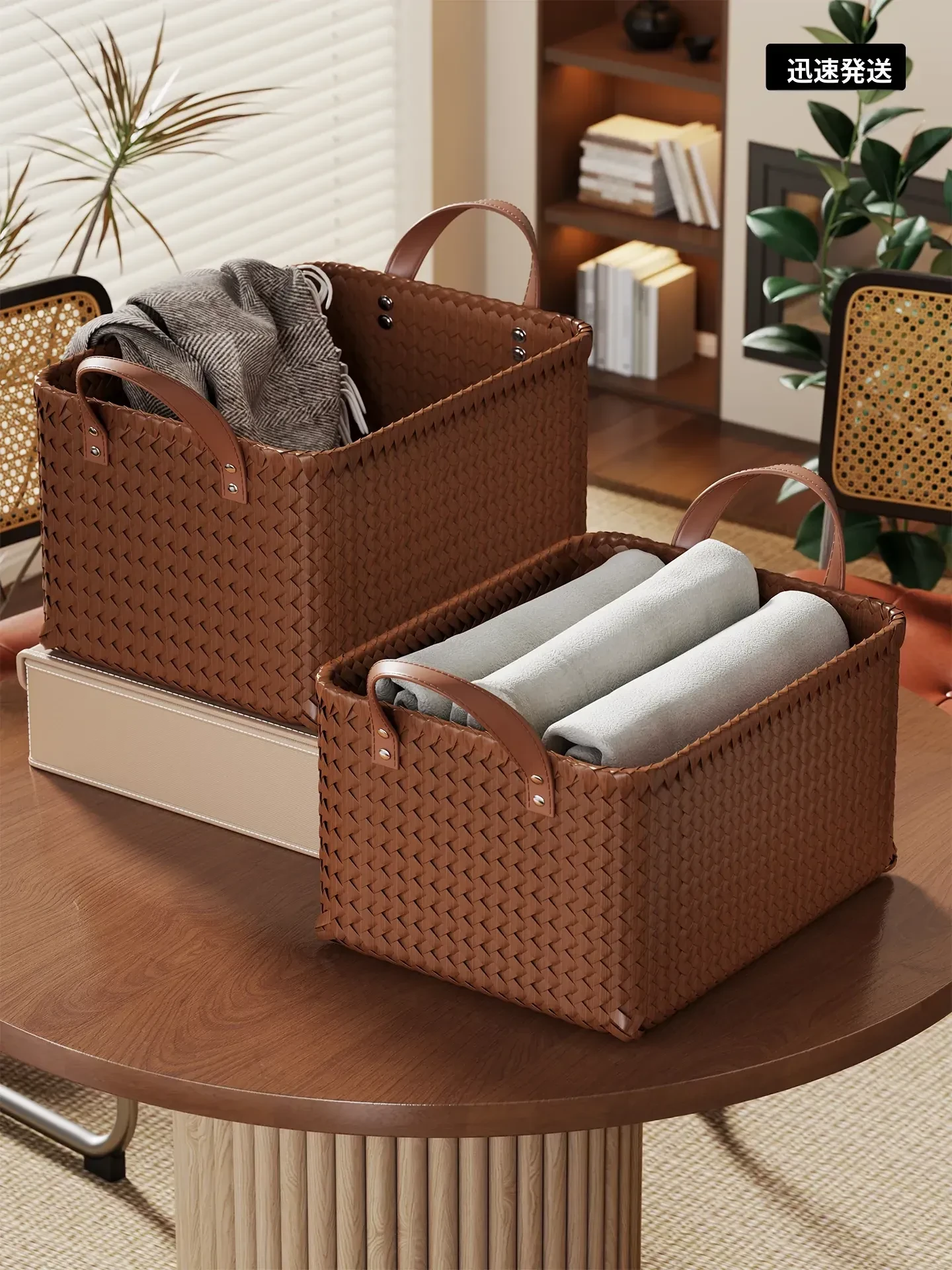 天然木製の収納バスケット - エントランスやリビングに最適!おしゃれなティーテーブル用の小物入れ、スナックや鍵、リモコン、お化粧品までスッキリ収納。生活空間を美しく整理整頓しましょう!