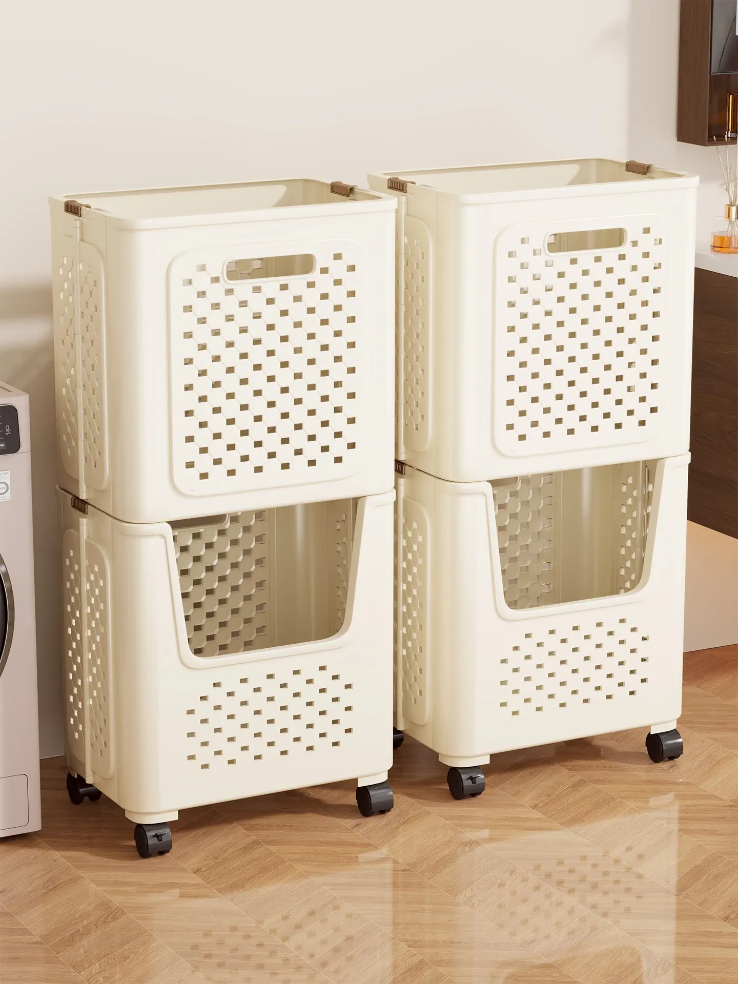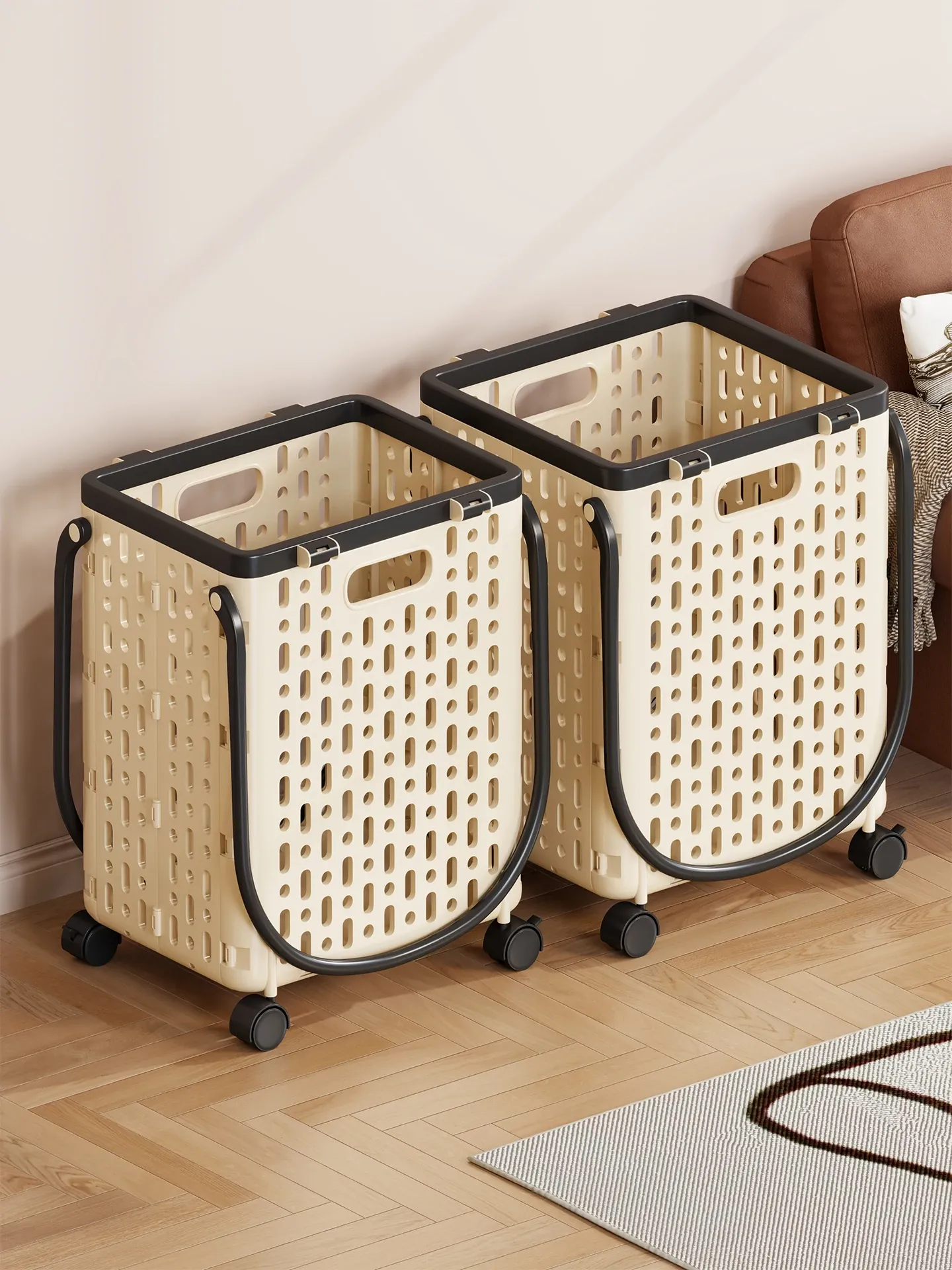 Stylish Large Capacity Laundry Basket with Wheels - Foldable and Chic Design for Home Use, Perfect for Organizing Dirty Clothes in Your Bathroom