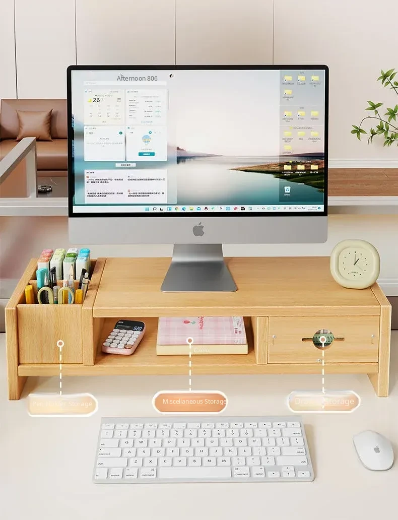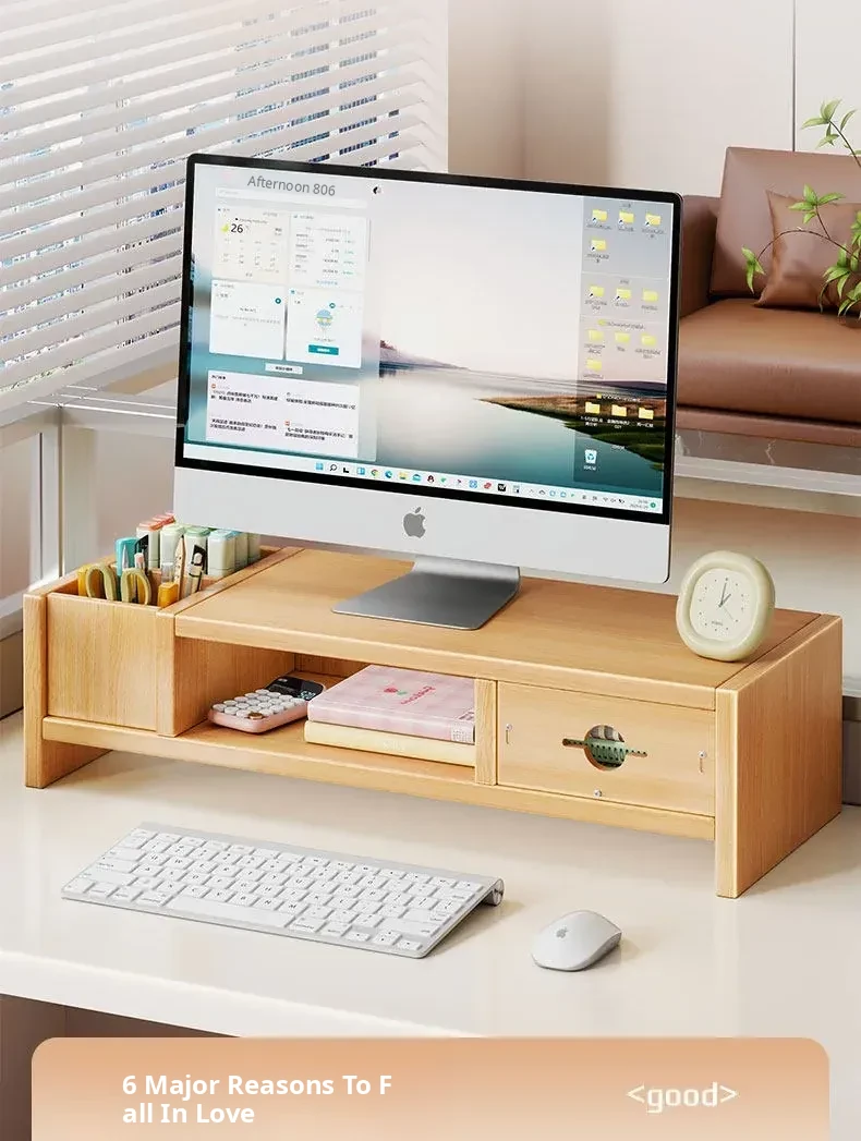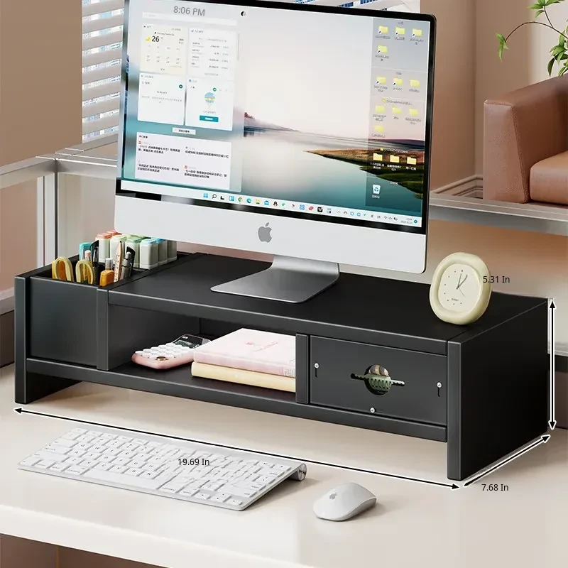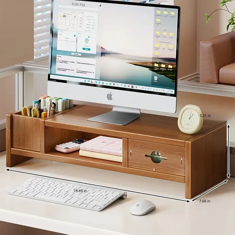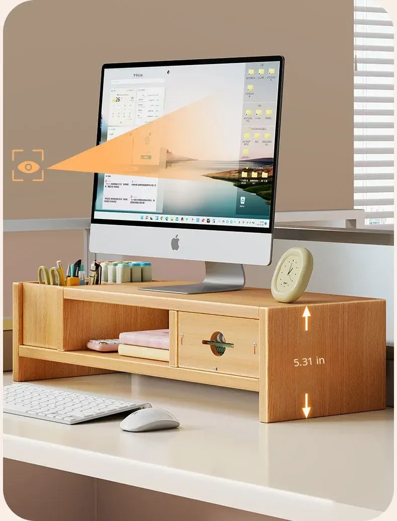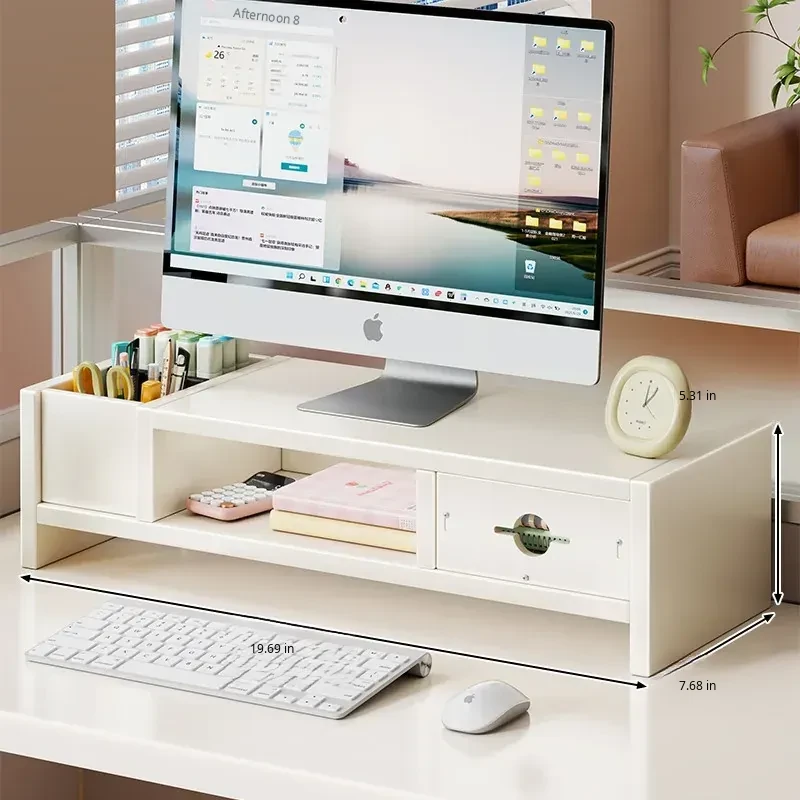 Adjustable Monitor Stand for Desktop - Space-Saving Organizer with Drawer and Storage Shelf for Your Office Workspace