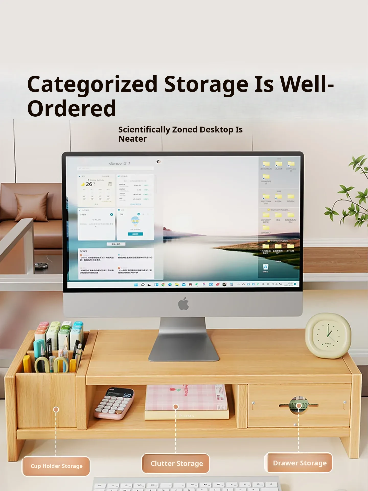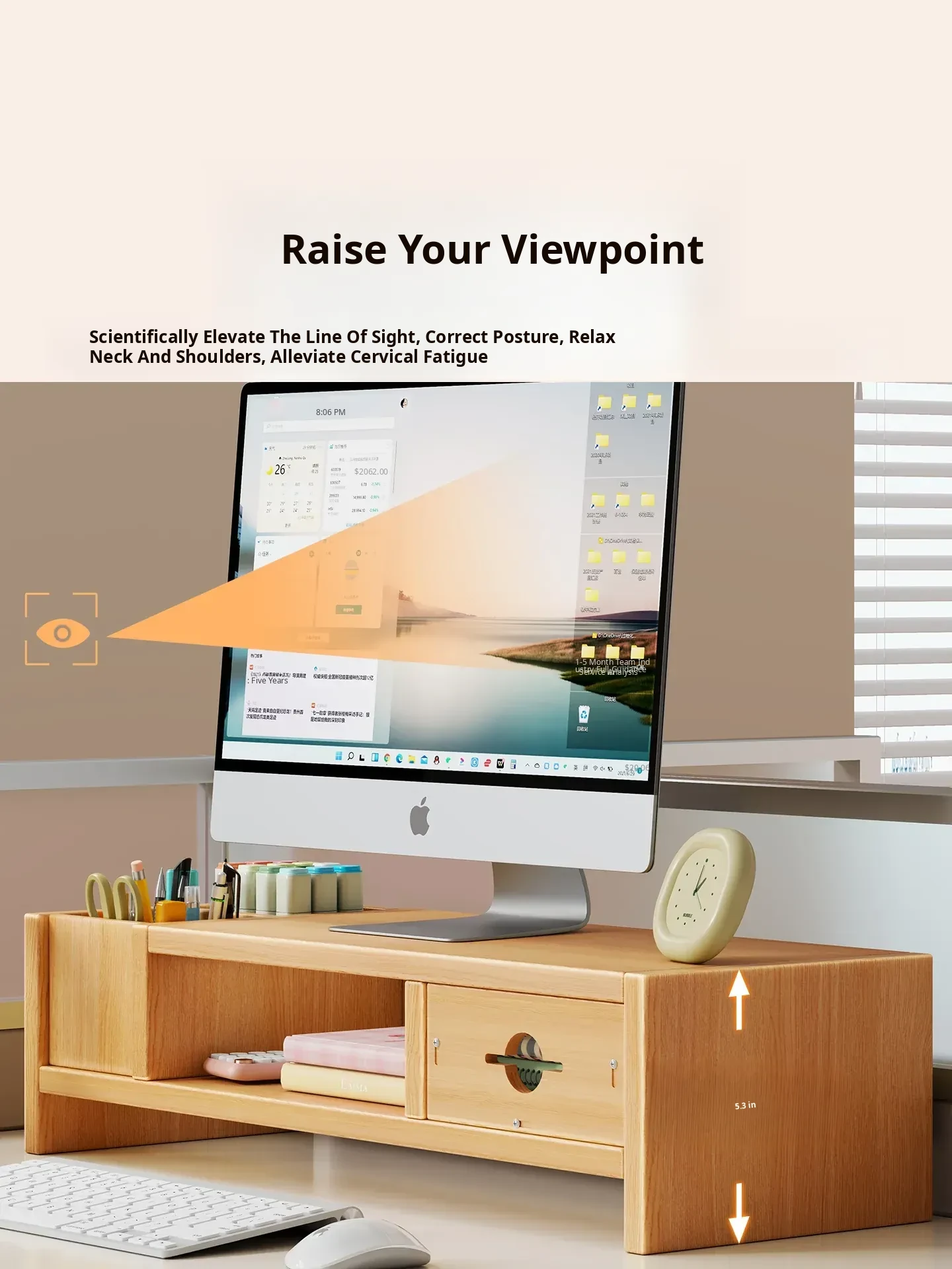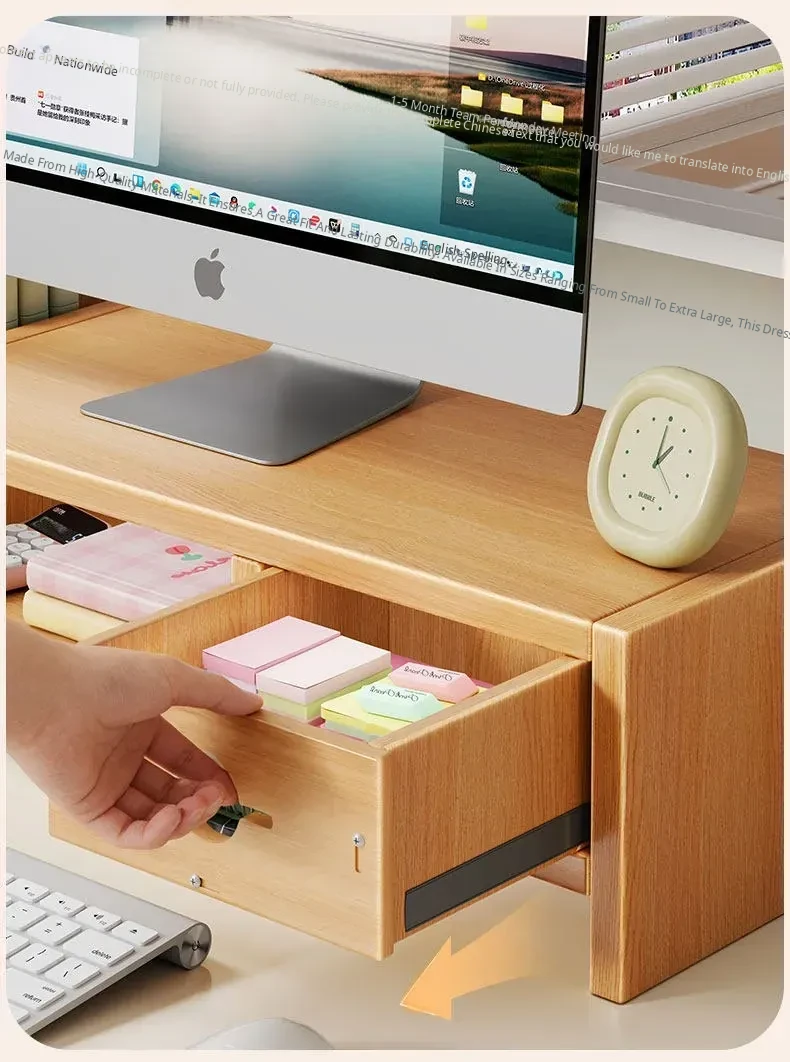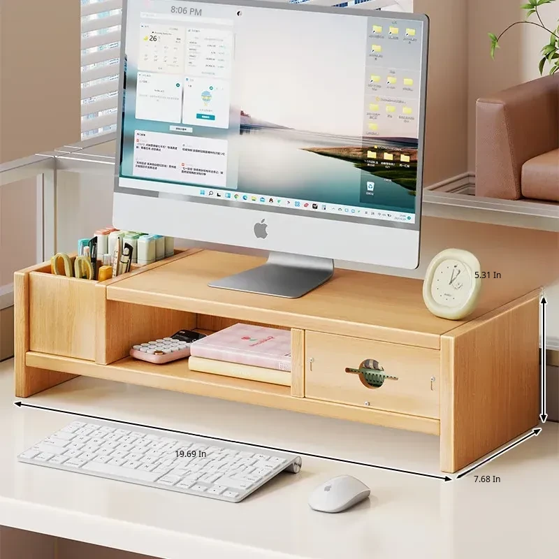 Adjustable Monitor Stand for Desktop - Space-Saving Organizer with Drawer and Storage Shelf for Your Office Workspace