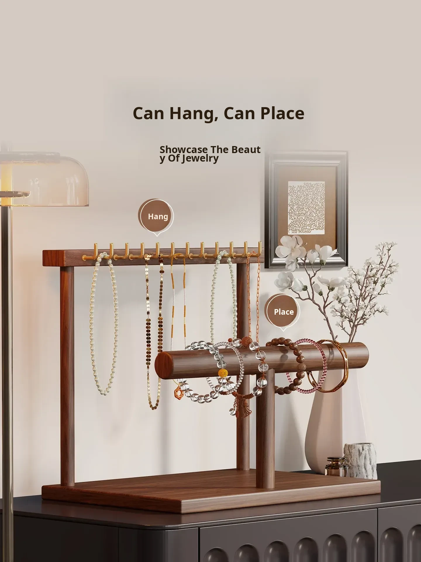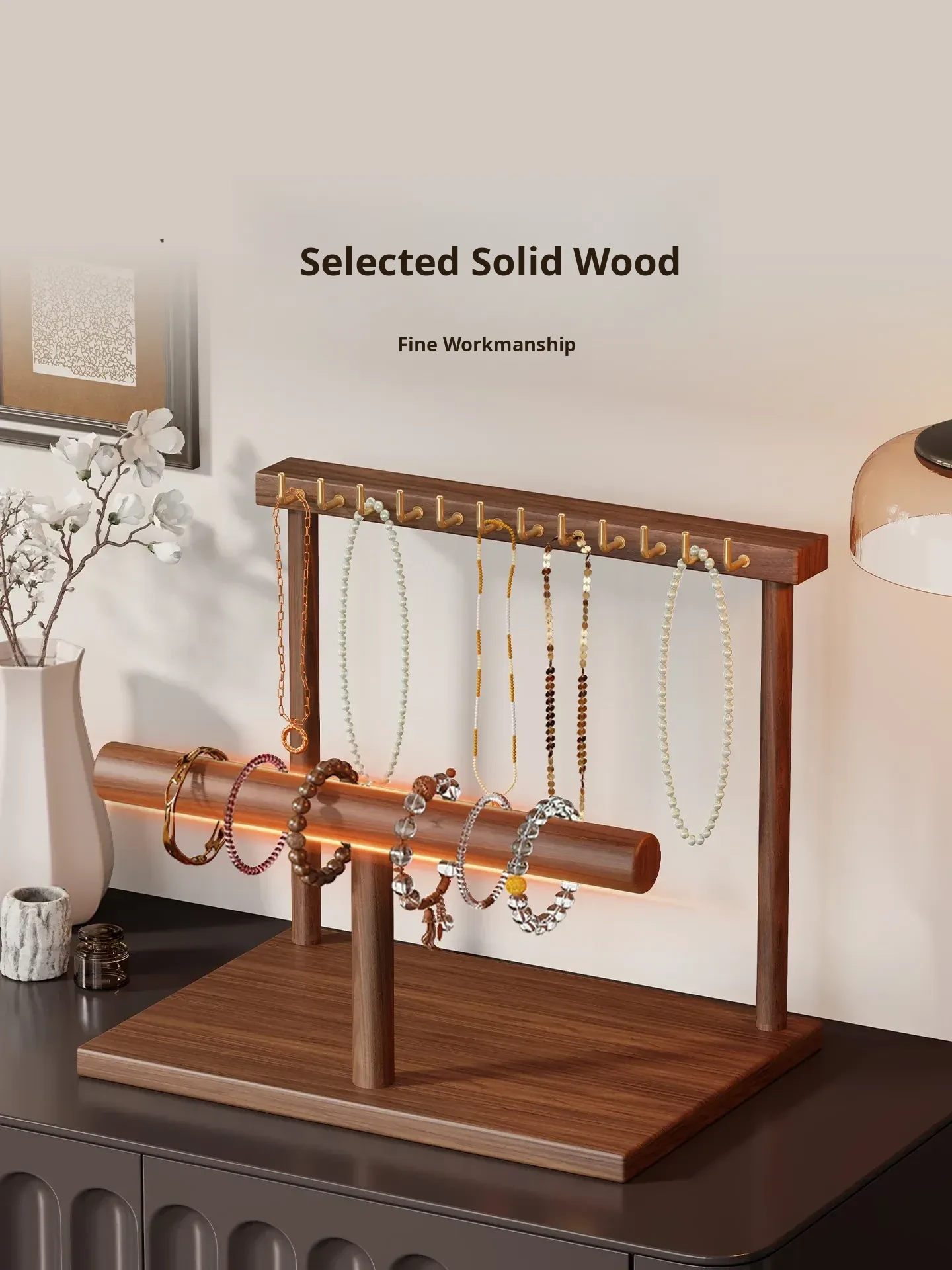 Elegant Jewelry Display Stand & Organizer Box with Hooks for Necklaces, Bracelets, Watches, Bangles, and Beads - Perfect Home Decor for Stylish Storage and Easy Access!