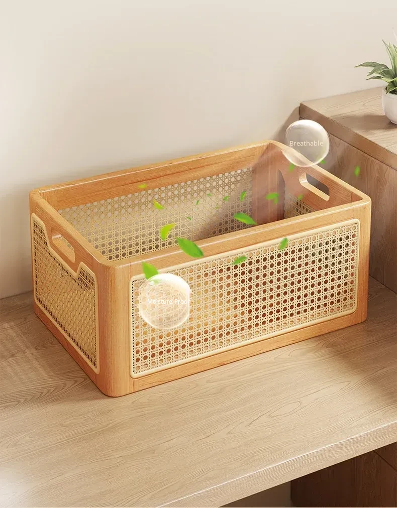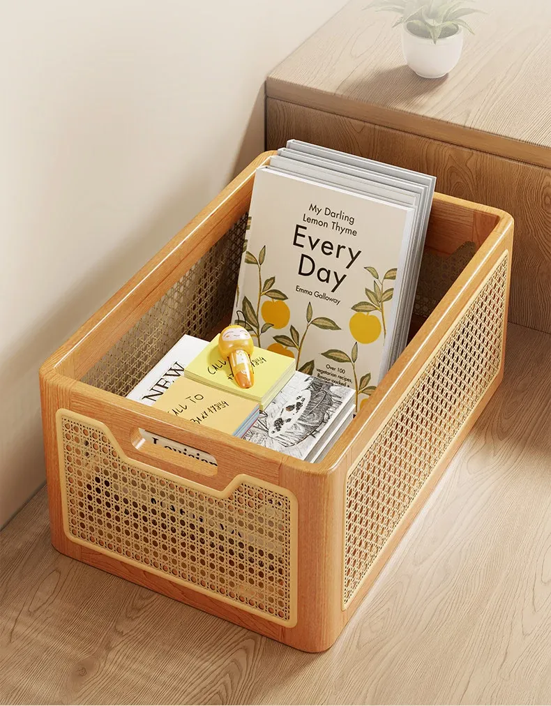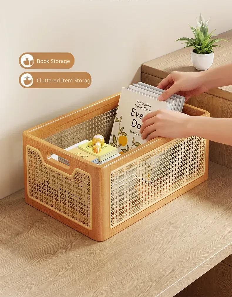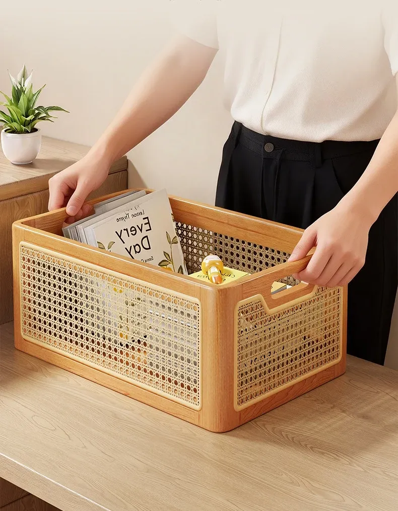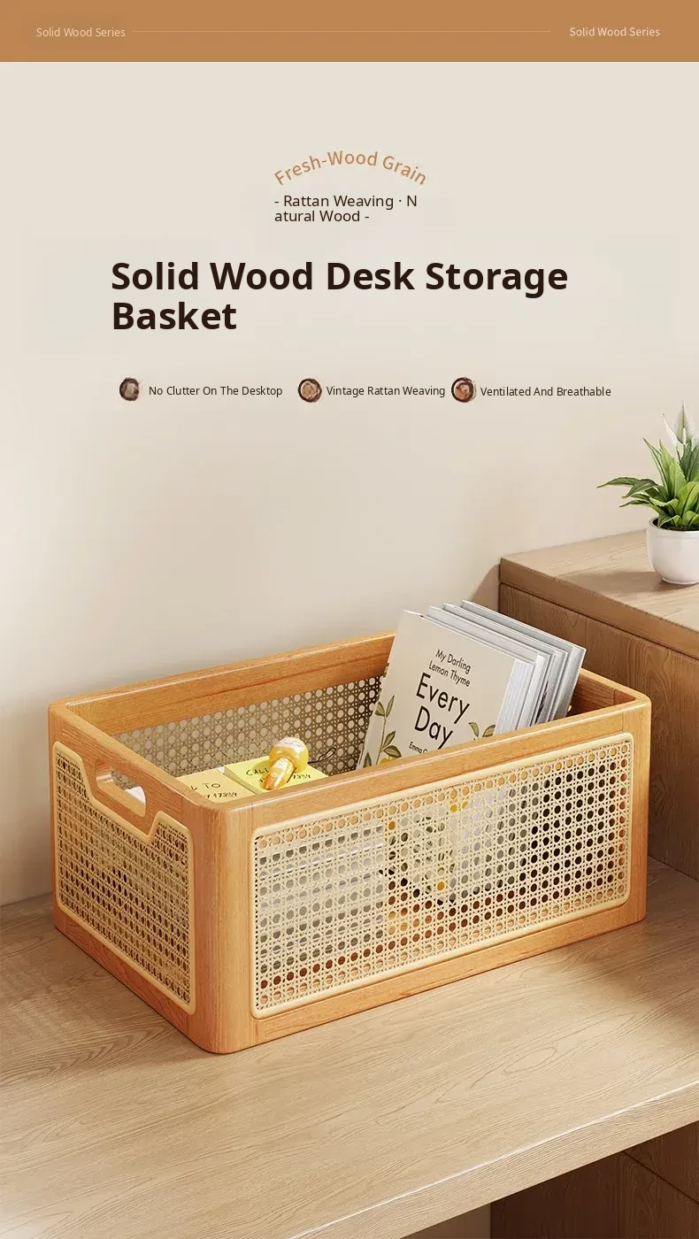 Elegant Solid Wood Desk Organizer – Multi-Purpose Storage Box for Cosmetics, Keys, Snacks, and Miscellaneous Items – Handcrafted Woven Basket for a Tidy Coffee Table