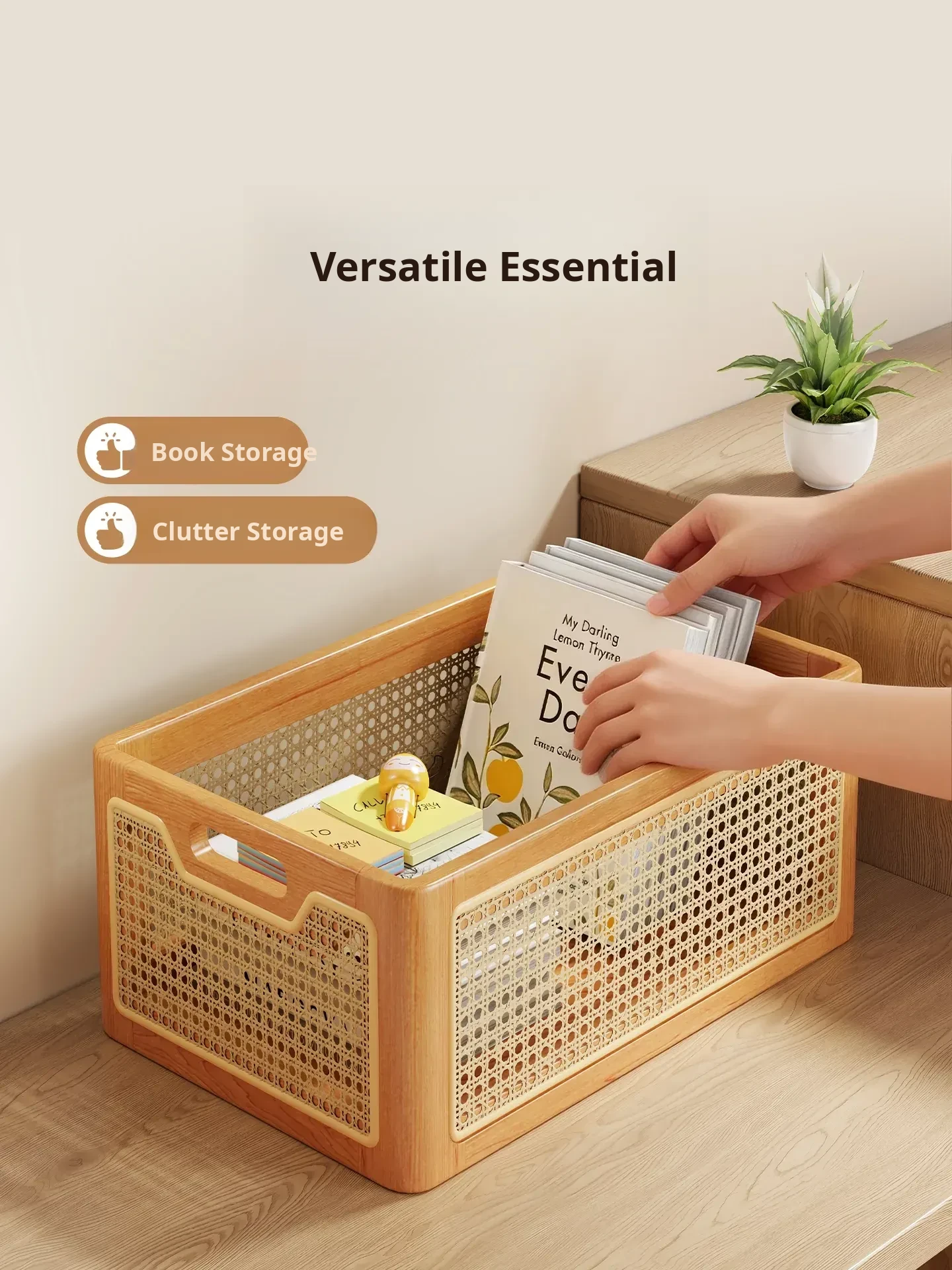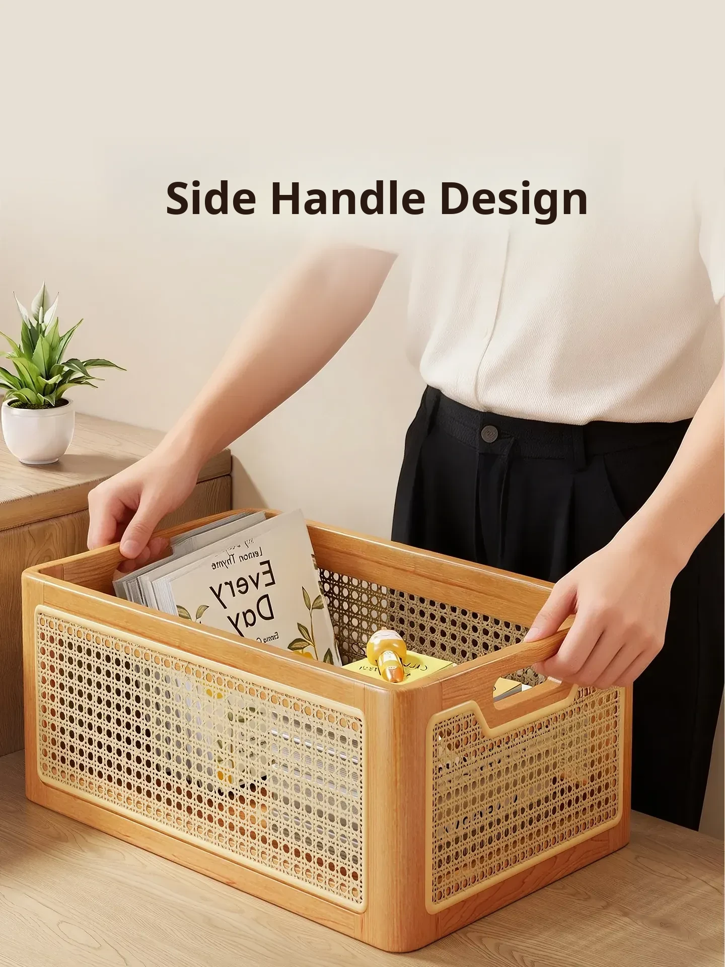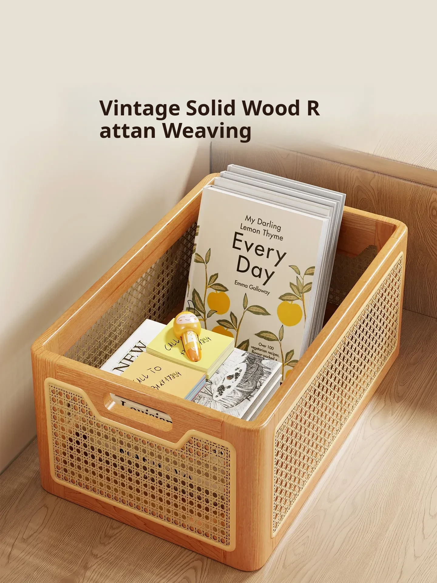 Elegant Solid Wood Desk Organizer – Multi-Purpose Storage Box for Cosmetics, Keys, Snacks, and Miscellaneous Items – Handcrafted Woven Basket for a Tidy Coffee Table