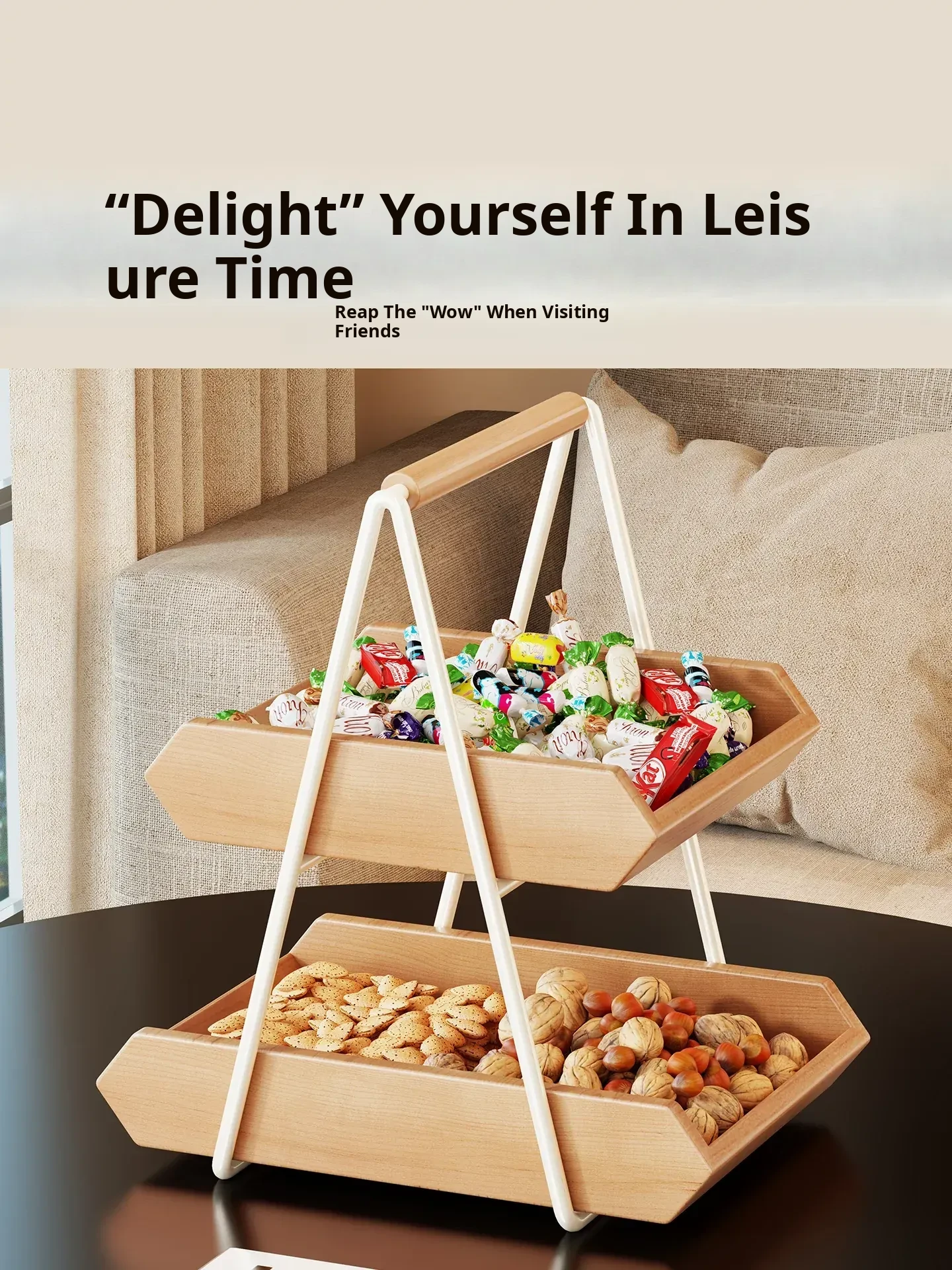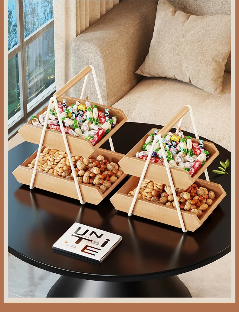 Elegant Solid Wood Fruit Bowl for Home Living Room - Luxurious Display Stand for Snacks, Candy, and Dried Fruits, Perfect for Coffee Table Décor