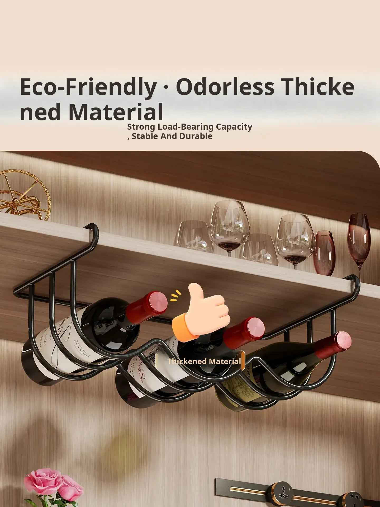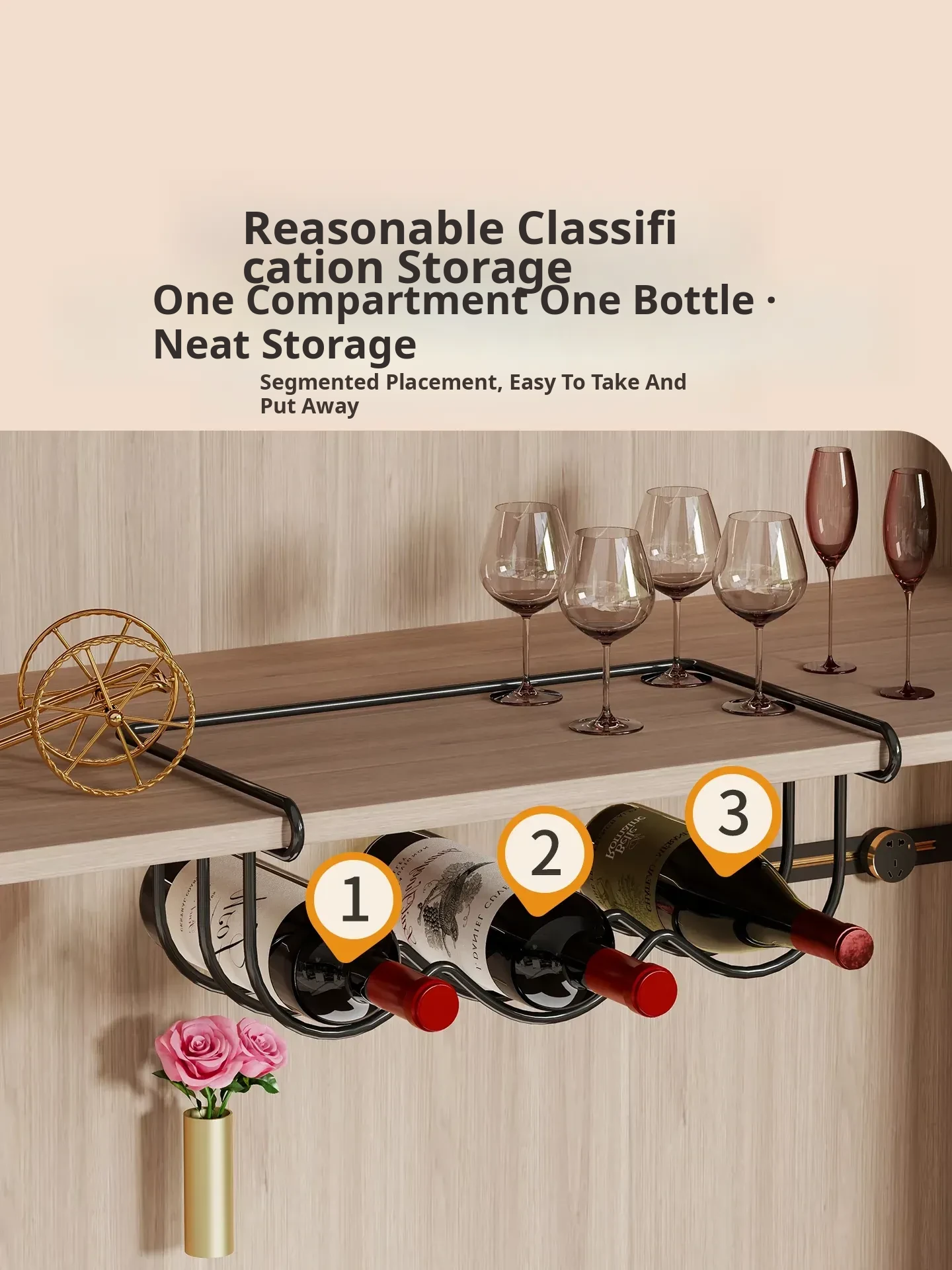 Elegant Wall-Mounted Wine Rack - Space-Saving Hanging Storage for Red Wine and Champagne, Stylish Multi-Tier Display Shelf for Your Collection