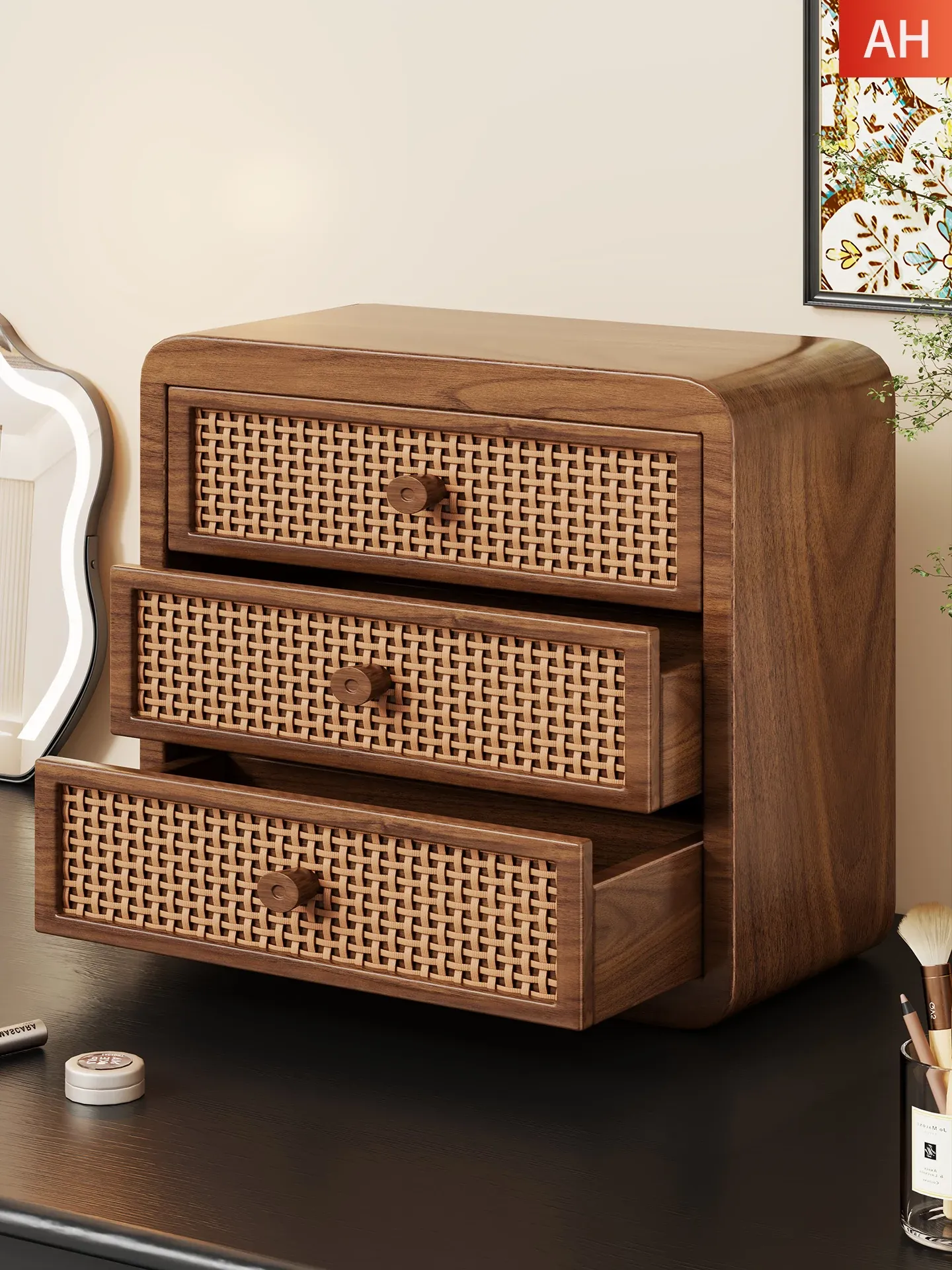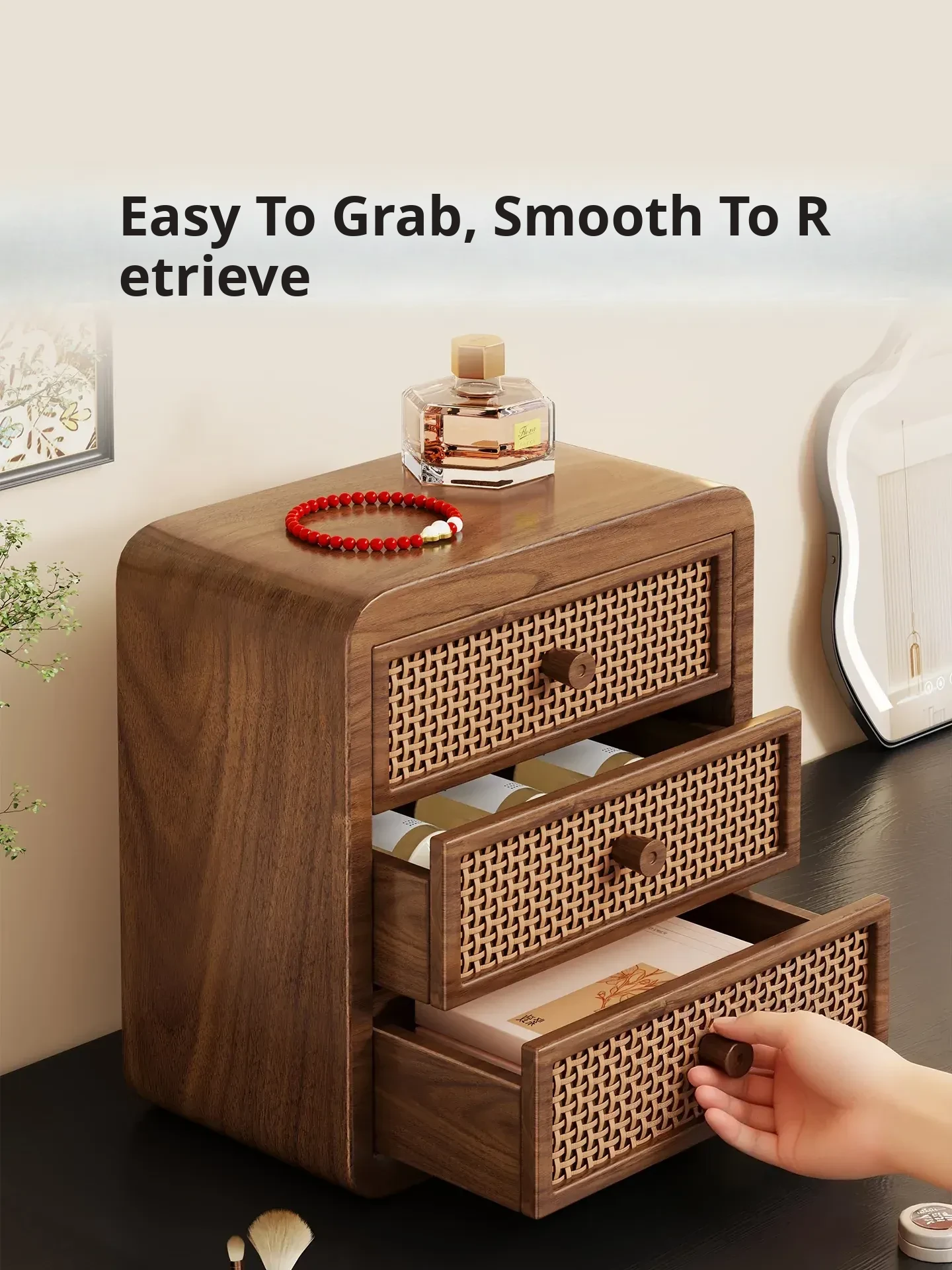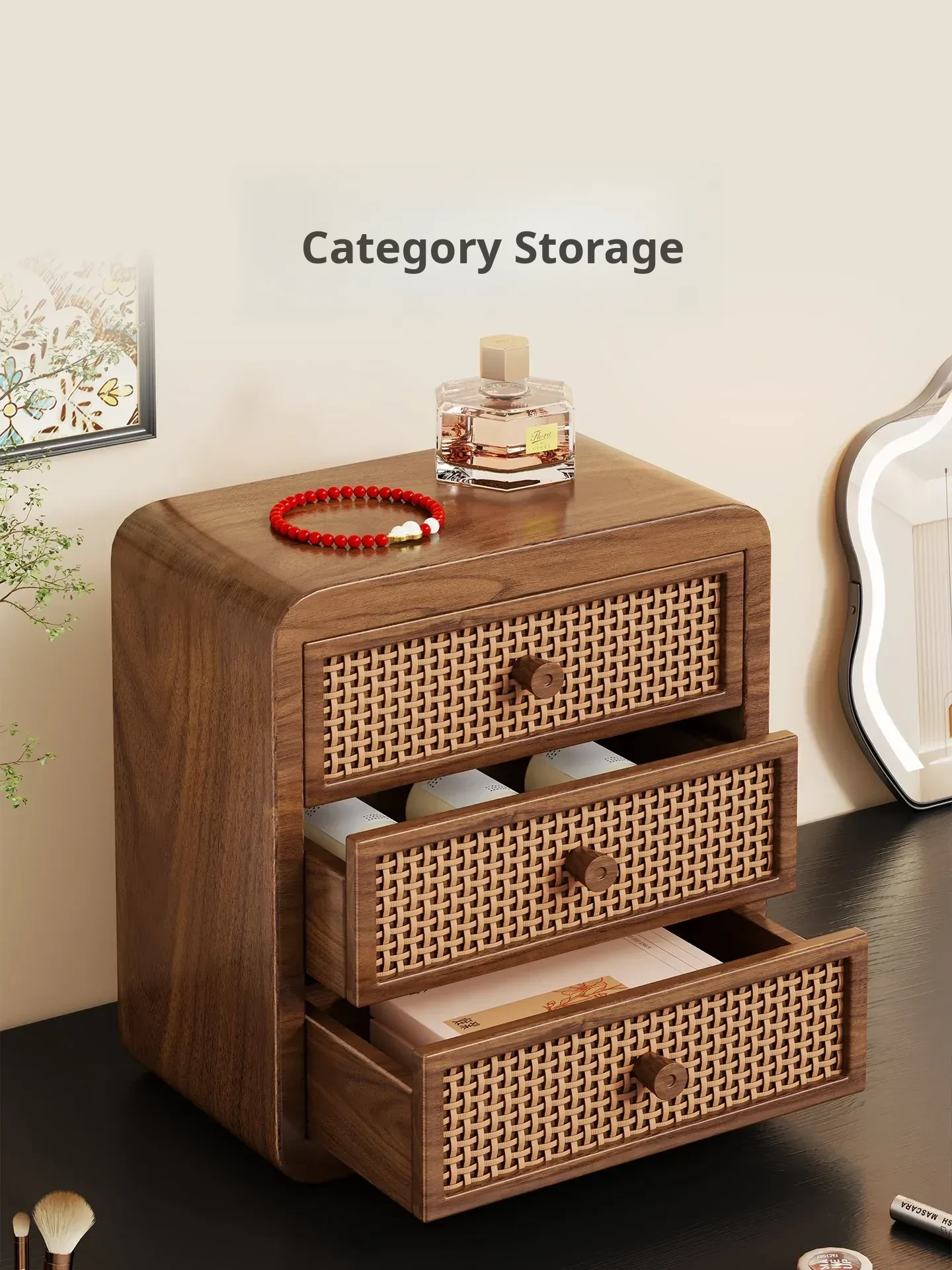 Elegant Wooden Jewelry Organizer Box - Makeup Vanity Display Stand for Lipsticks and Perfumes - Stylish Skincare Storage Rack for a Clutter-Free Space