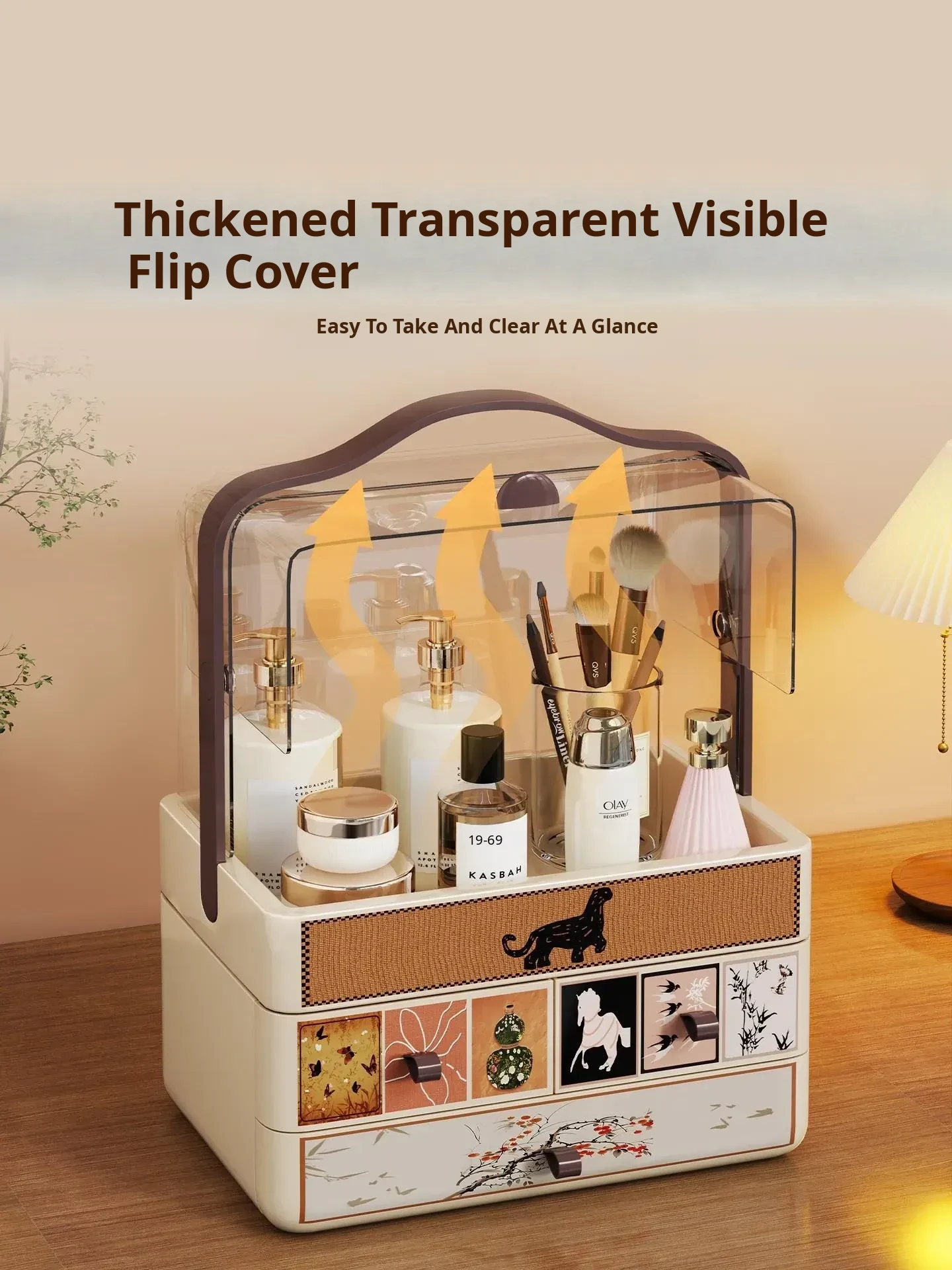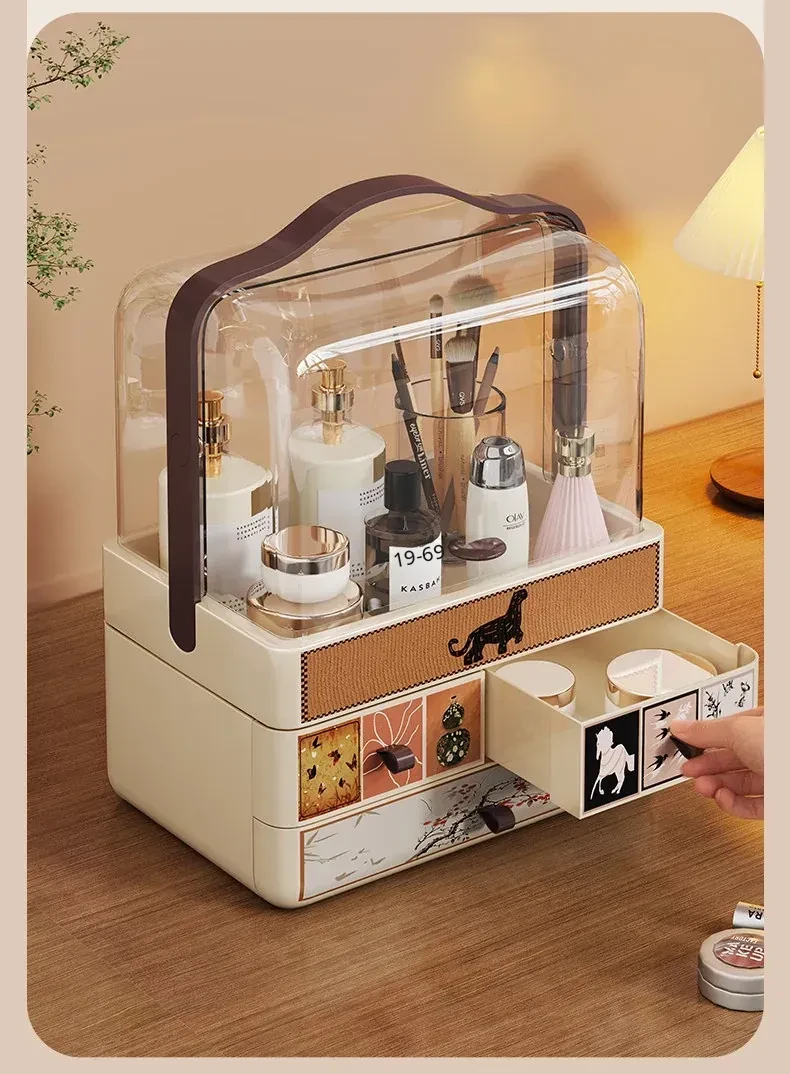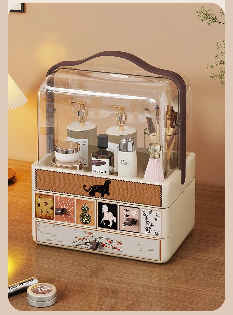 Large Capacity Makeup Organizer Box with Flip Lid for Vanity - Multi-functional Storage for Lipsticks, Perfumes, and Makeup Brushes - Perfect for a Tidy and Stylish Makeup Station