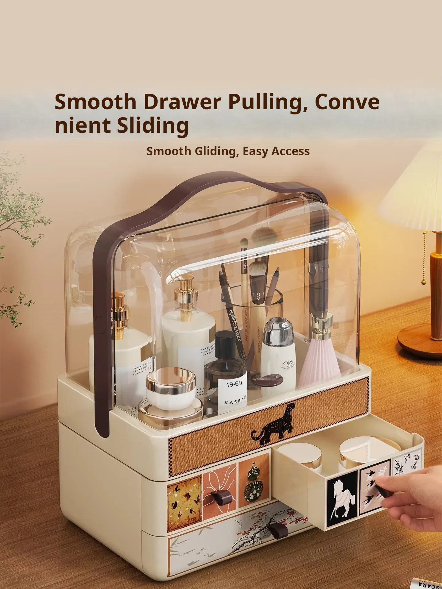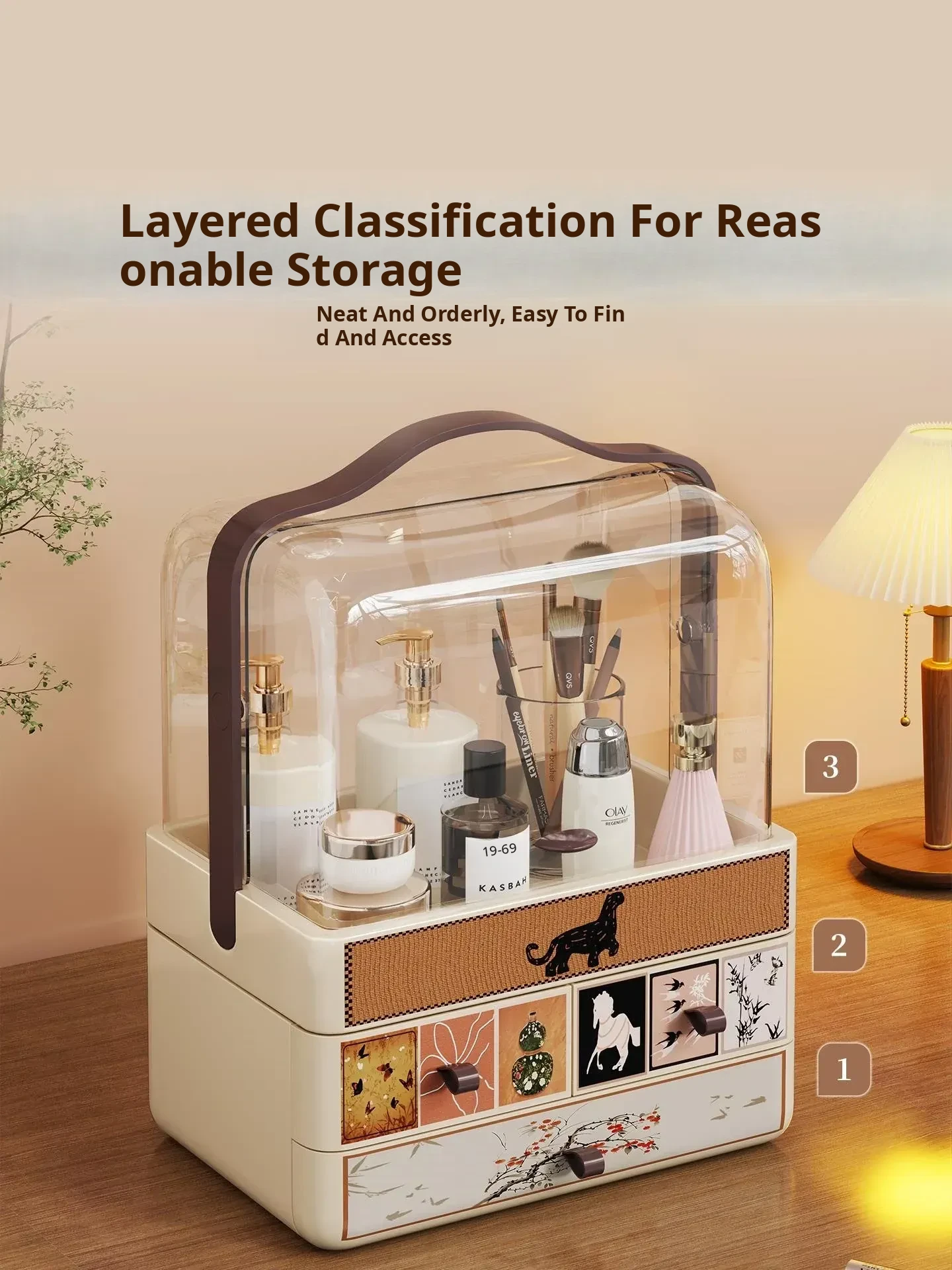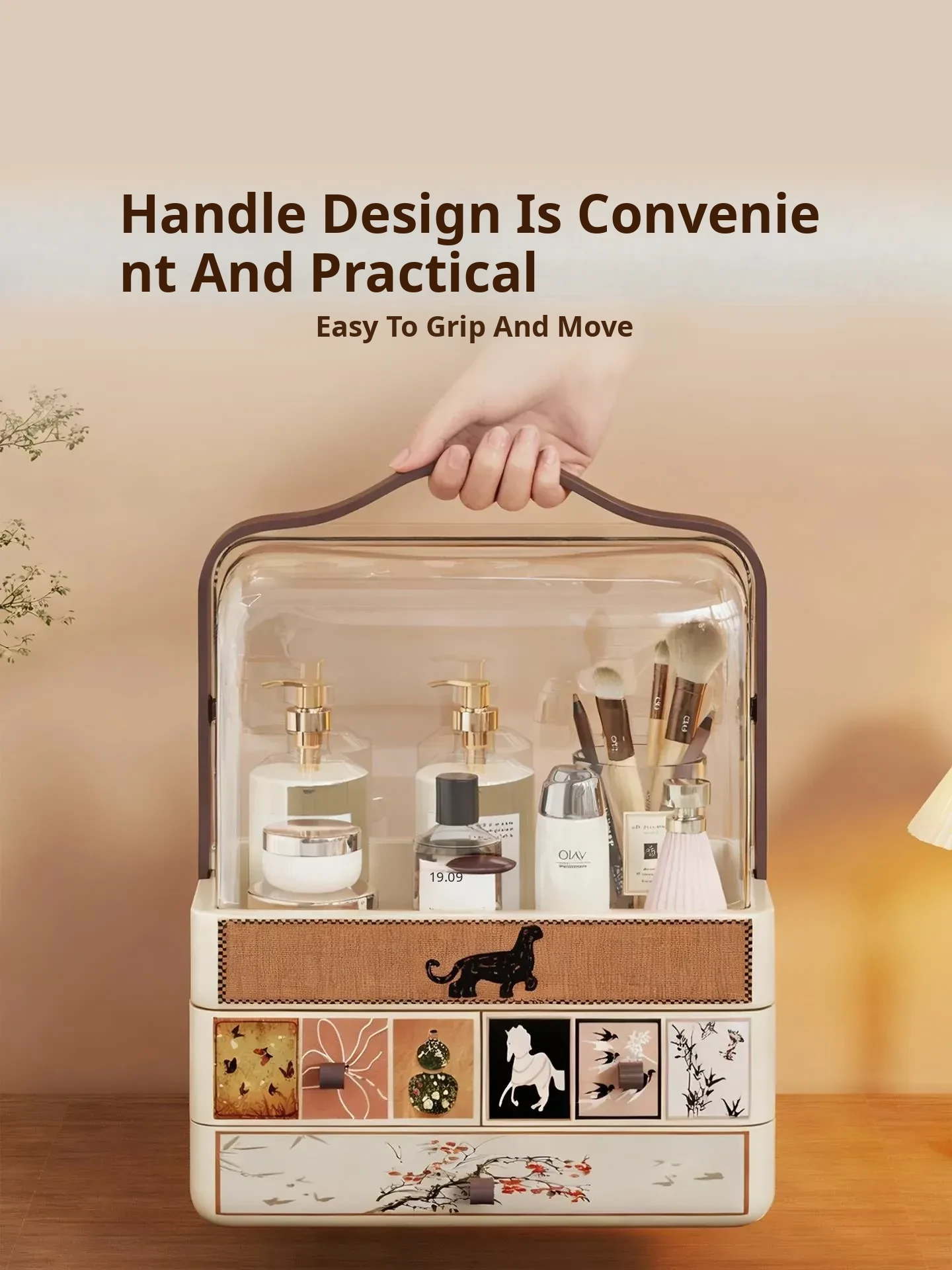 Large Capacity Makeup Organizer Box with Flip Lid for Vanity - Multi-functional Storage for Lipsticks, Perfumes, and Makeup Brushes - Perfect for a Tidy and Stylish Makeup Station