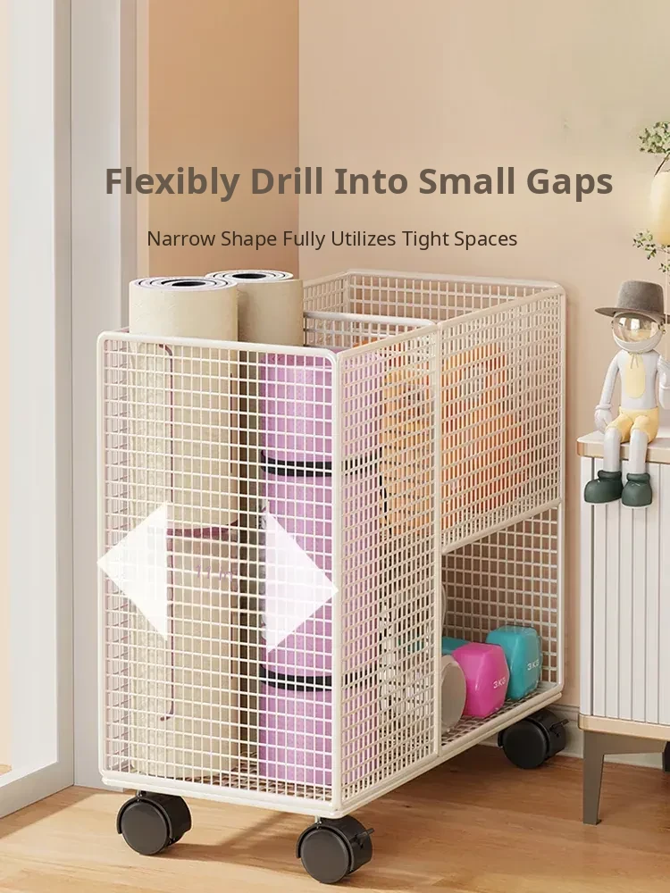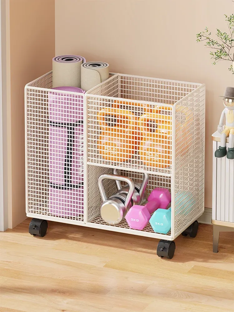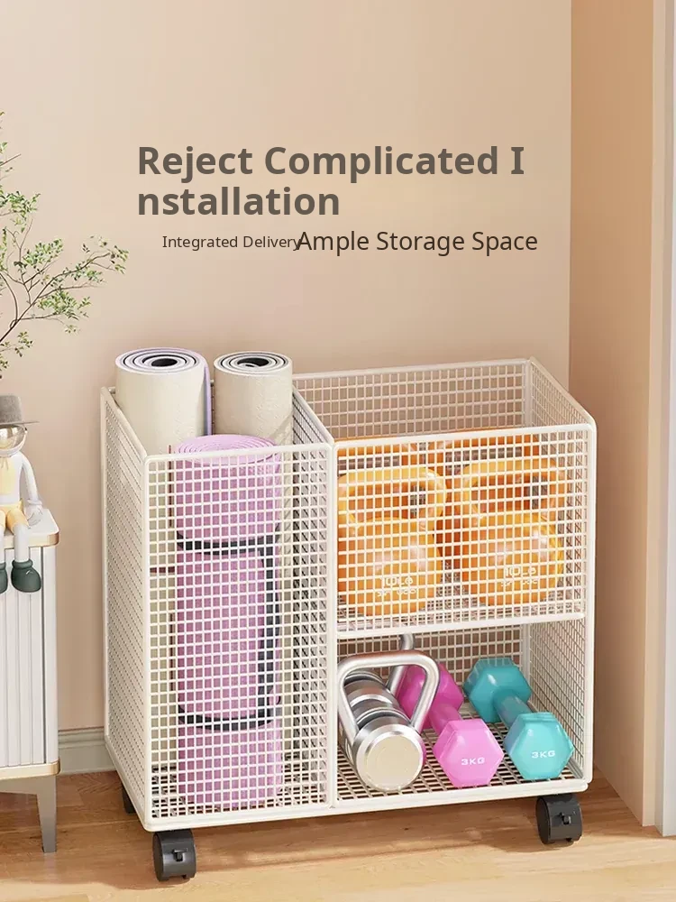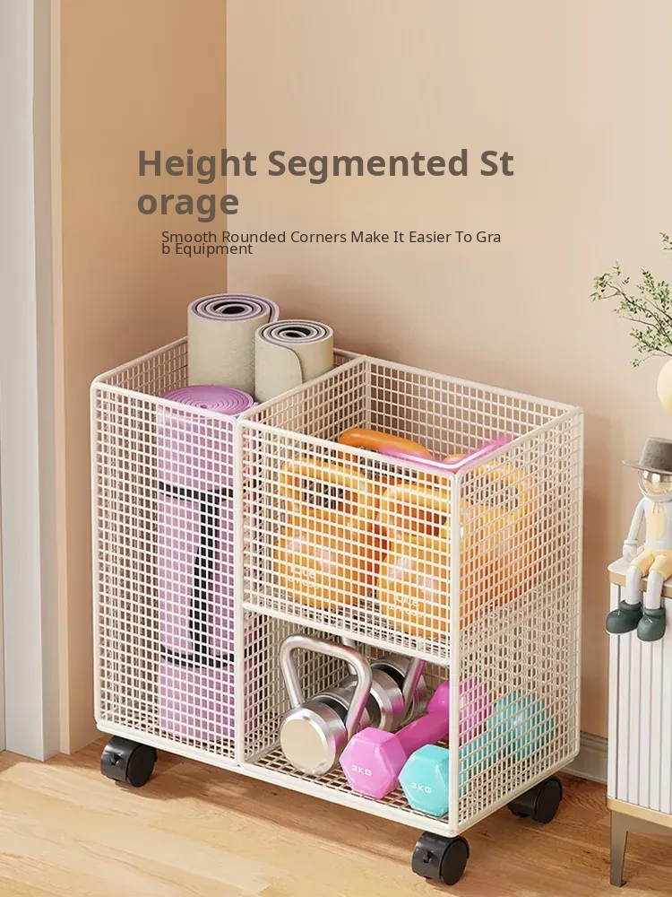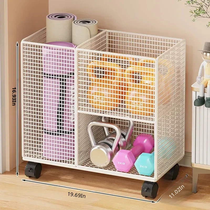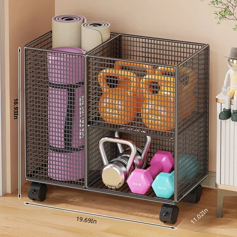Large Capacity Yoga Mat Storage Basket with Wheels - Home Dumbbell Organizer for Fitness Equipment and Accessories
