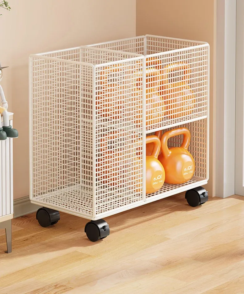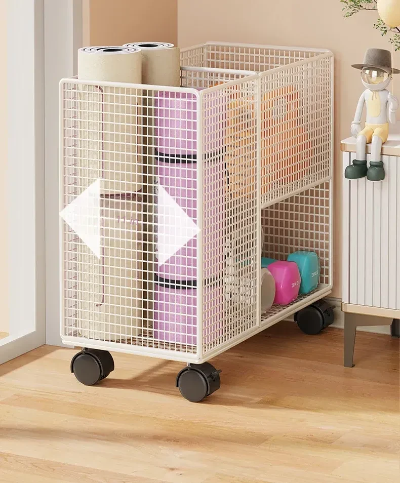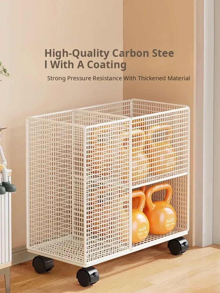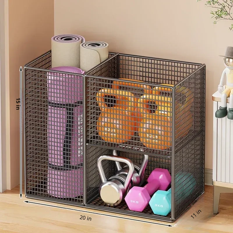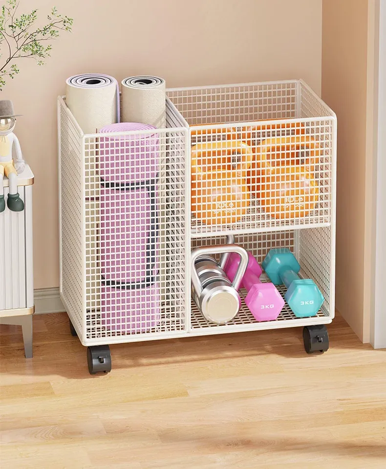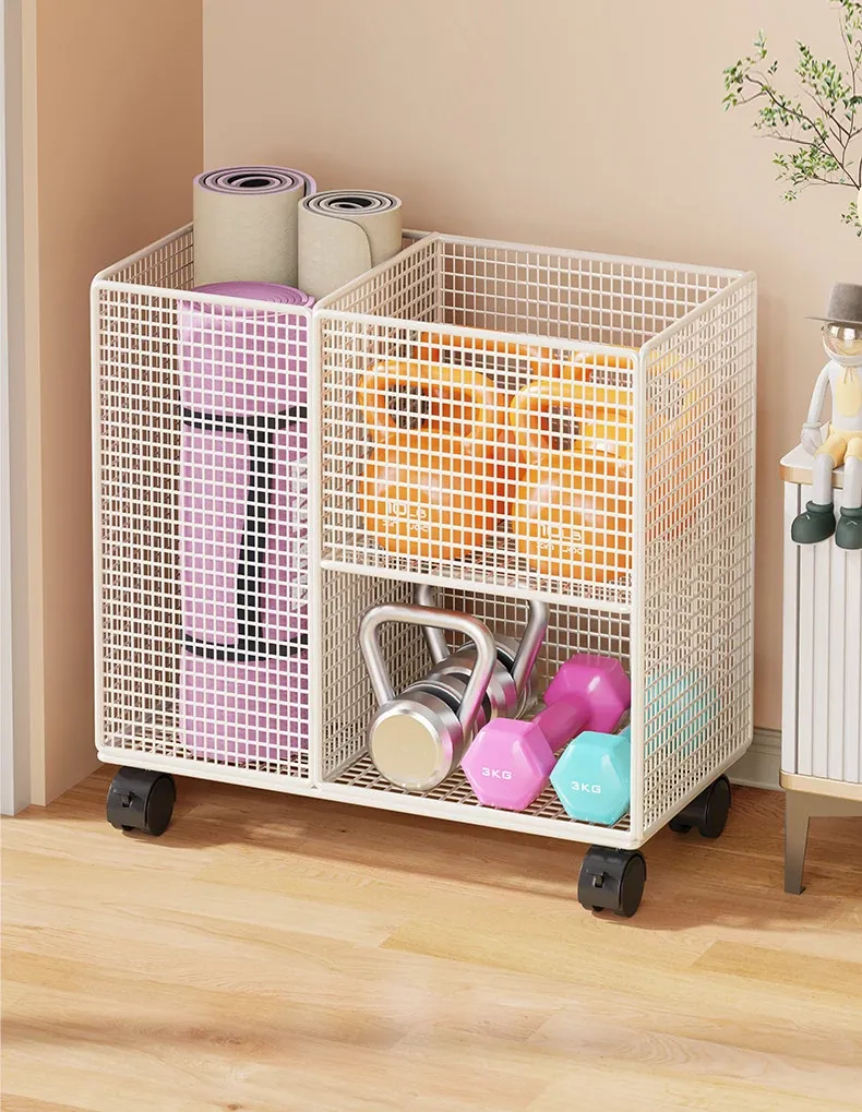 Large Capacity Yoga Mat Storage Basket with Wheels - Home Dumbbell Organizer for Fitness Equipment and Accessories
