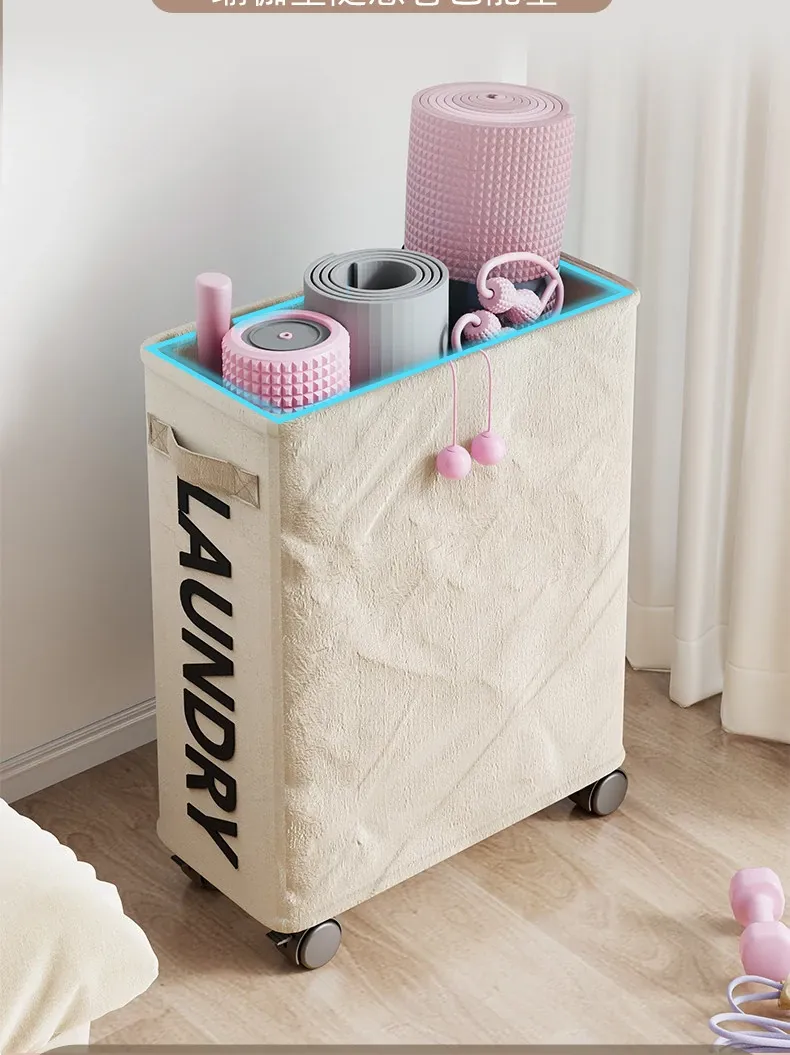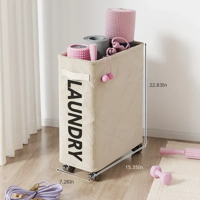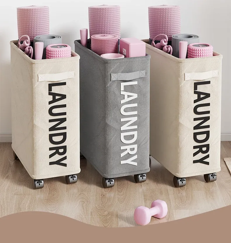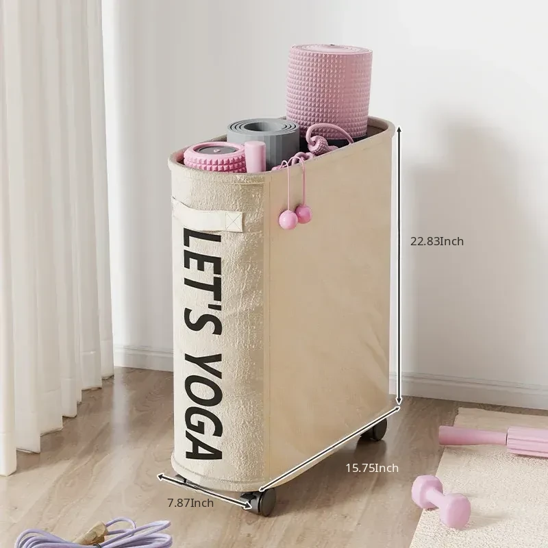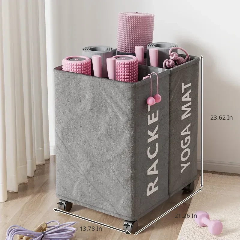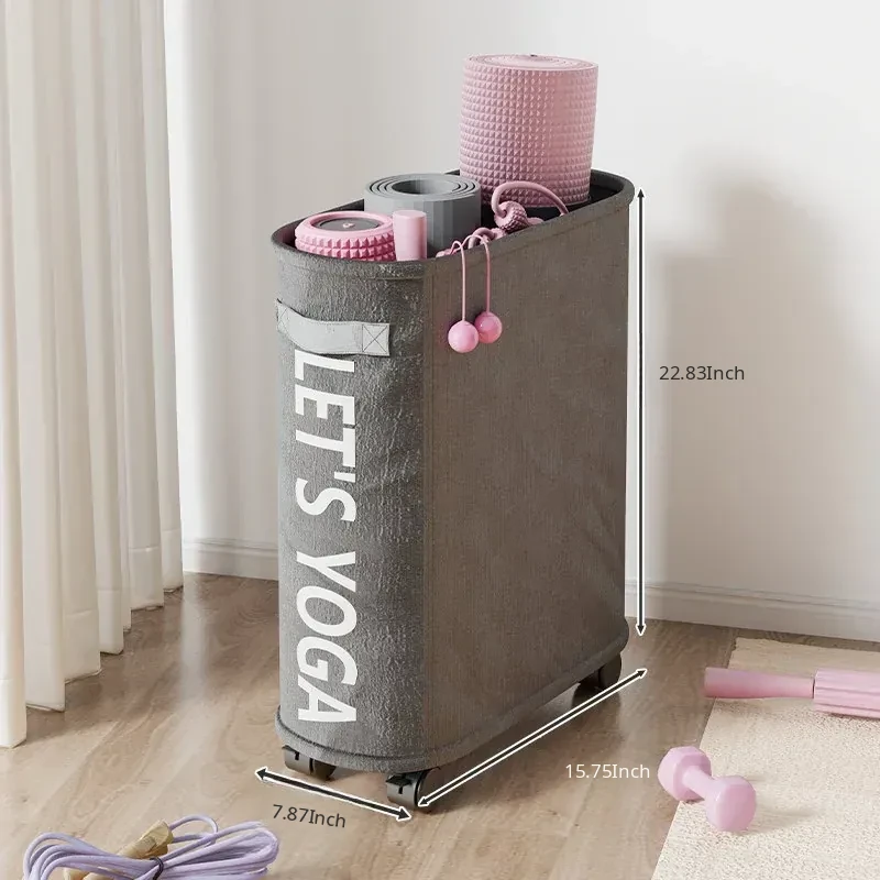 Large Capacity Yoga Mat Storage Basket with Wheels - Portable Home Fitness Equipment Organizer for Foam Rollers and Exercise Tools