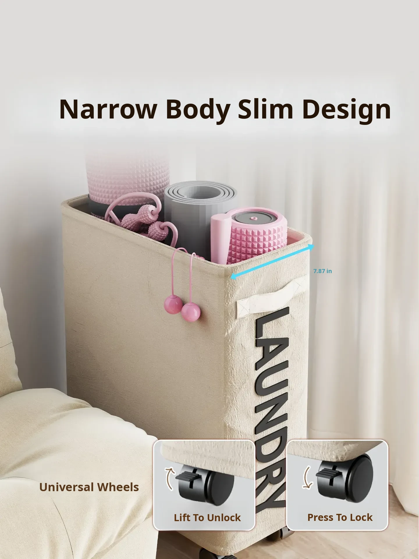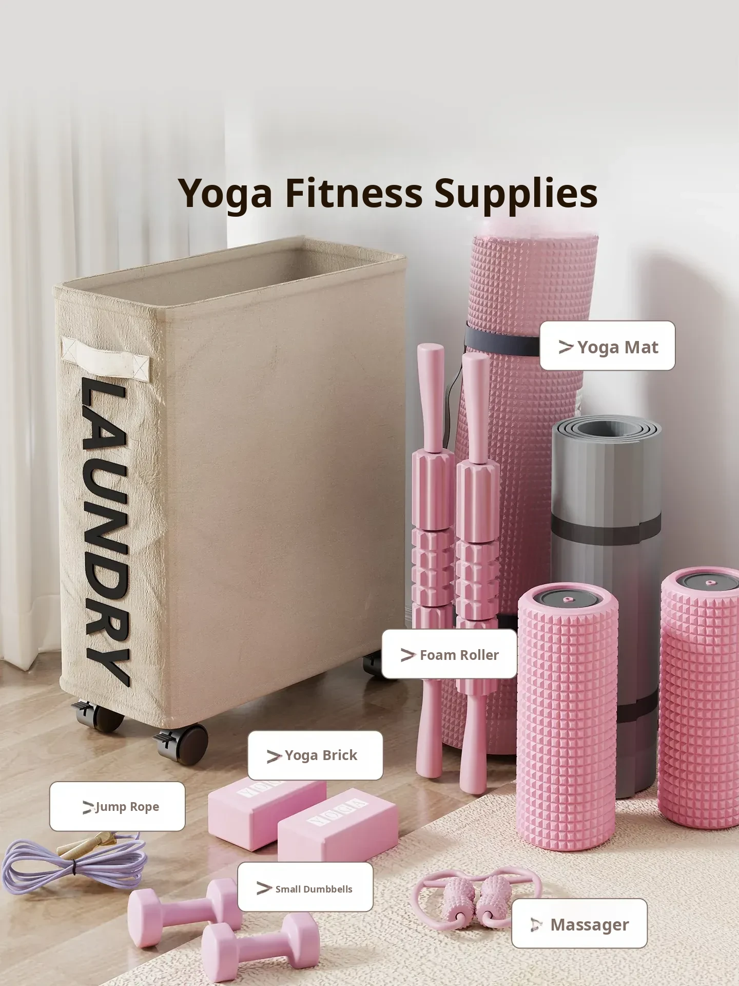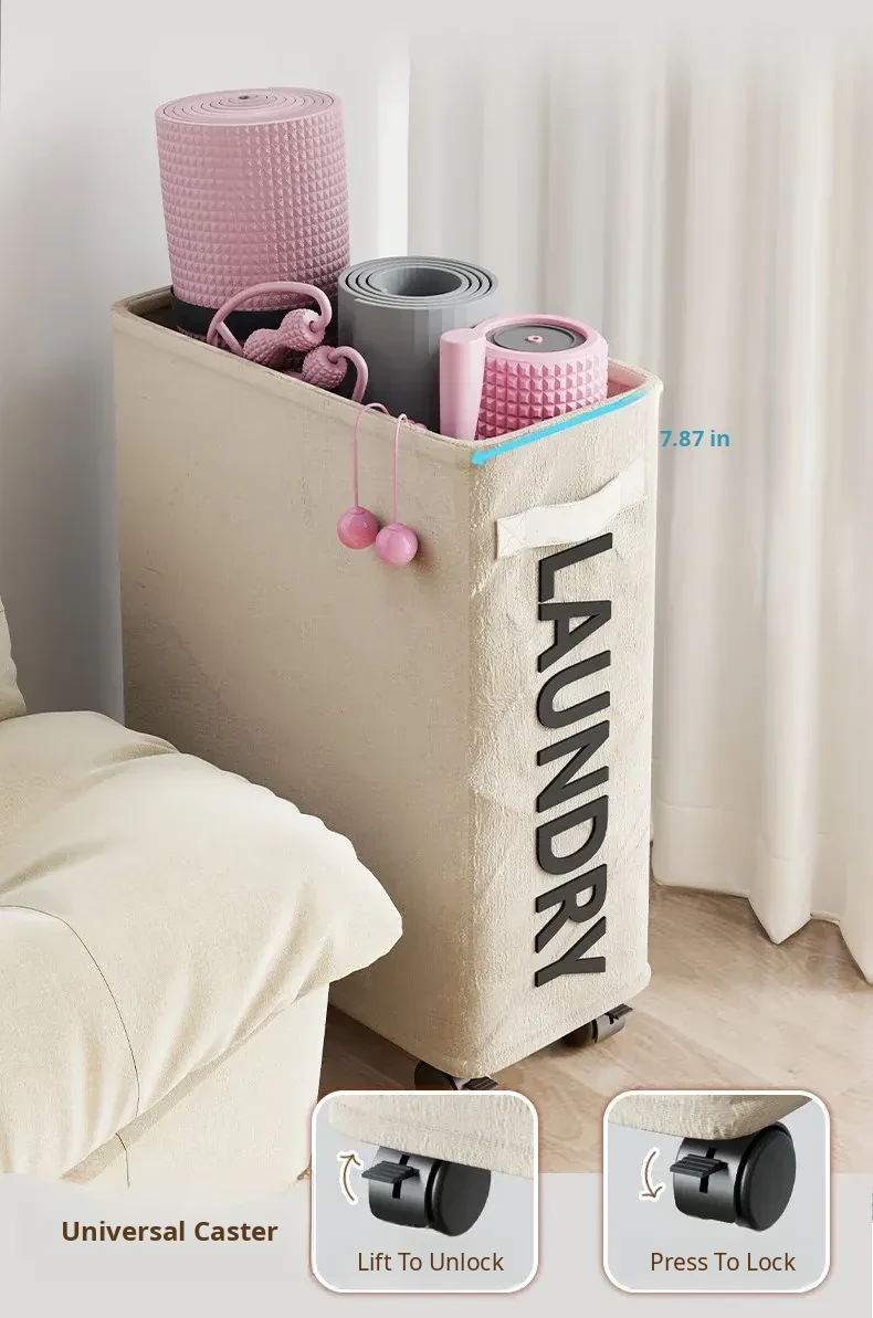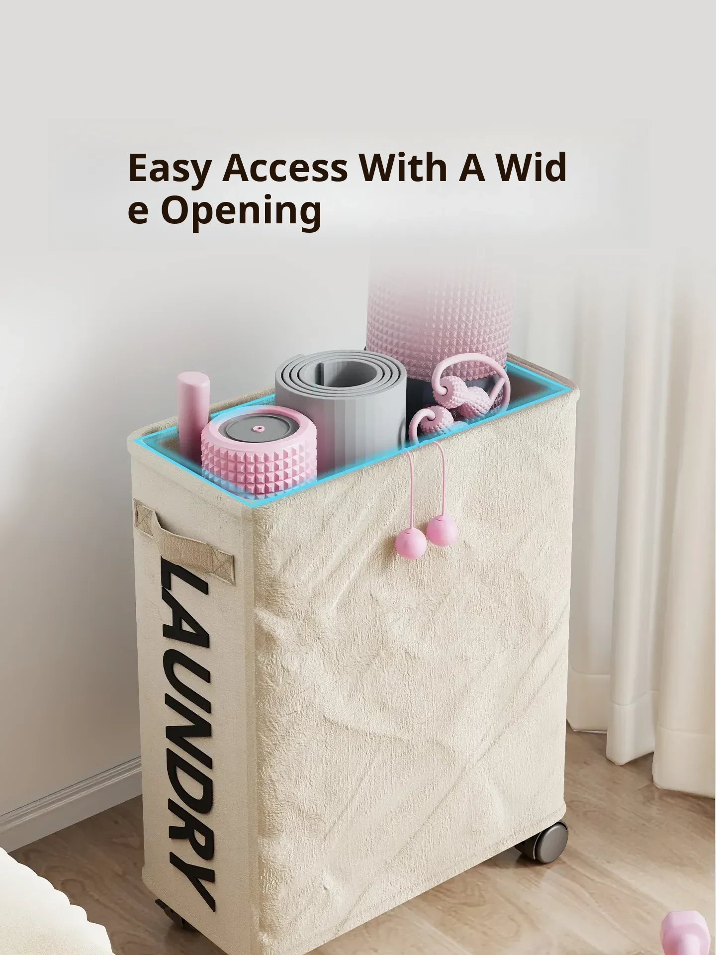 Large Capacity Yoga Mat Storage Basket with Wheels - Portable Home Fitness Equipment Organizer for Foam Rollers and Exercise Tools