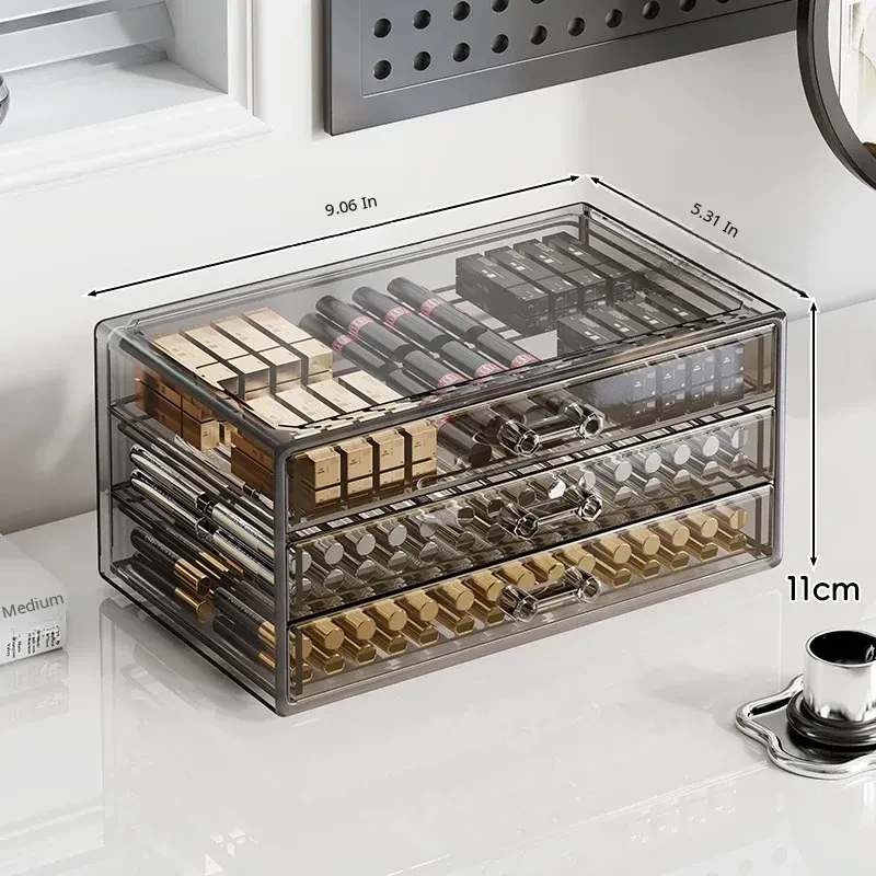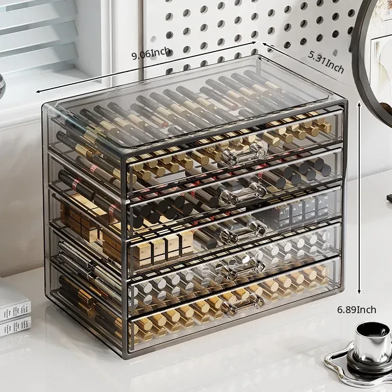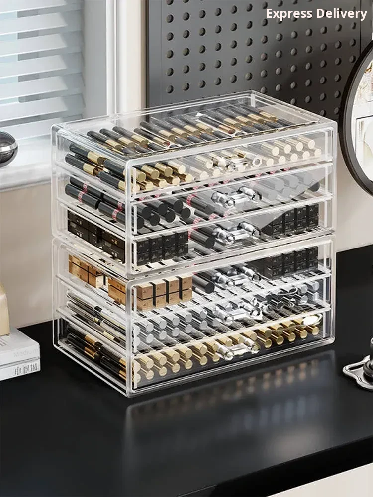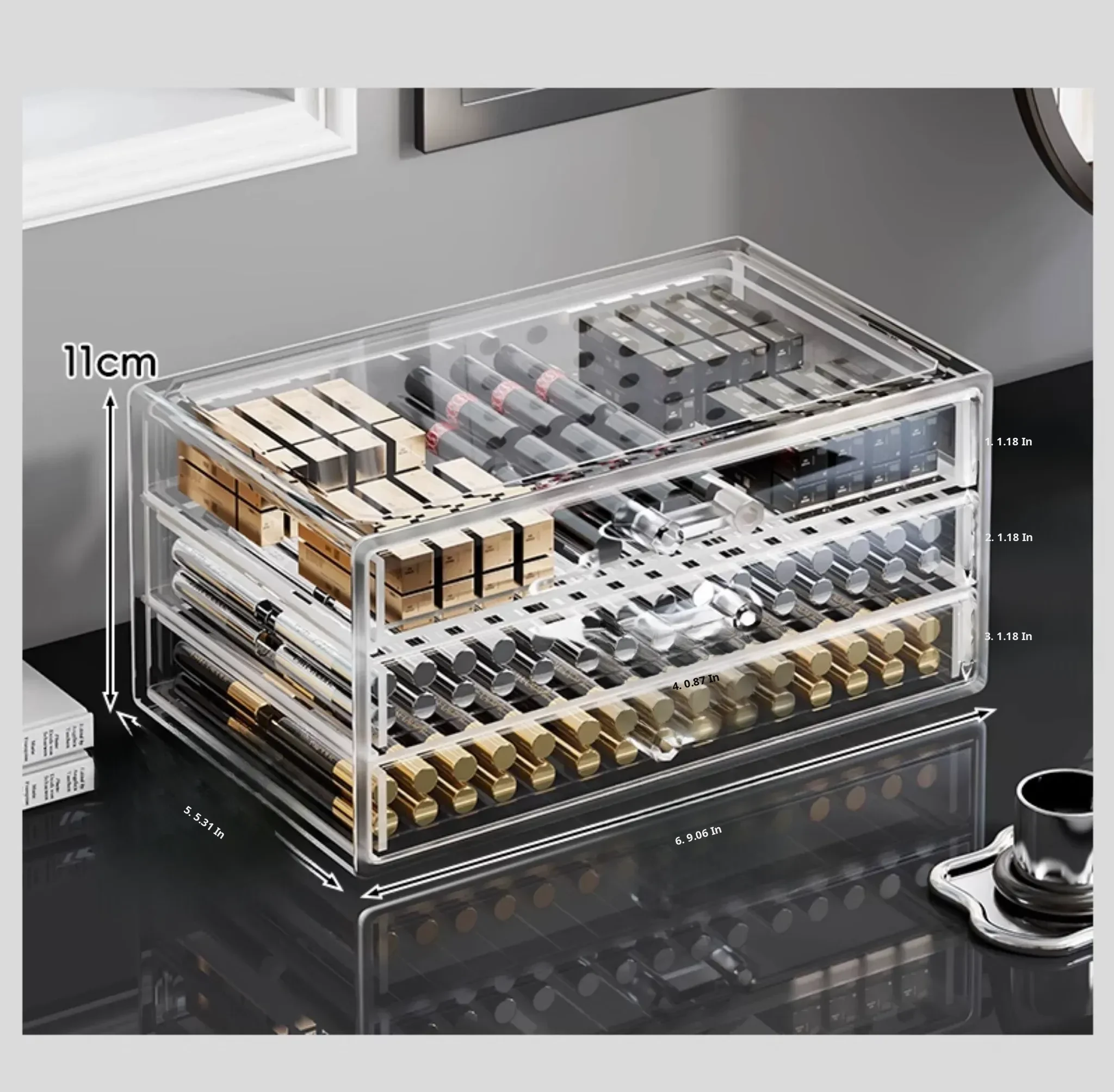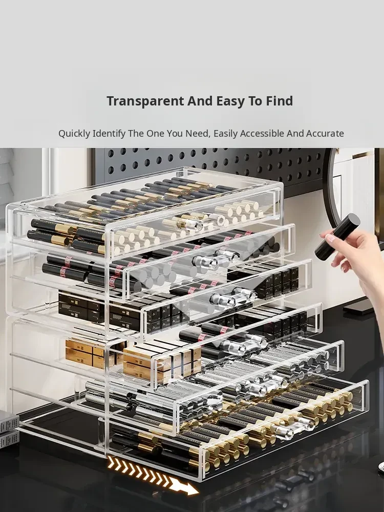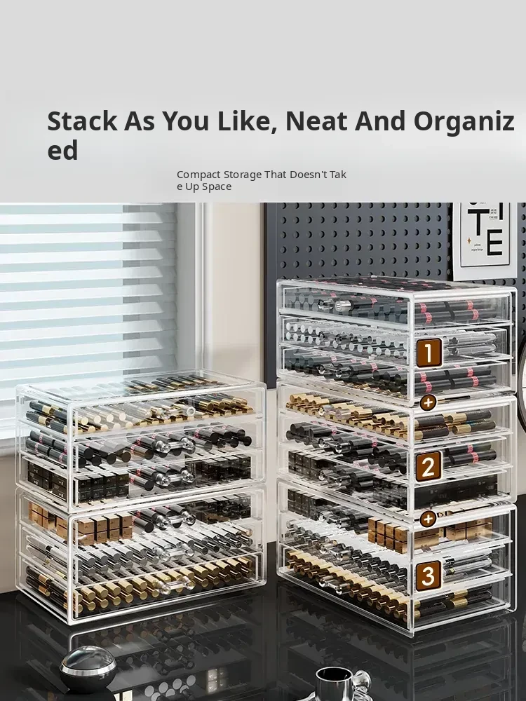Lipstick Organizer Box - Stylish Desktop Makeup Drawer for Lip Gloss, Eyeshadow, and Cosmetics. Clear Dustproof Storage Rack for a Neat and Elegant Vanity. Perfect for Beauty Enthusiasts!