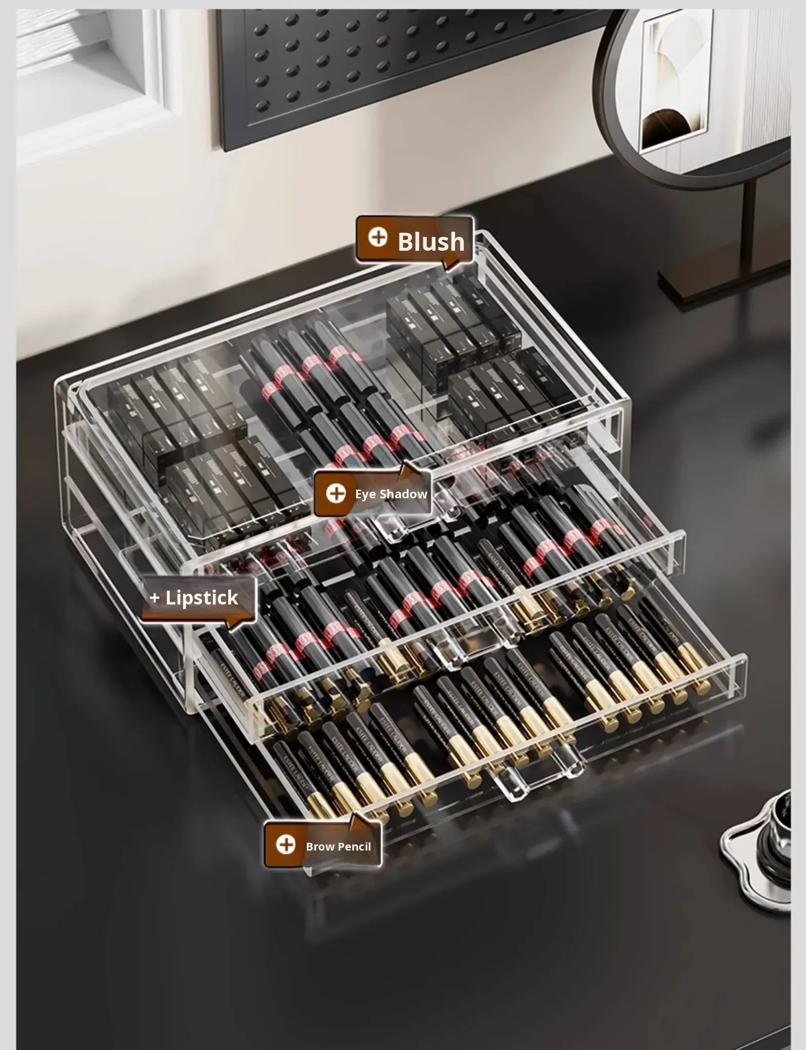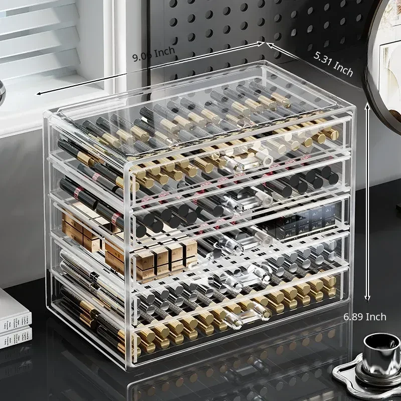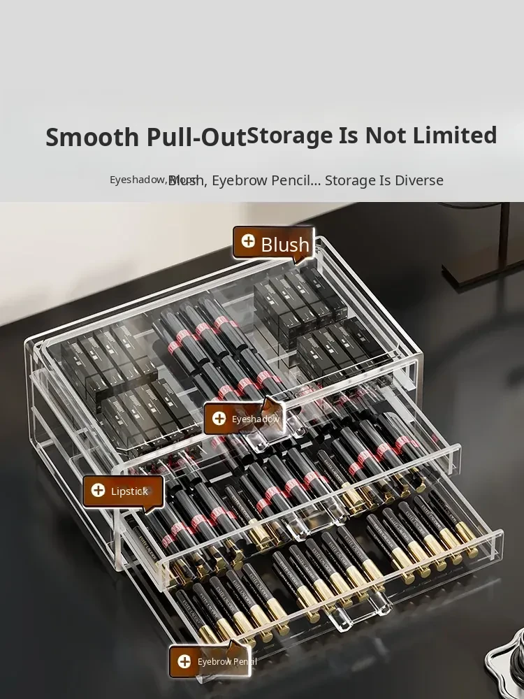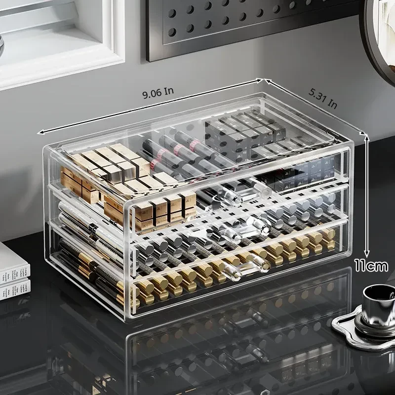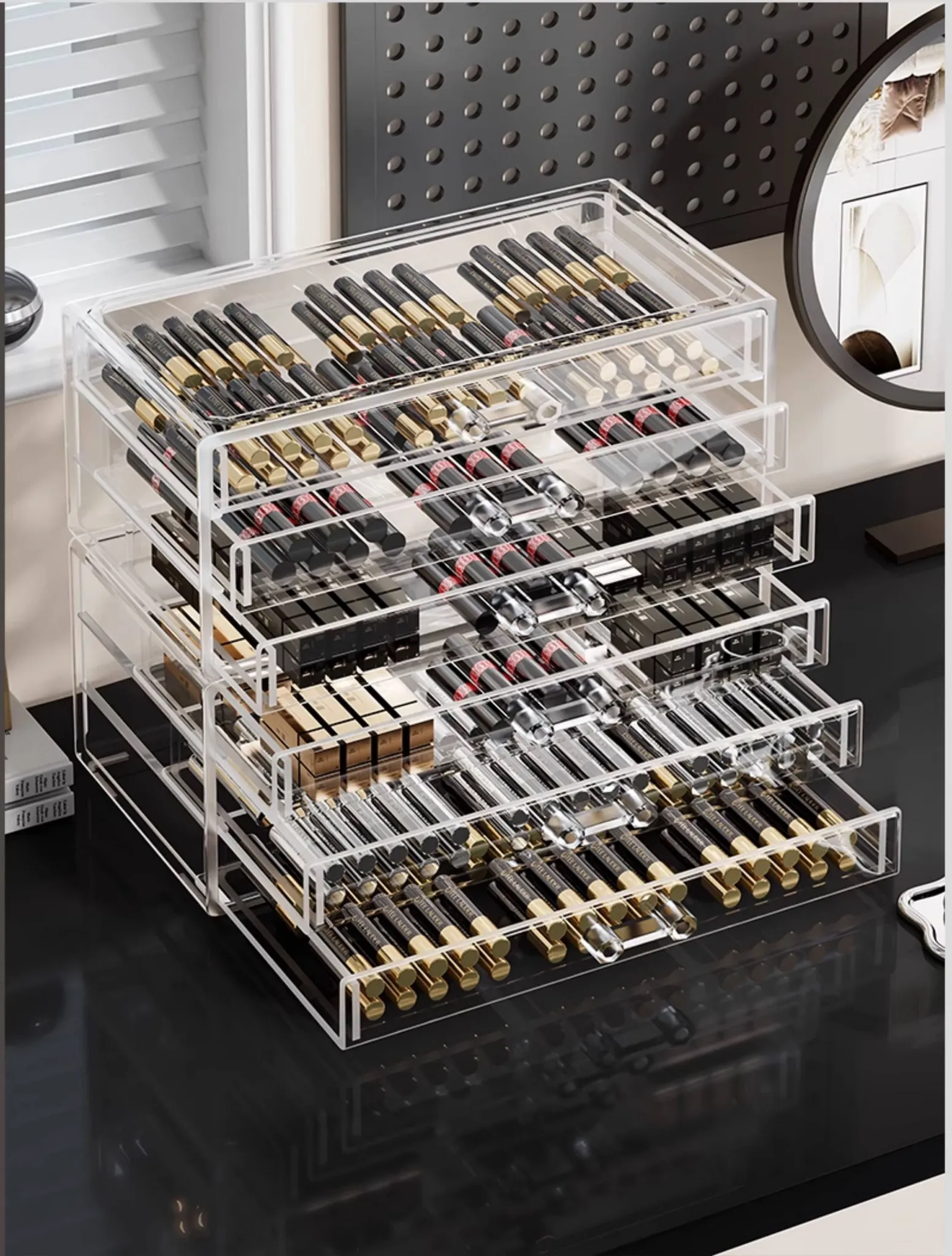 Lipstick Organizer Box - Stylish Desktop Makeup Drawer for Lip Gloss, Eyeshadow, and Cosmetics. Clear Dustproof Storage Rack for a Neat and Elegant Vanity. Perfect for Beauty Enthusiasts!