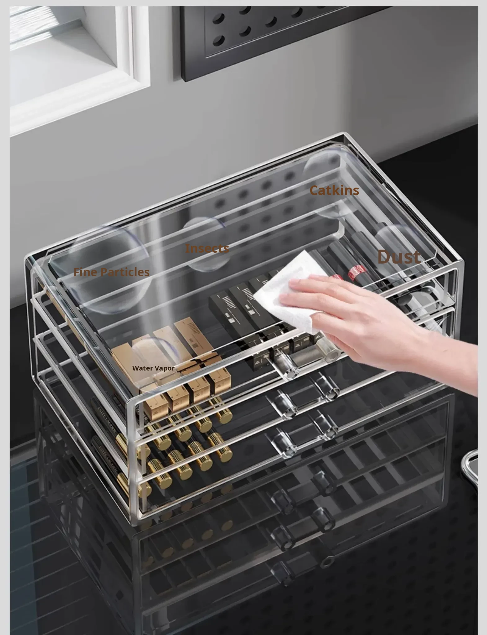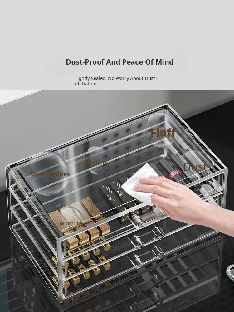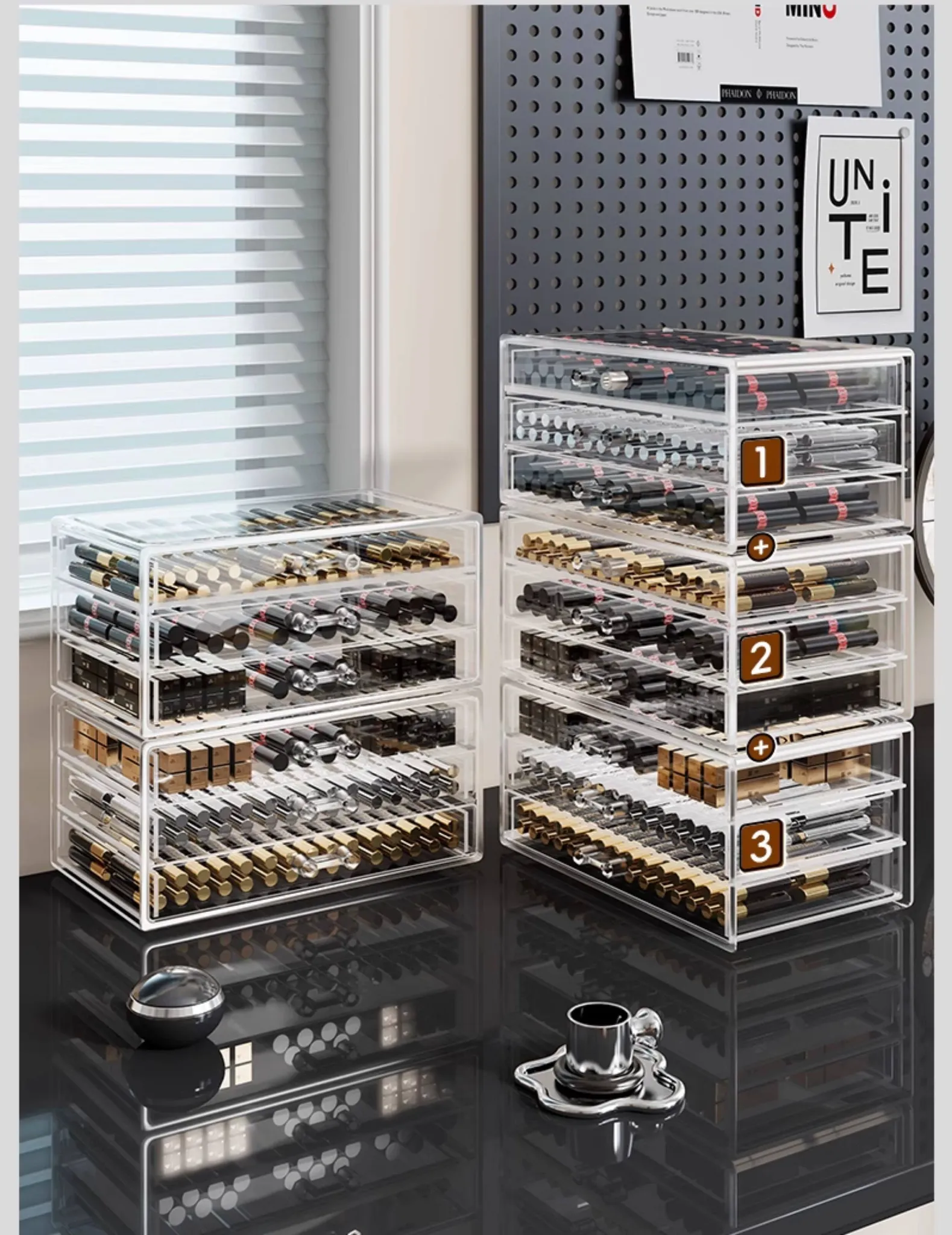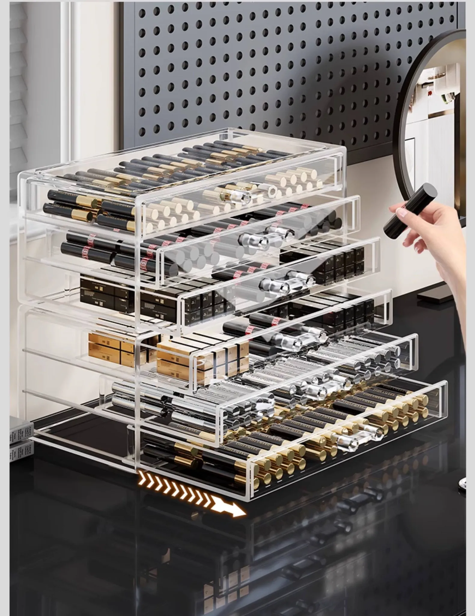 Lipstick Organizer Box - Stylish Desktop Makeup Drawer for Lip Gloss, Eyeshadow, and Cosmetics. Clear Dustproof Storage Rack for a Neat and Elegant Vanity. Perfect for Beauty Enthusiasts!