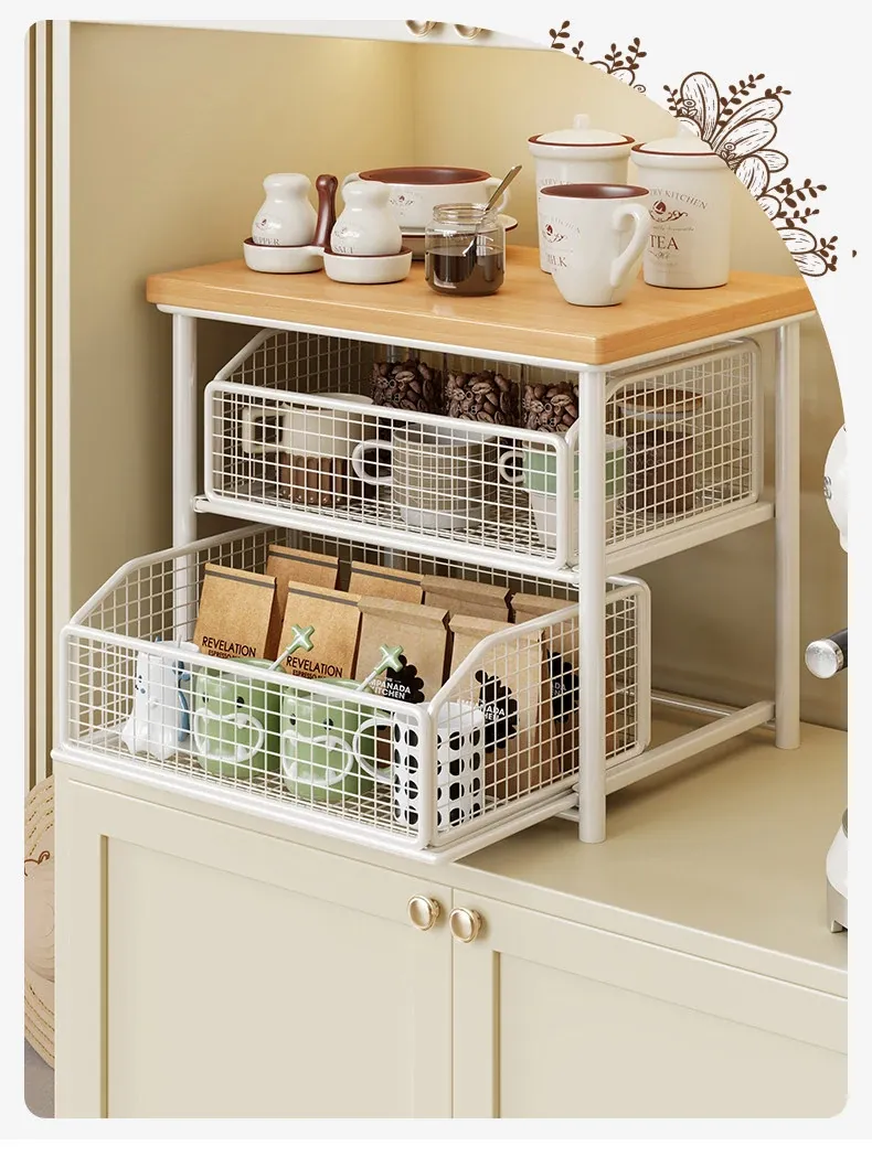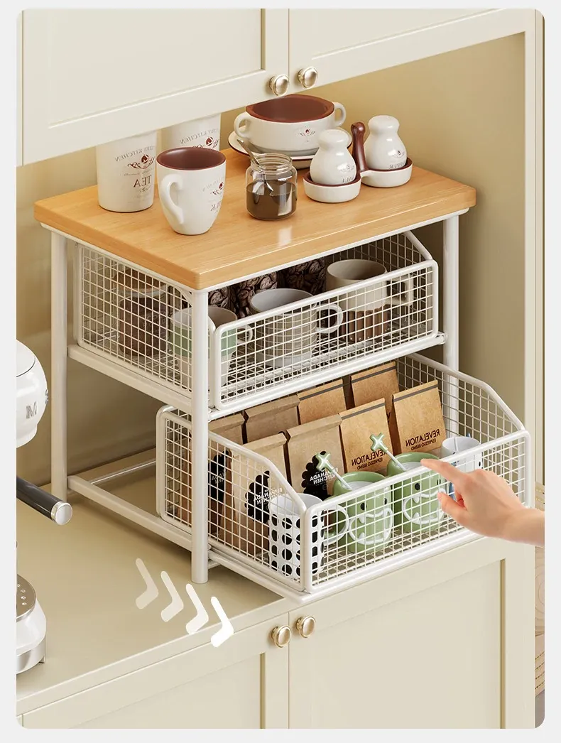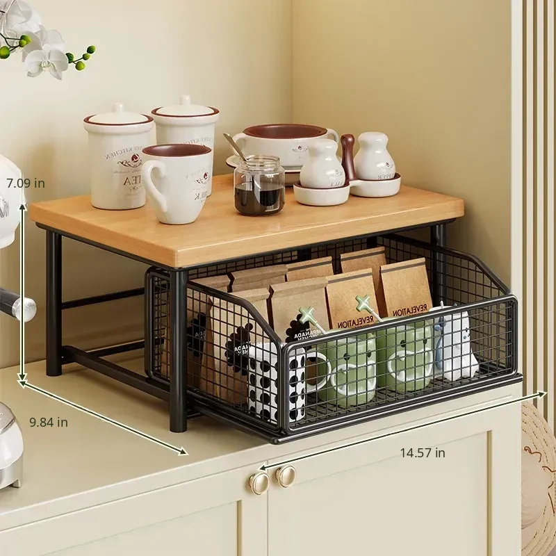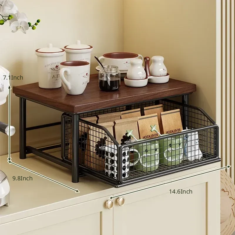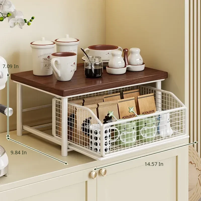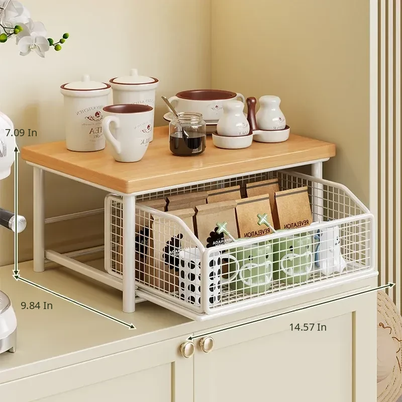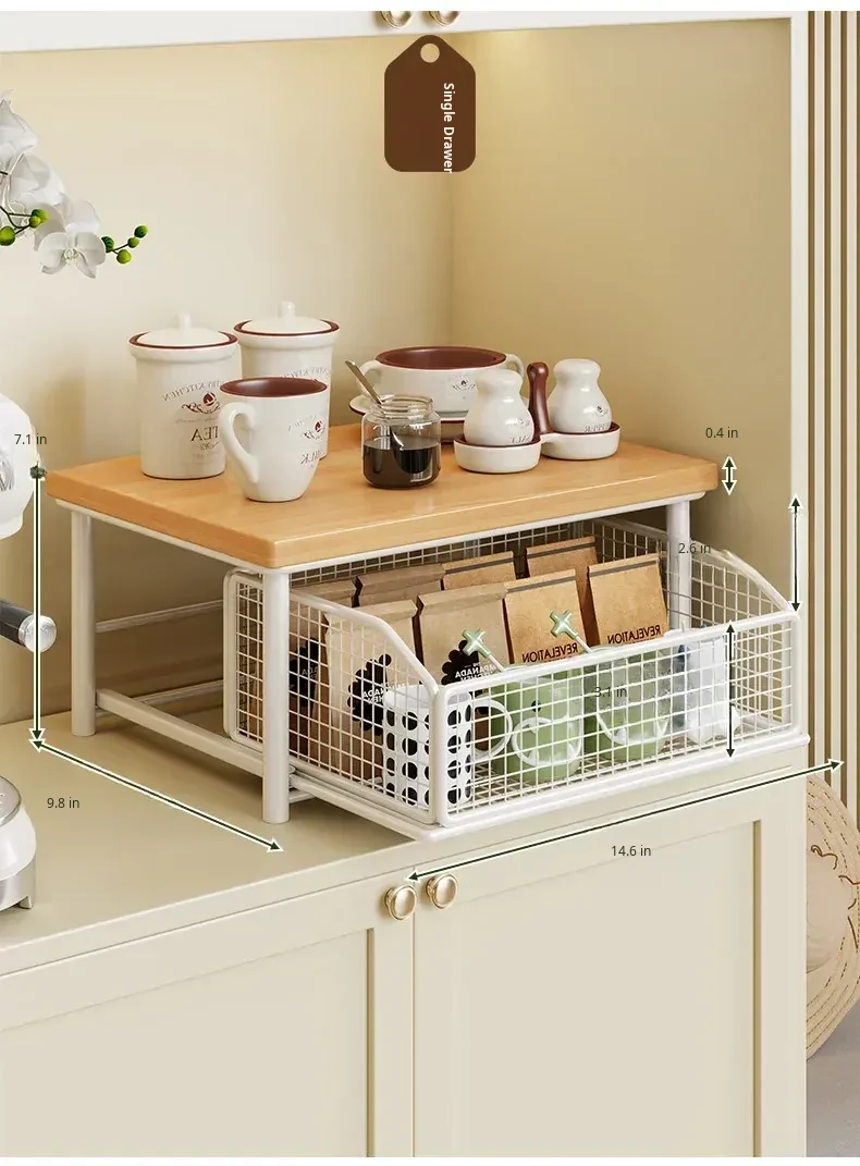 Multi-functional Desktop Organizer: Pull-Out Rack for Tea Cups, Tea Bags, Coffee Machines, and Microwaves – Perfect for Snacks and Tabletop Storage Solutions! Keep Your Space Tidy and Stylish!