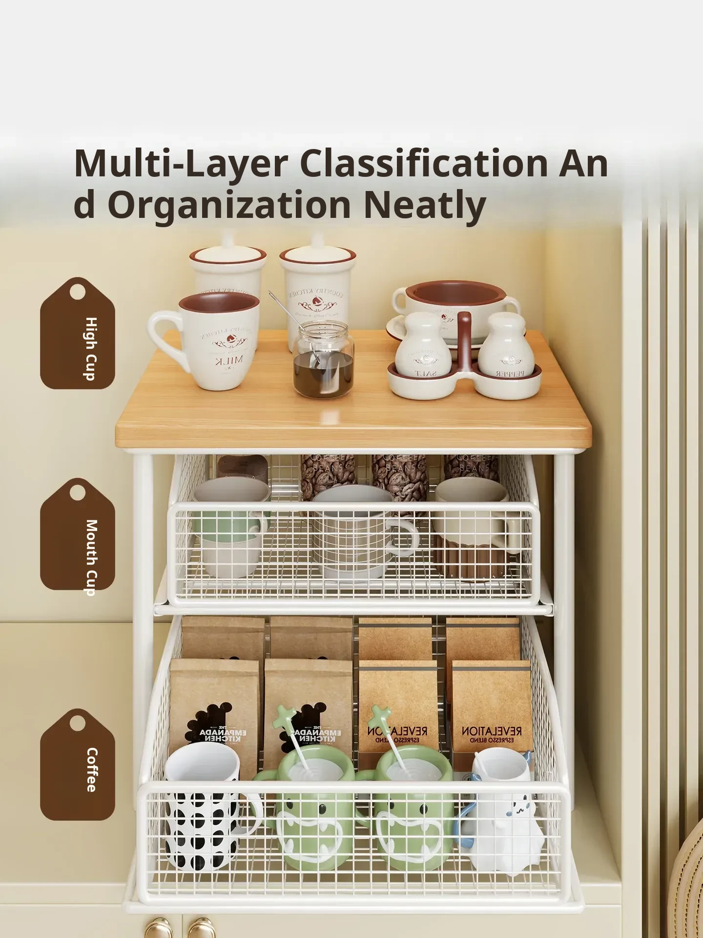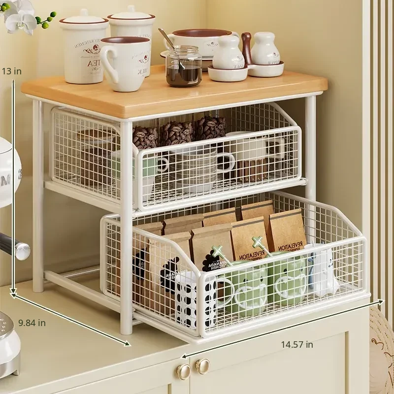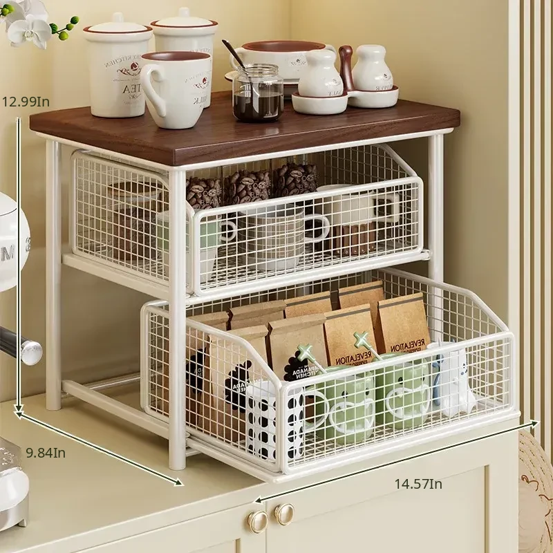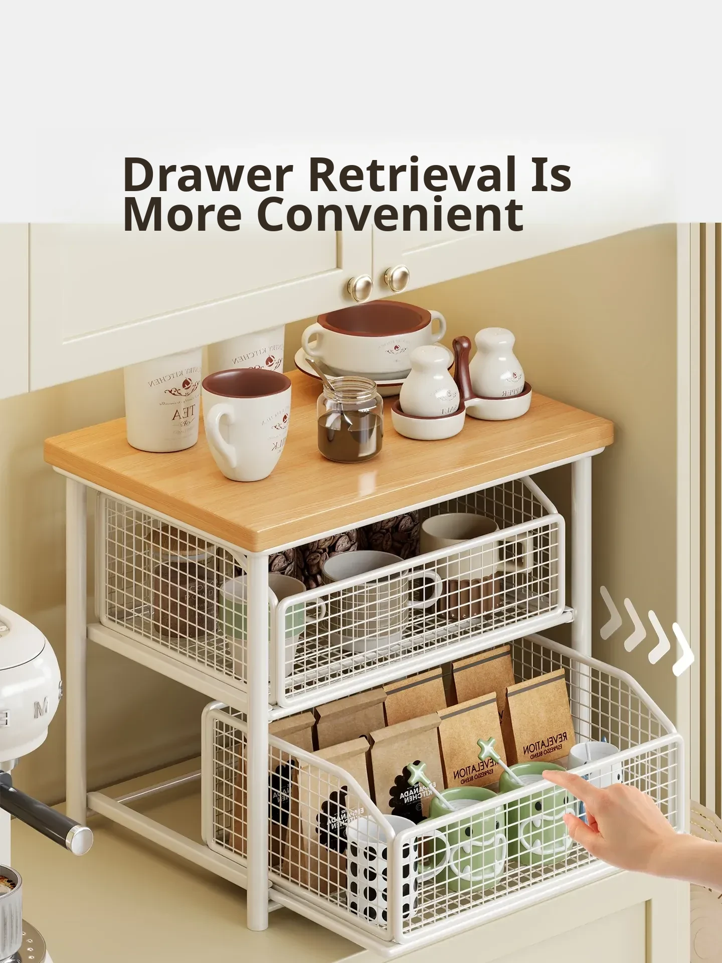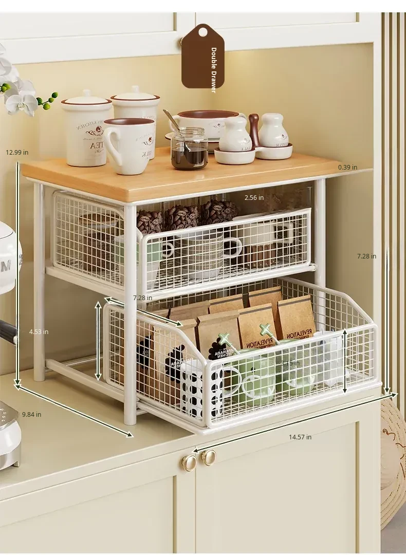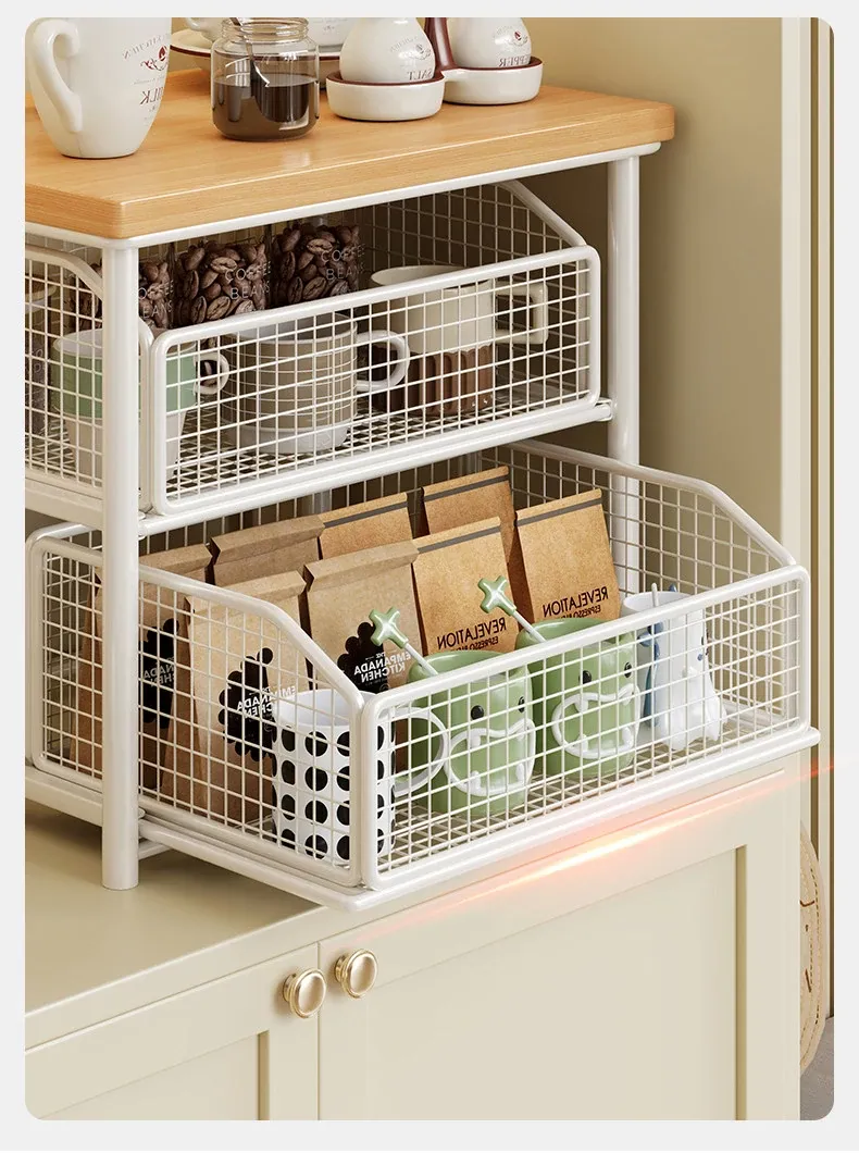Multi-functional Desktop Organizer: Pull-Out Rack for Tea Cups, Tea Bags, Coffee Machines, and Microwaves – Perfect for Snacks and Tabletop Storage Solutions! Keep Your Space Tidy and Stylish!