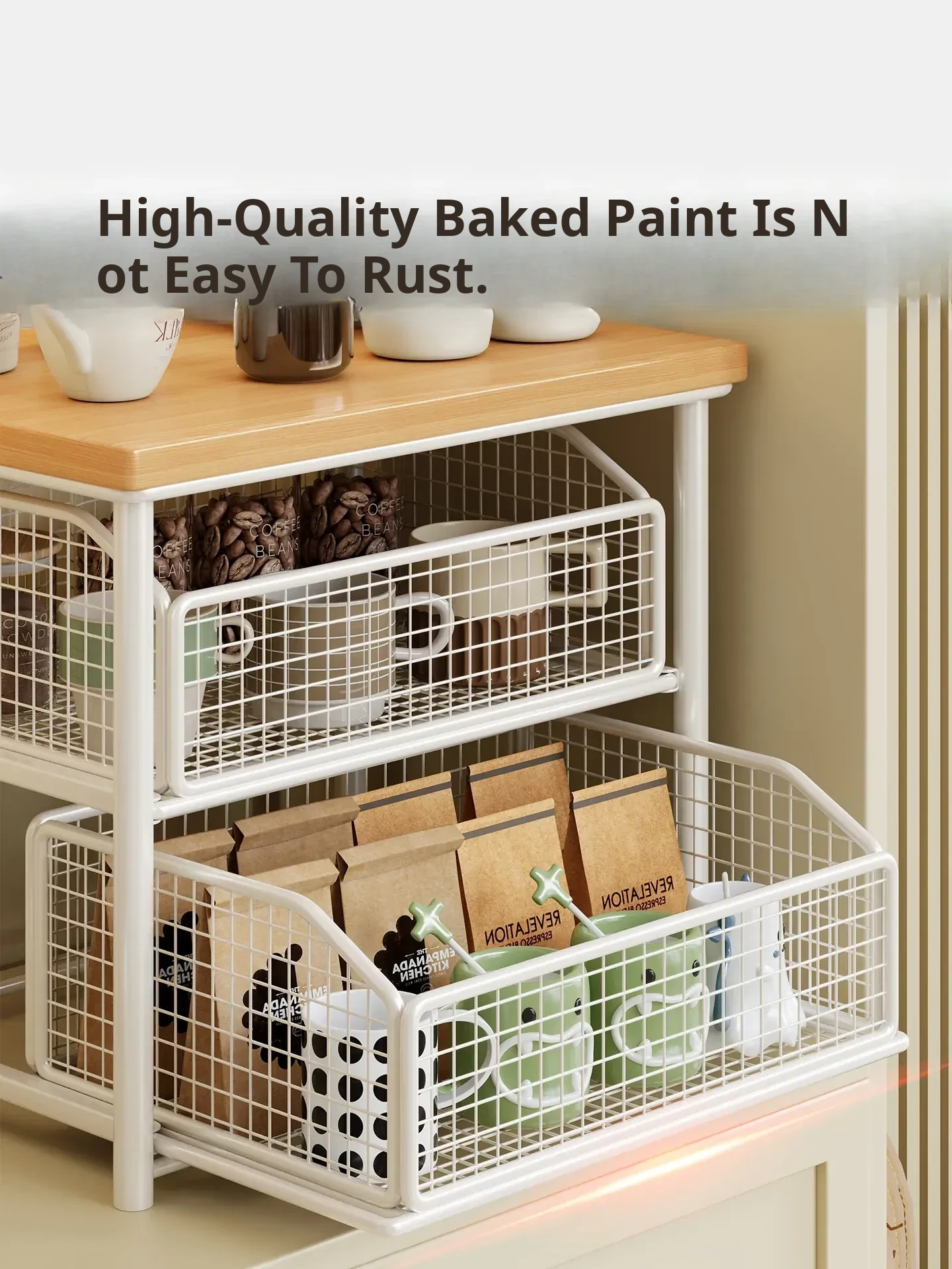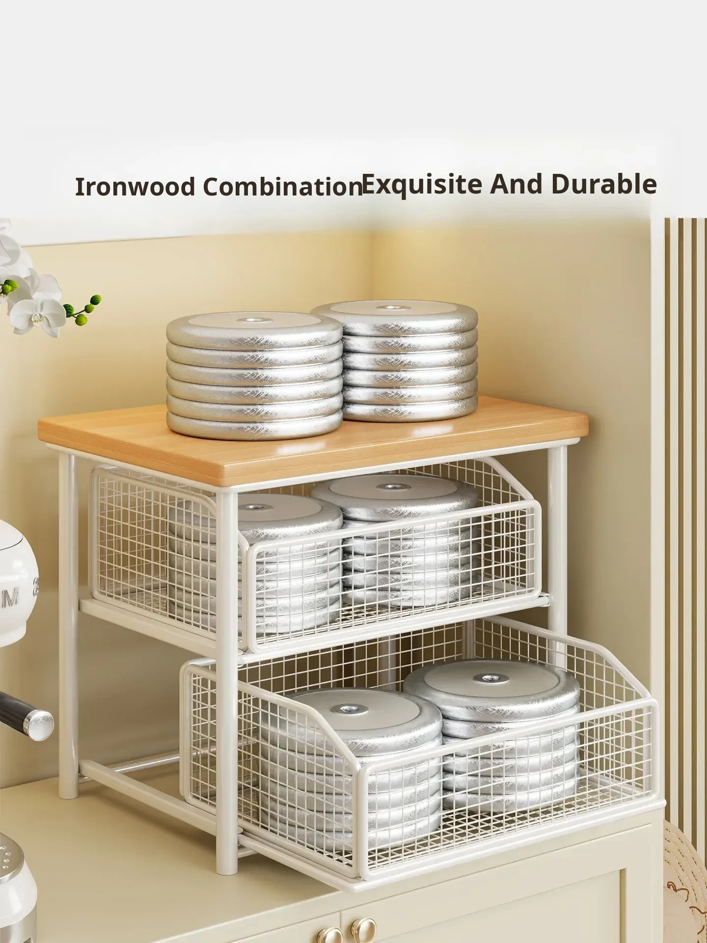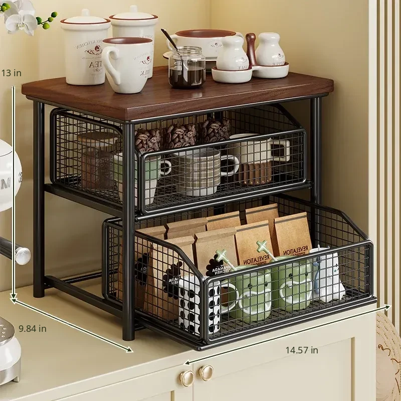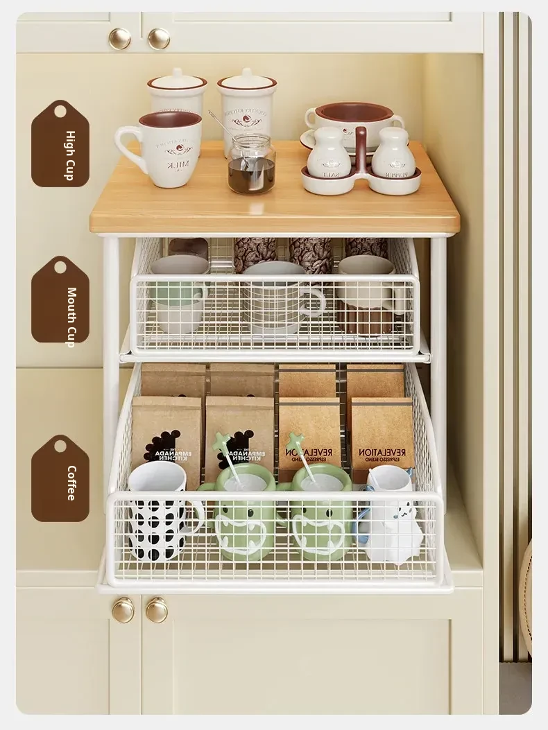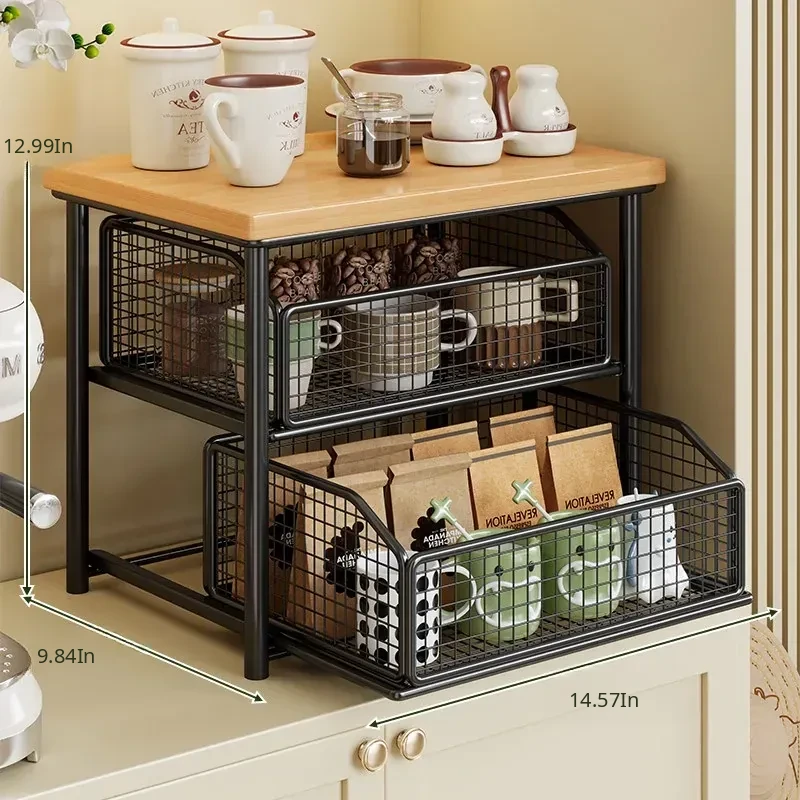 Multi-functional Desktop Organizer: Pull-Out Rack for Tea Cups, Tea Bags, Coffee Machines, and Microwaves – Perfect for Snacks and Tabletop Storage Solutions! Keep Your Space Tidy and Stylish!