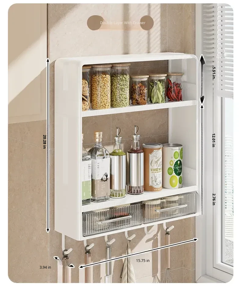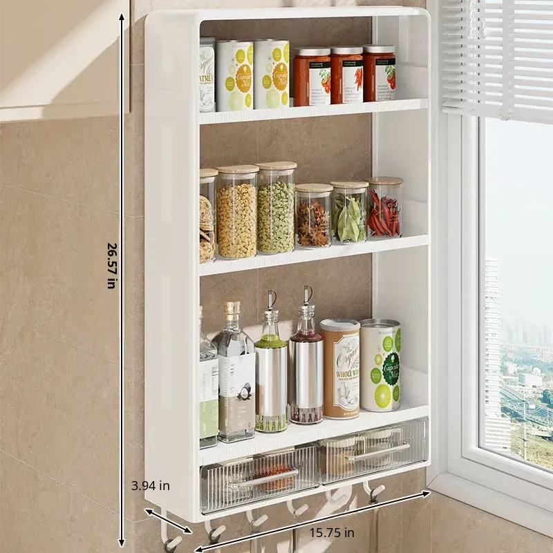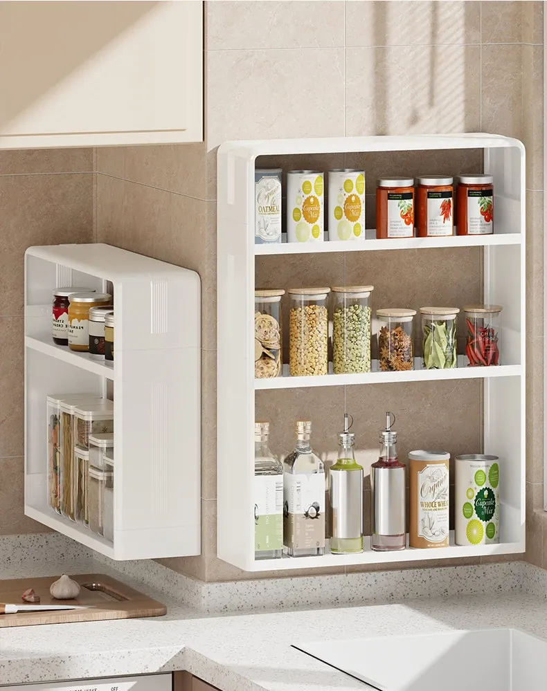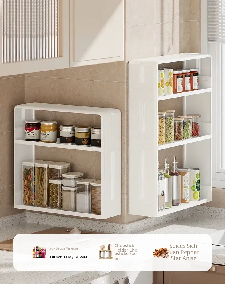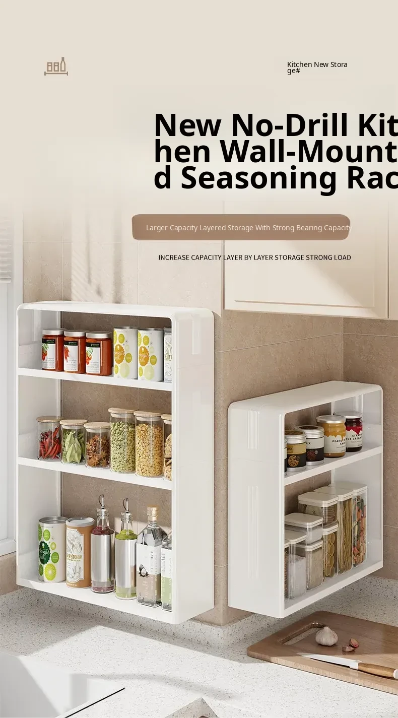 Multi-Functional Kitchen Storage Rack - Wall-Mounted Spice Organizer with Large Capacity for Salt and Condiments - Perfect for Maximizing Space in Your Kitchen!