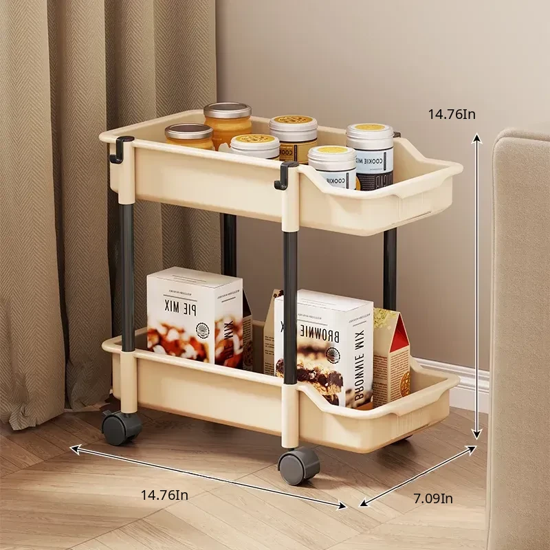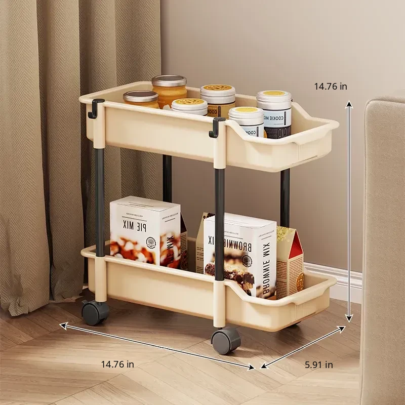 Cream 2-Layer Trolley Storage Rack [Narrow 7.09in] with Universal Wheels
