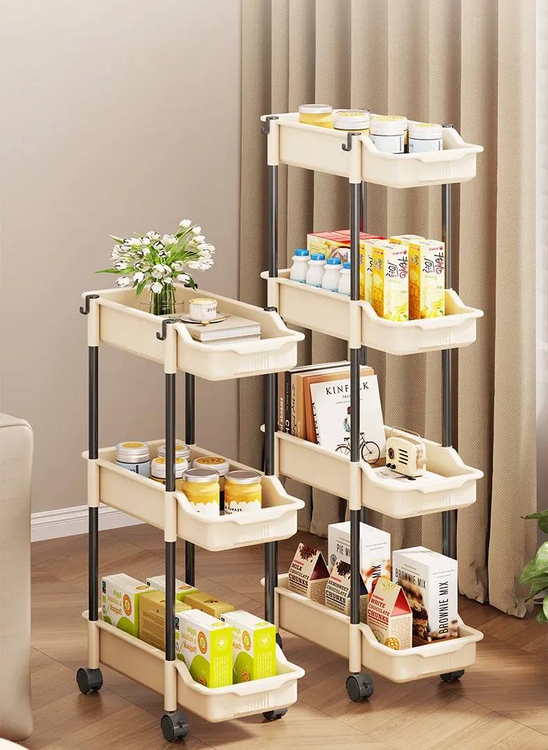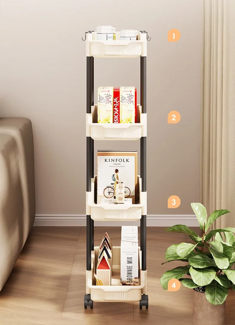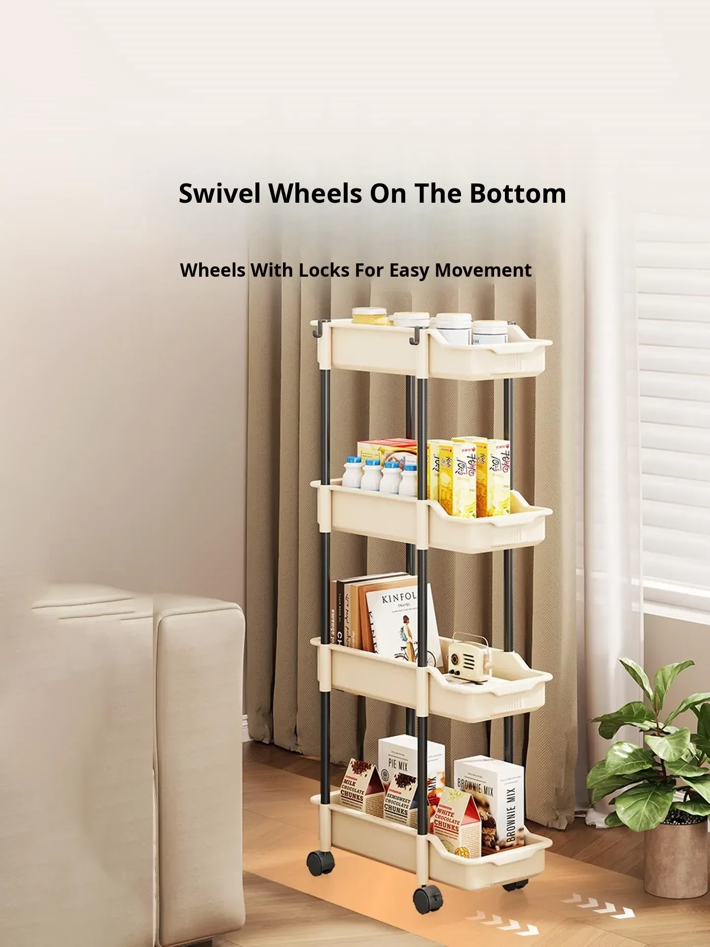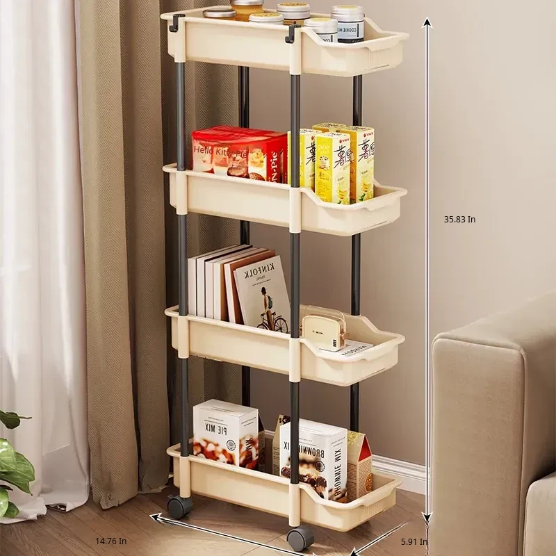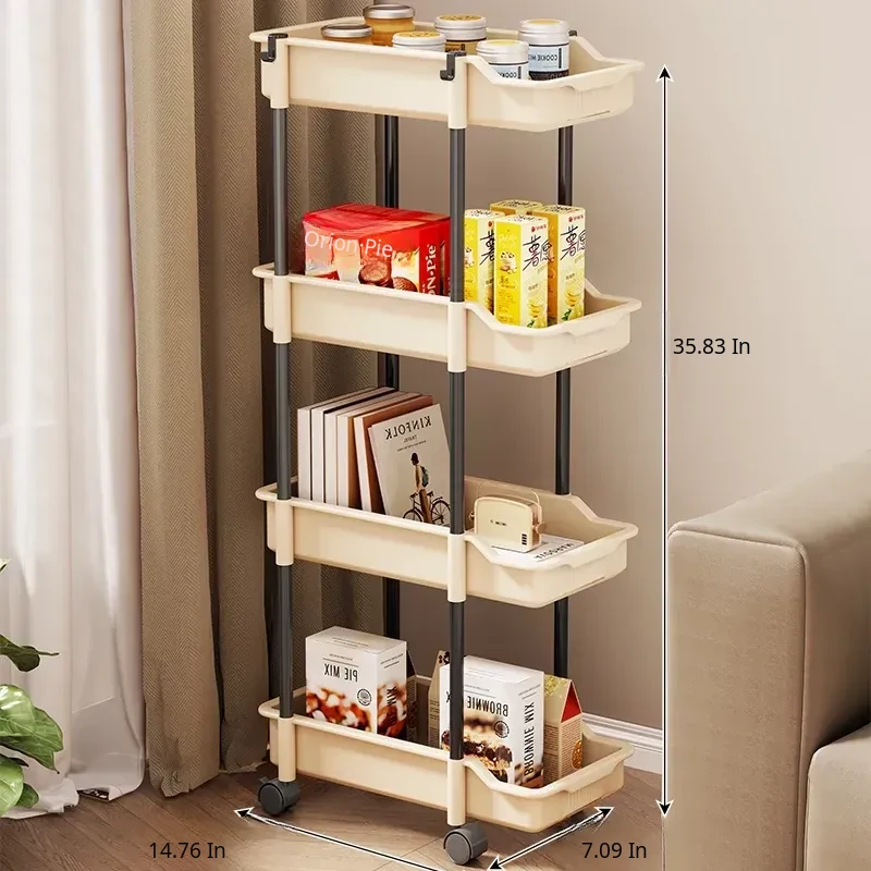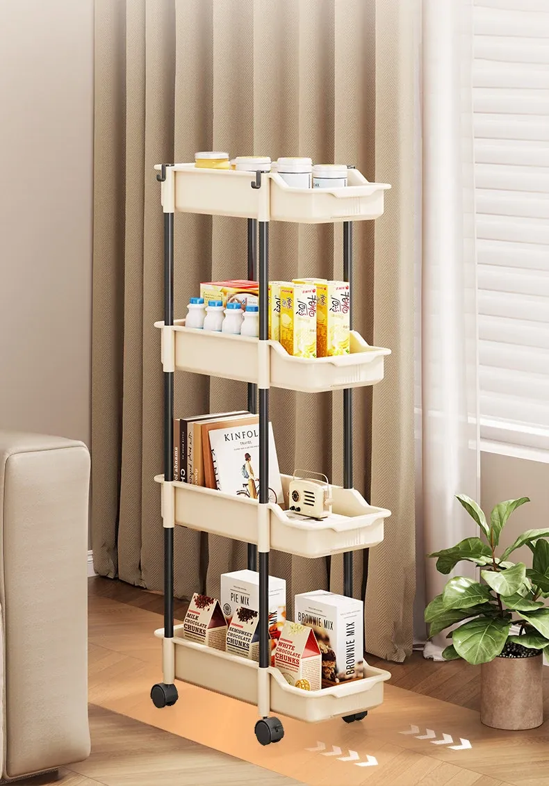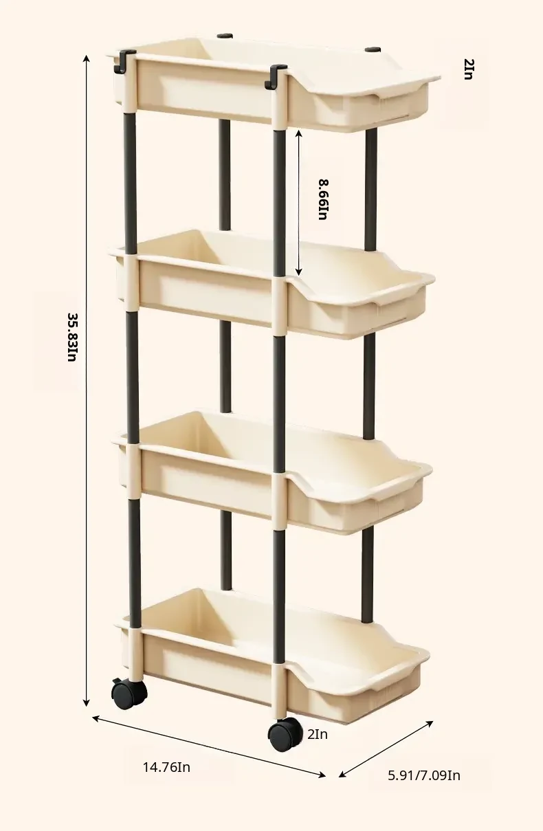 Cream 4-Layer Trolley Storage Rack [Narrow 7.09in] with Universal Wheels