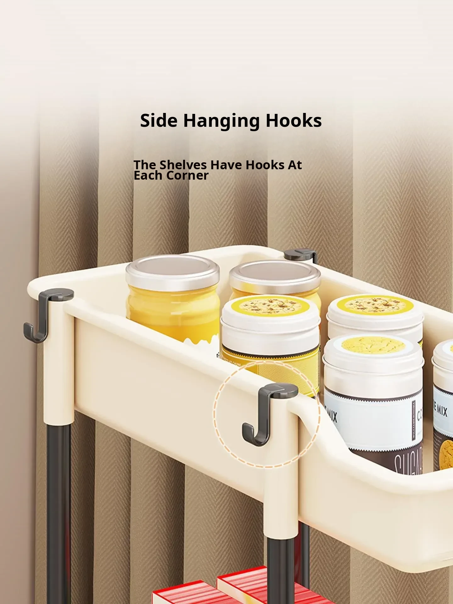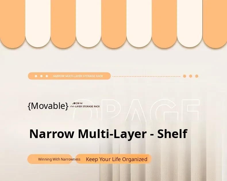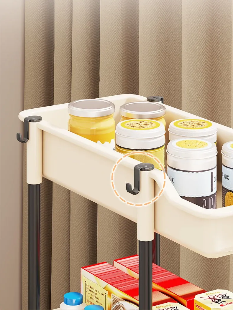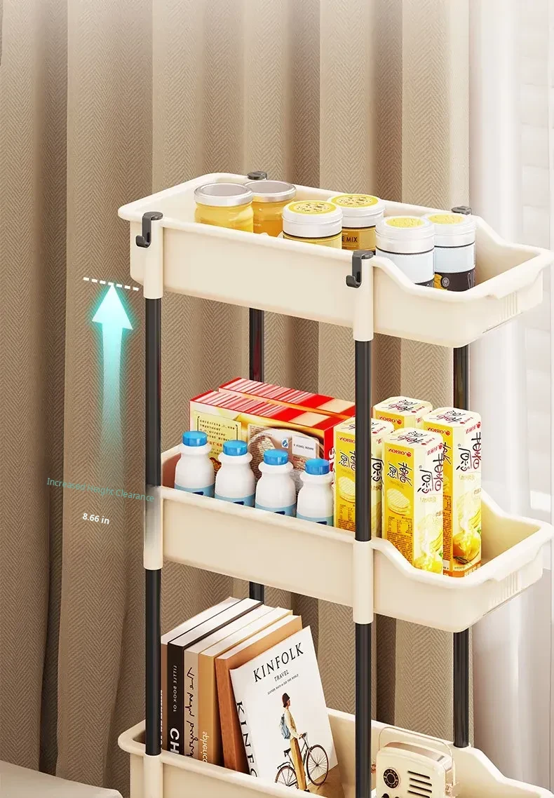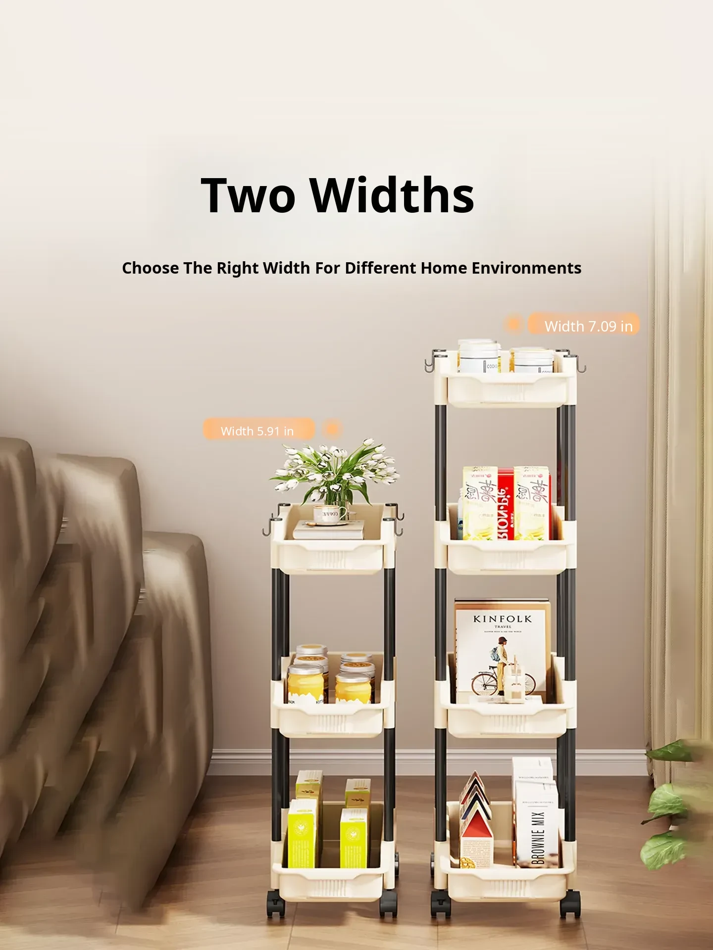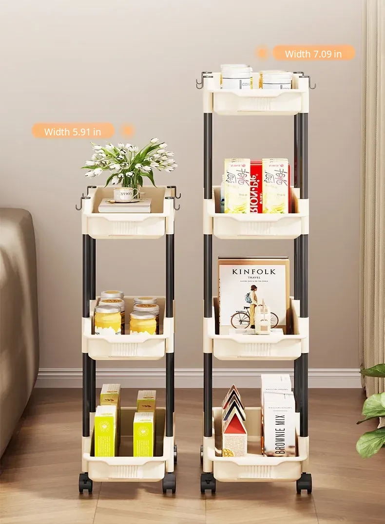 Cream 4-Layer Trolley Storage Rack [Narrow 7.09in] with Universal Wheels