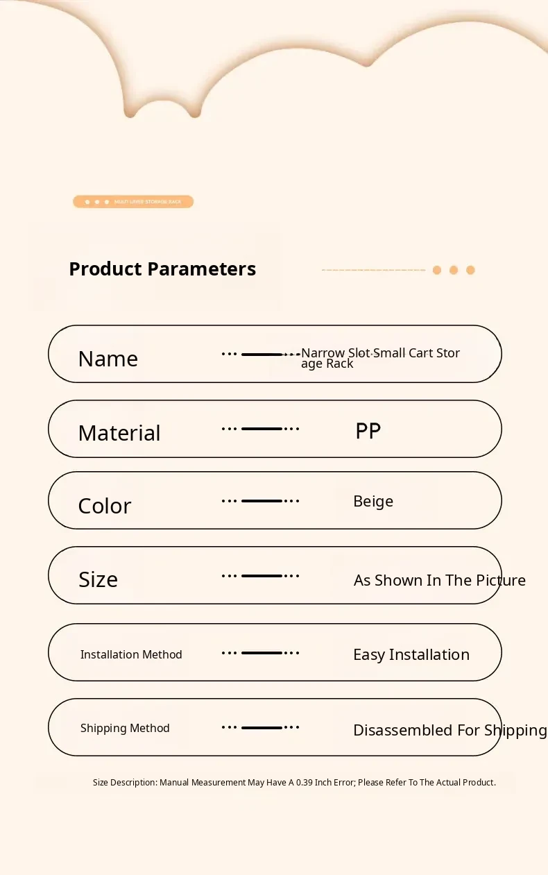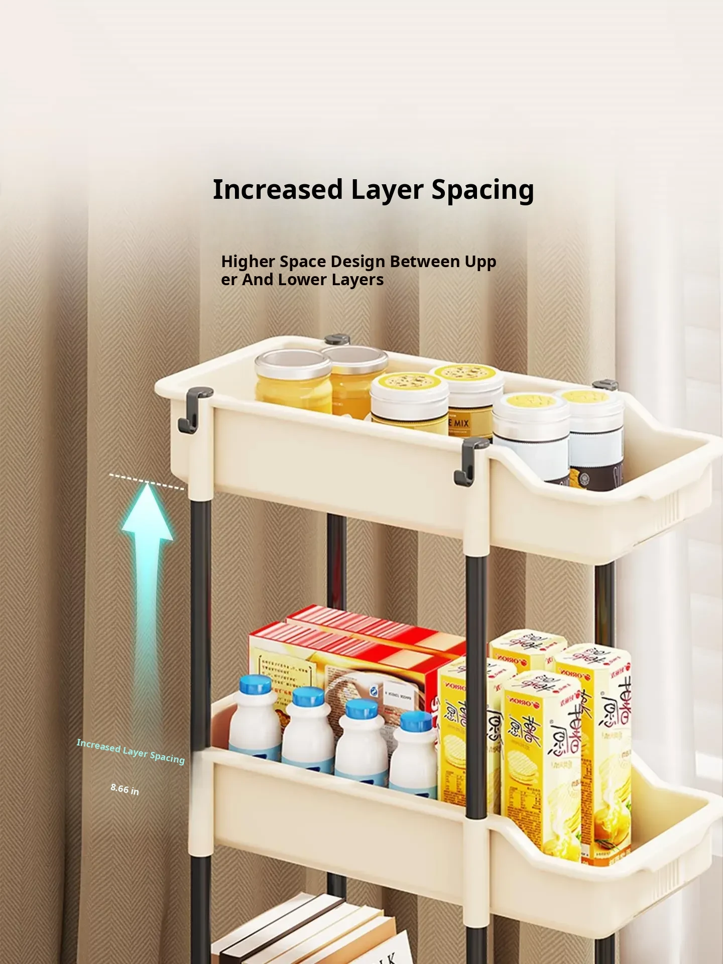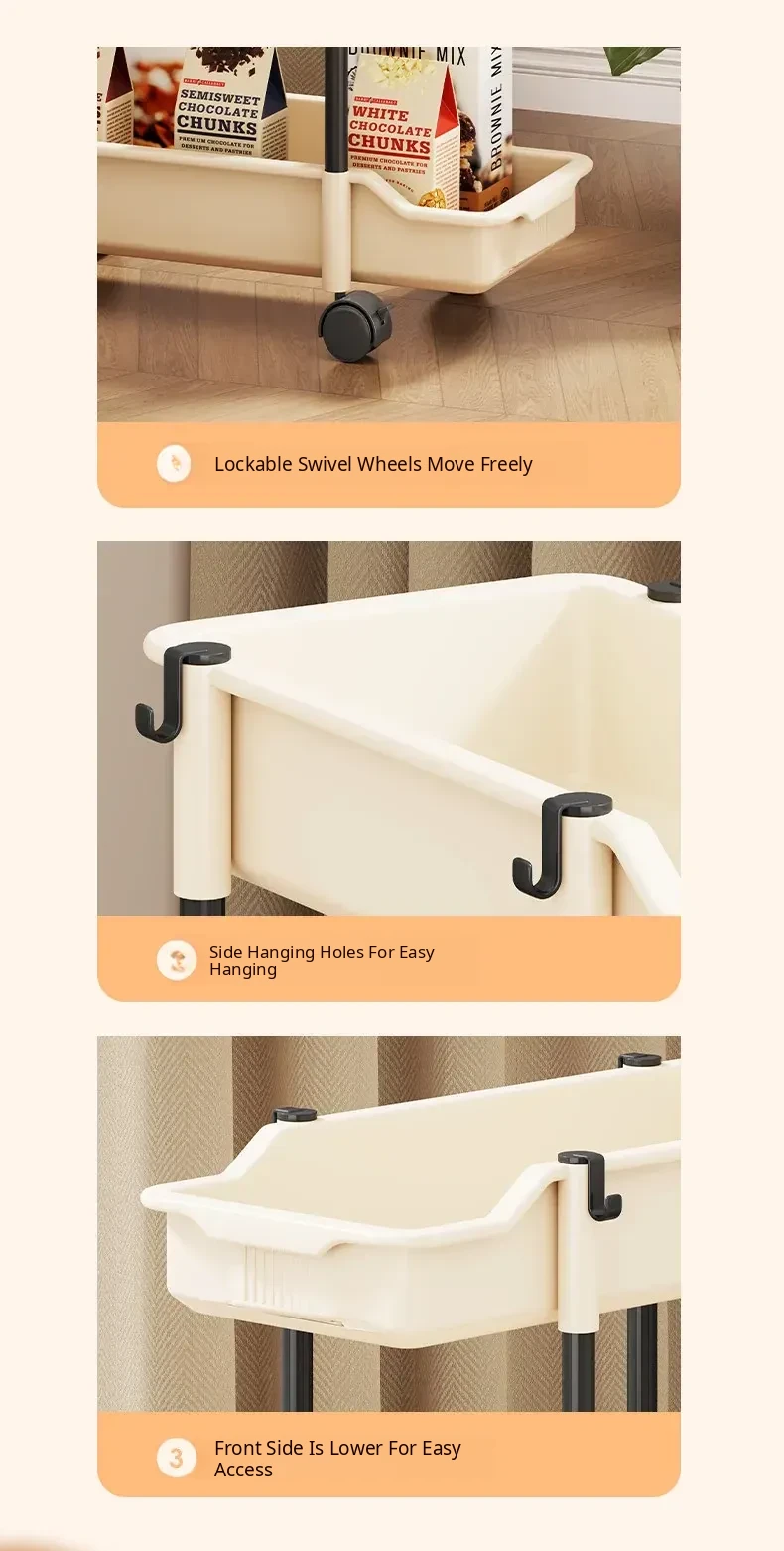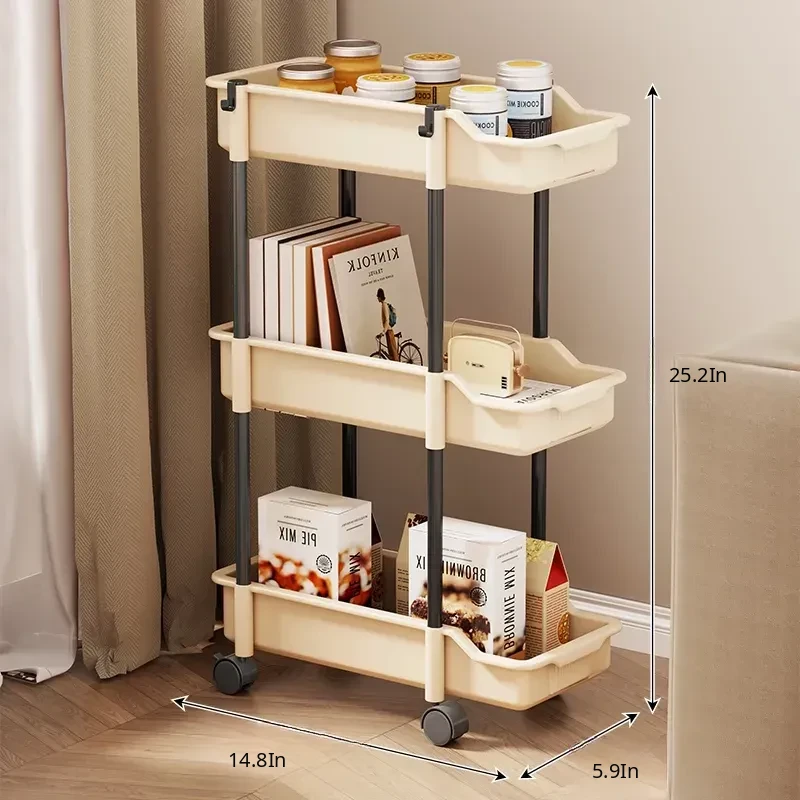 Cream 3-Layer Trolley Storage Rack [Narrow 7.09in] with Universal Wheels