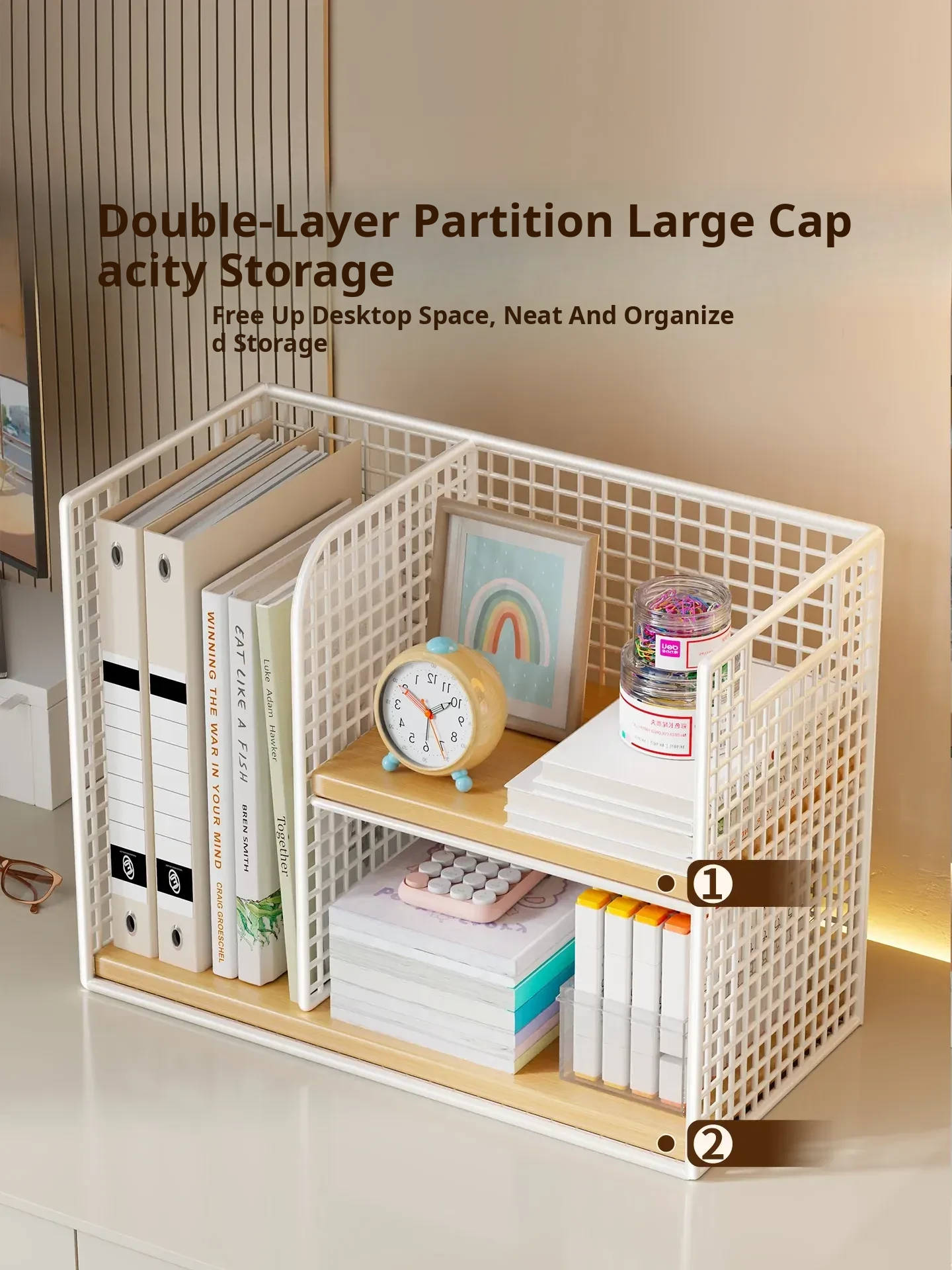 Multi-Layer Desk Organizer for Home and Kids - Compact Bookshelf for School Supplies and Office Document Storage, Perfect for Efficient Space Management