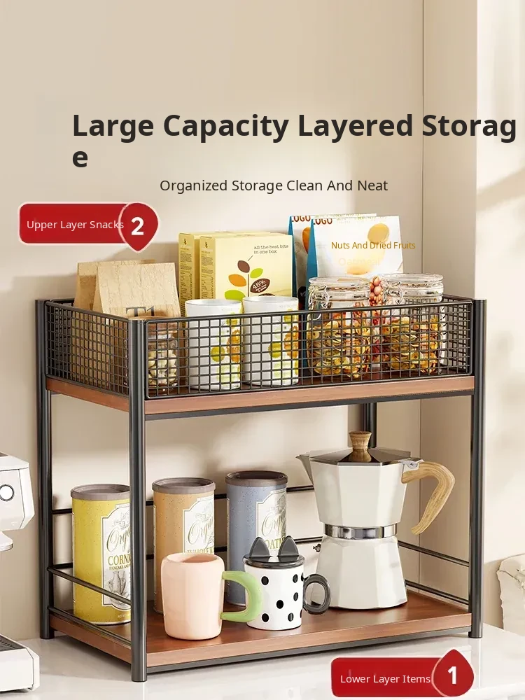 Multi-Layer Desktop Storage Rack for Kitchen Counter - Spice Organizer, Cup Holder, Snack Shelf for Dining Table, and Living Room Mug Stand. Perfect for Keeping Your Space Tidy and Stylish!
