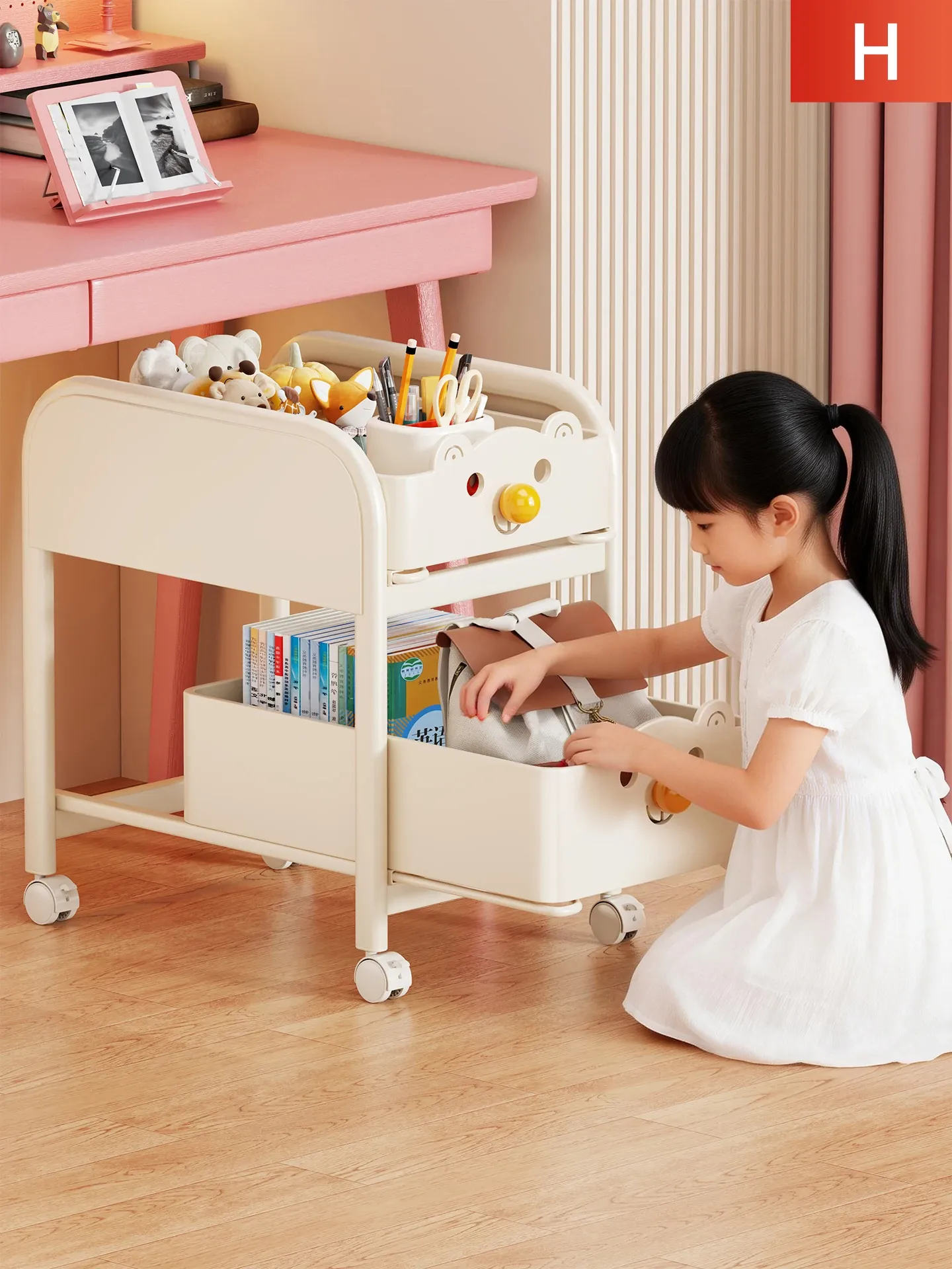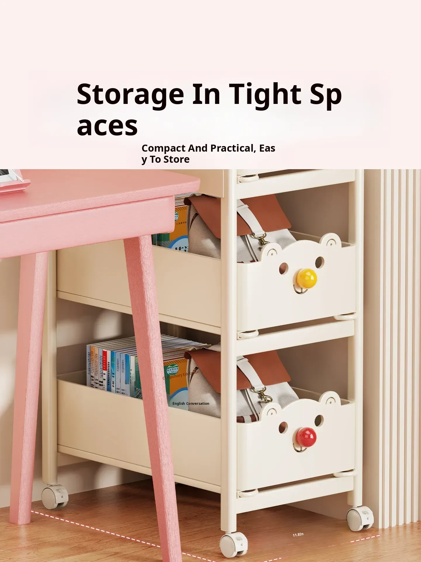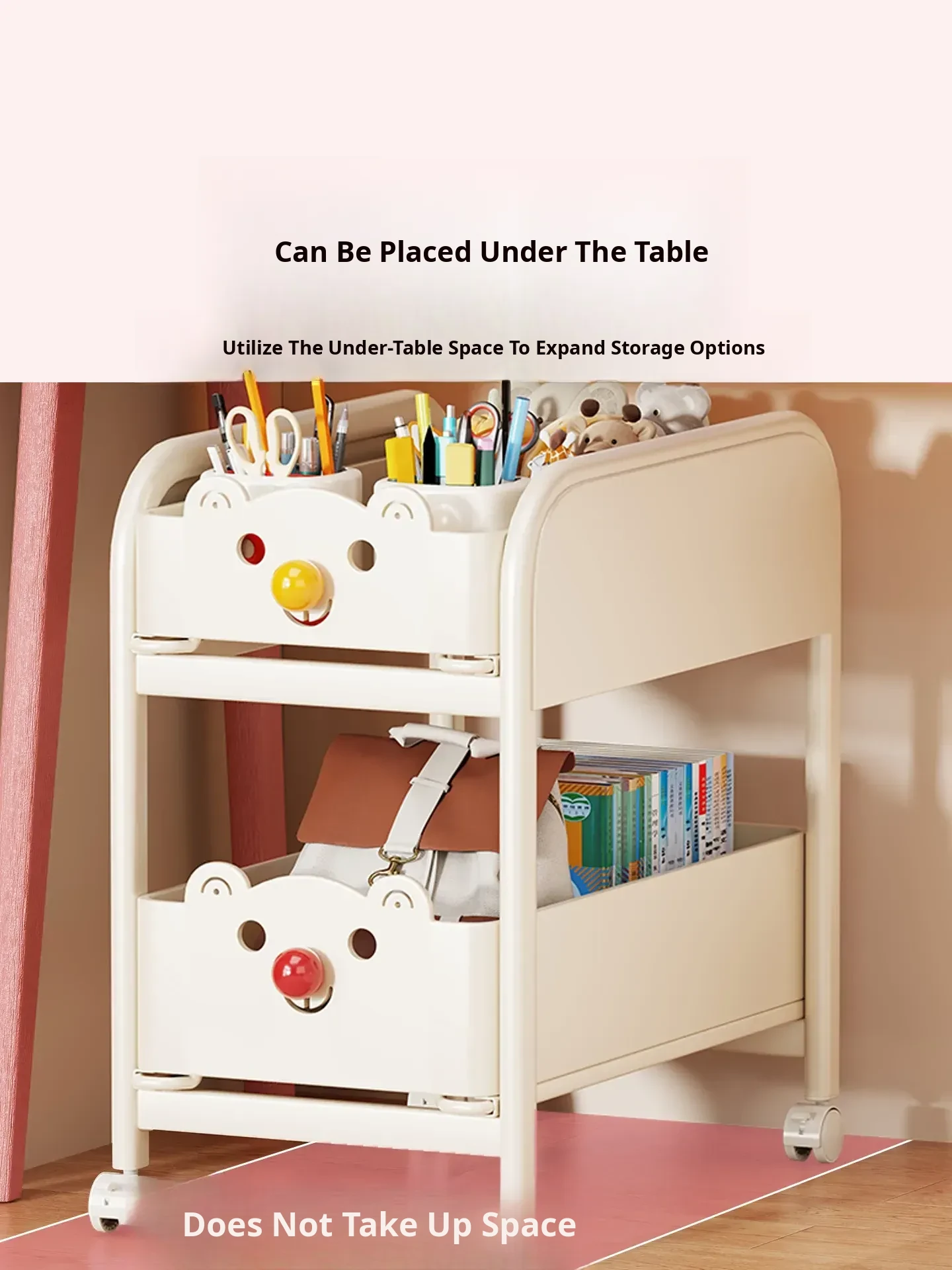 Multi-Layer Rolling Storage Cart for Books - Ideal Under-Desk Organizer for Students in Dorms and Classrooms - Space-Saving Design for Easy Mobility and Efficient Storage