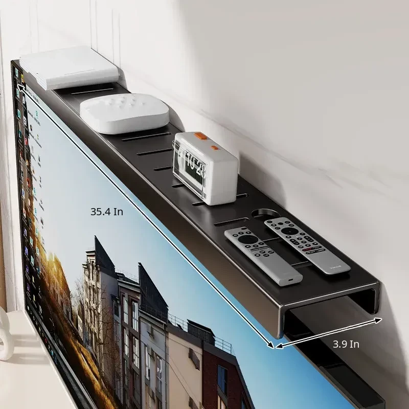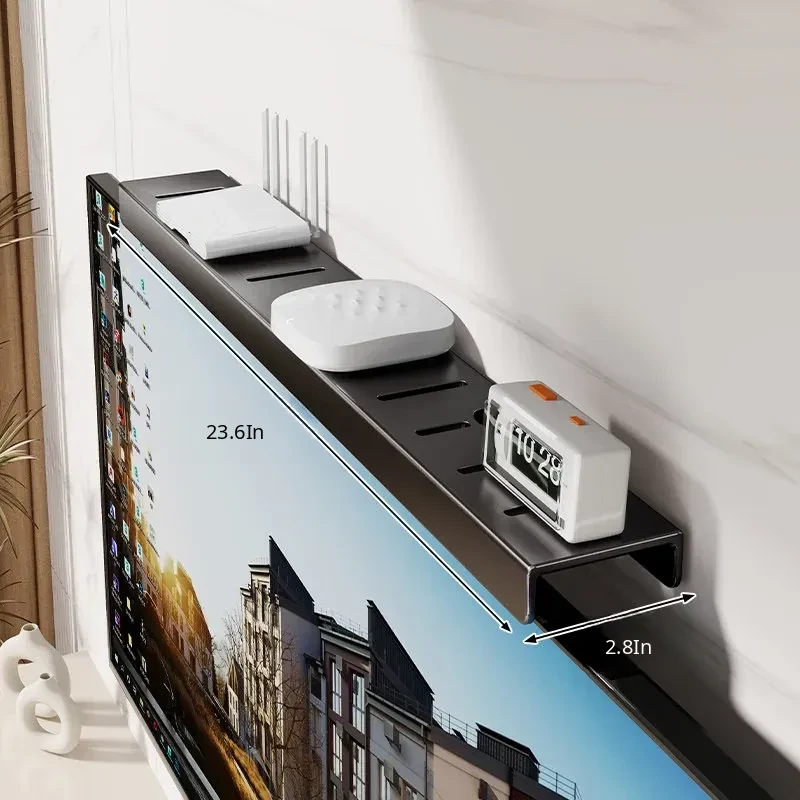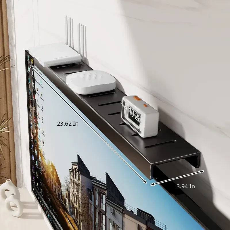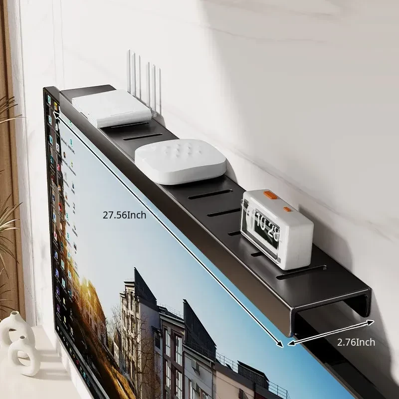 No-Drill TV Box Storage Shelf - Hidden Cold-Rolled Steel Organizer for Router and Accessories - Wall-Mounted Bracket for a Clean and Stylish Setup