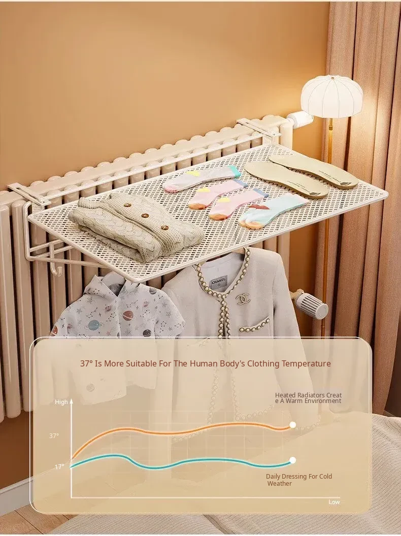 Radiator Clothes Drying Rack - Premium Hook Shelf for Easy Garment Drying on Radiator Pipes, Perfect for Efficient Space Utilization and Quick Drying. Ideal for Small Spaces!