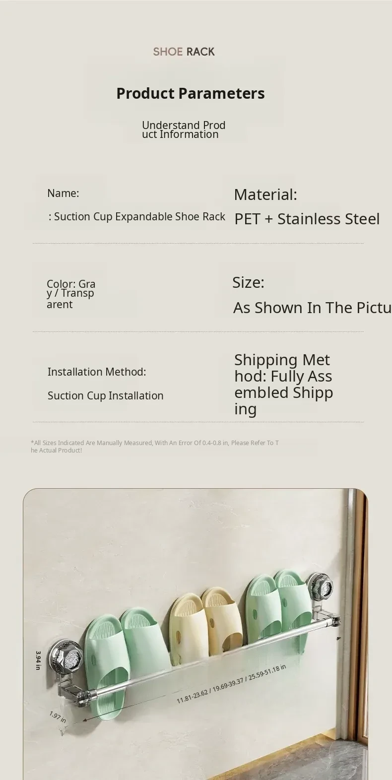 Transparent Slipper Rack⭐Retractable (25.59in-51.18in)
