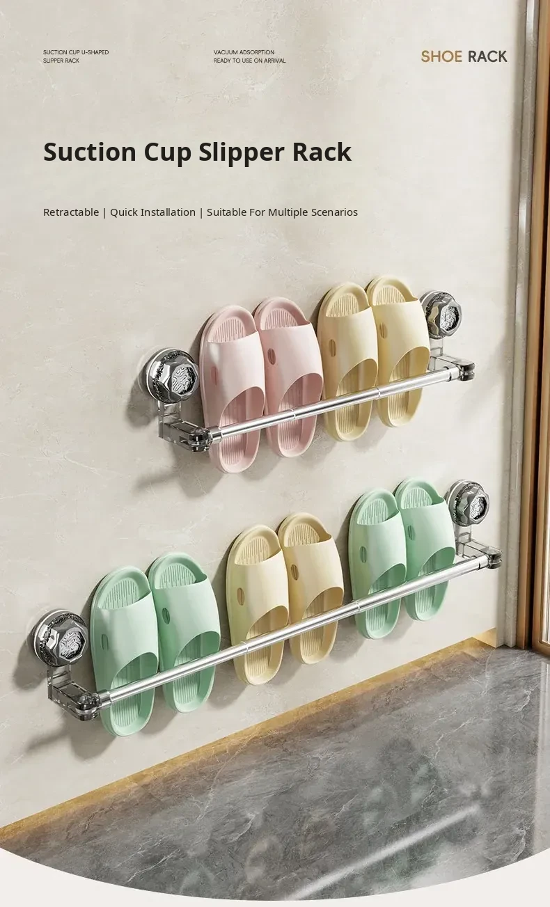 Suction Cup Expandable Slipper Rack – No Drill Bathroom Shoe Storage Organizer, Perfect for Toilets and Bathrooms, Draining Design for Quick Drying Shoes