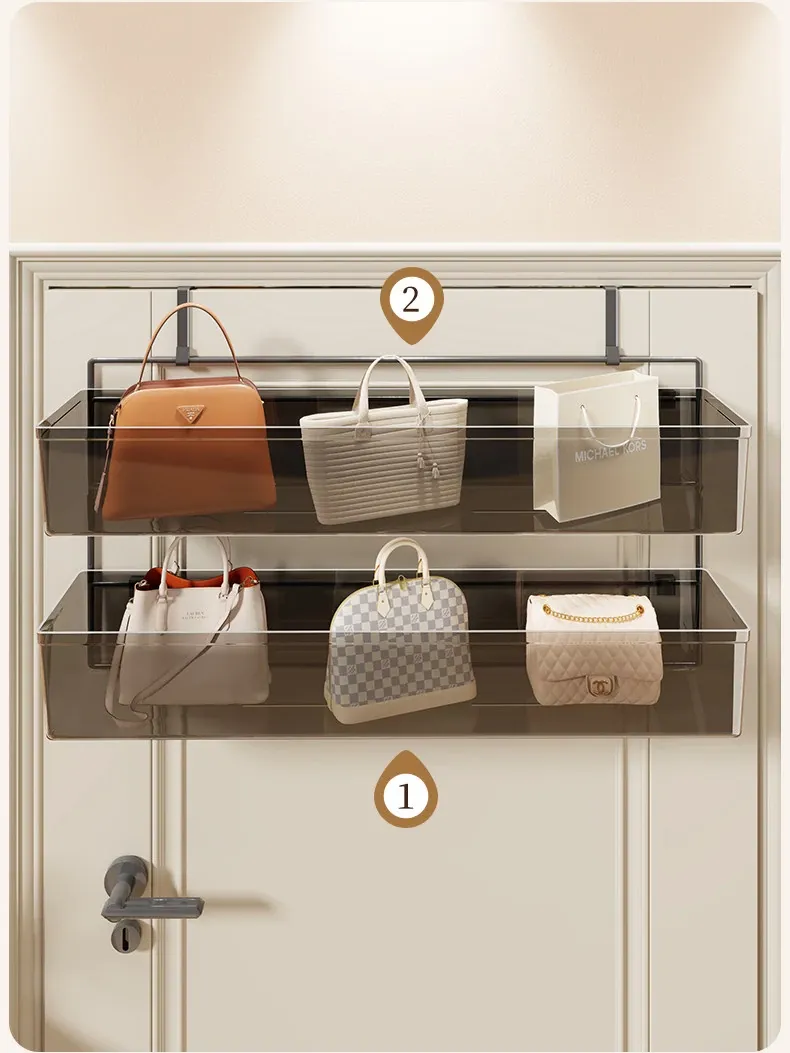 Transparent Handbag Organizer Rack - Space-Saving Over-the-Door Storage Solution for Home, Perfect for Neatly Organizing Your Bags and Accessories!