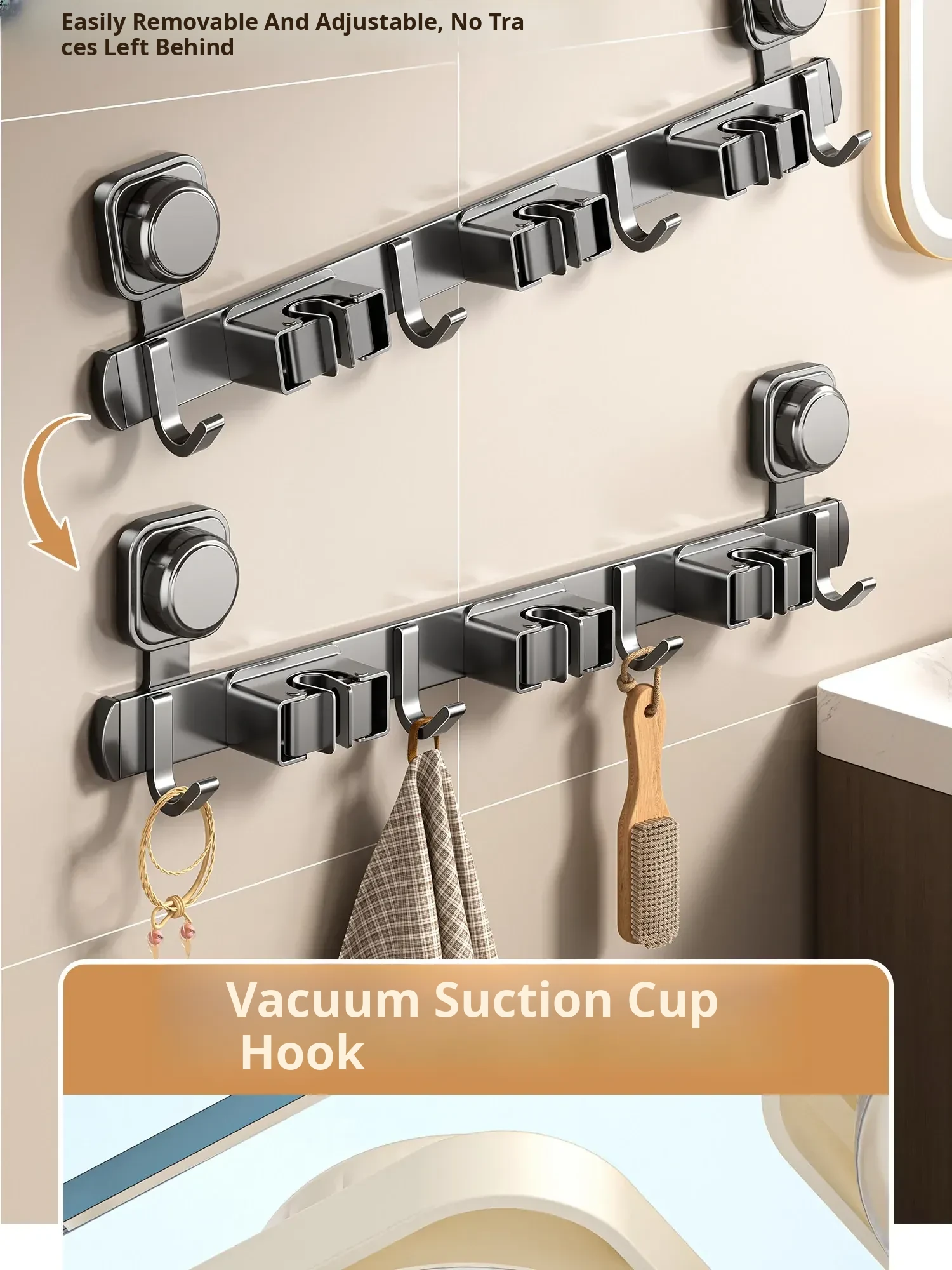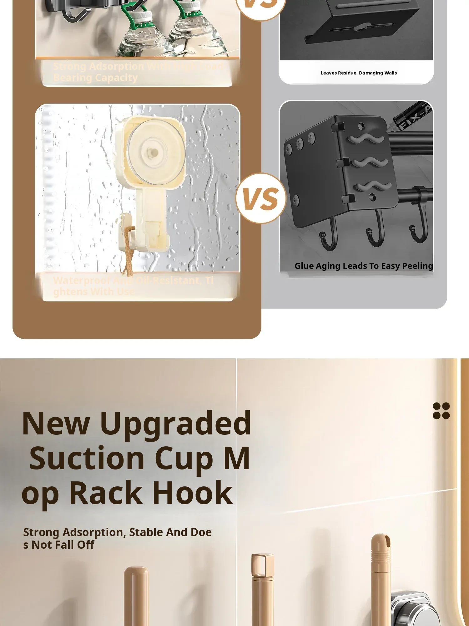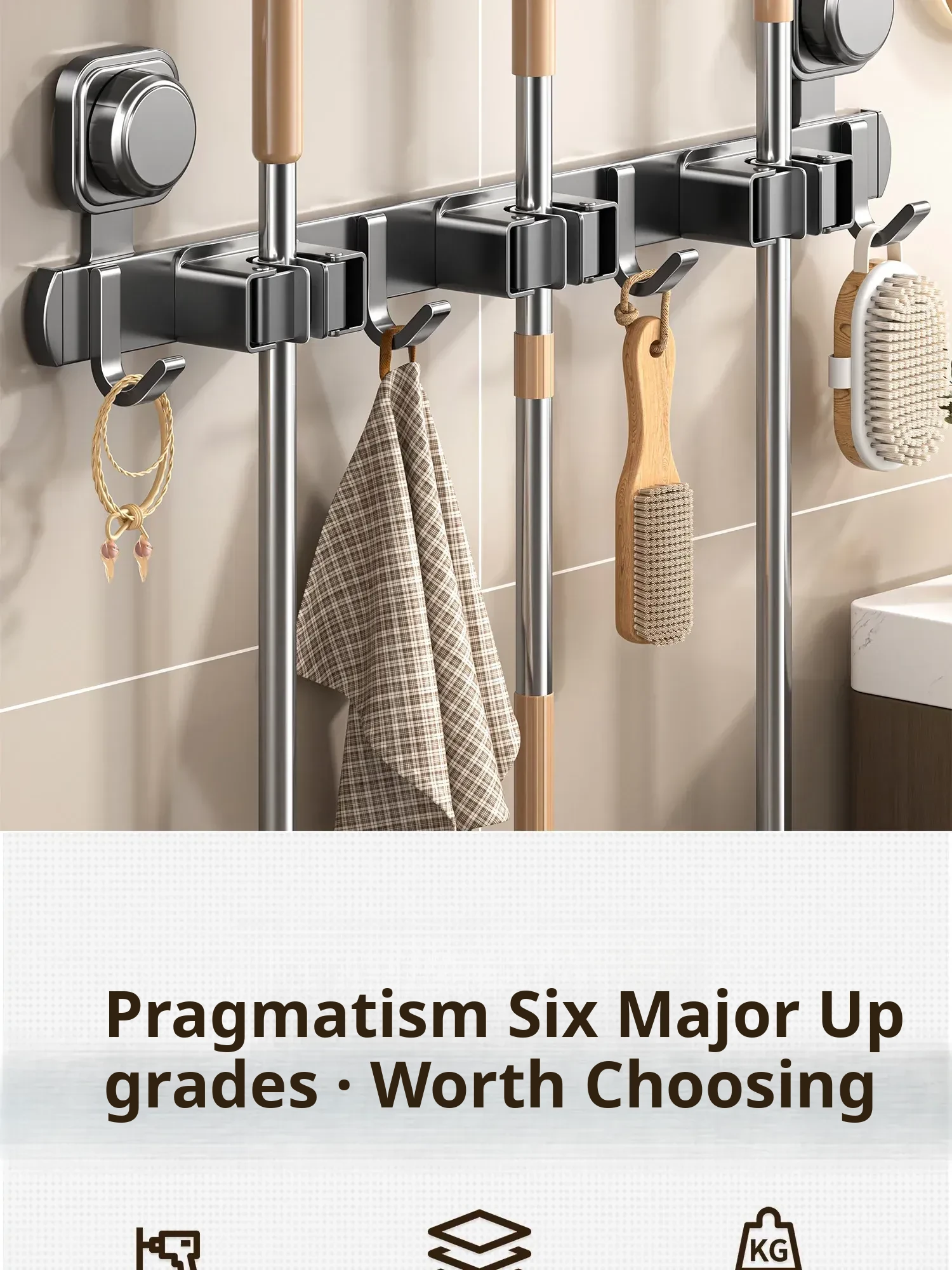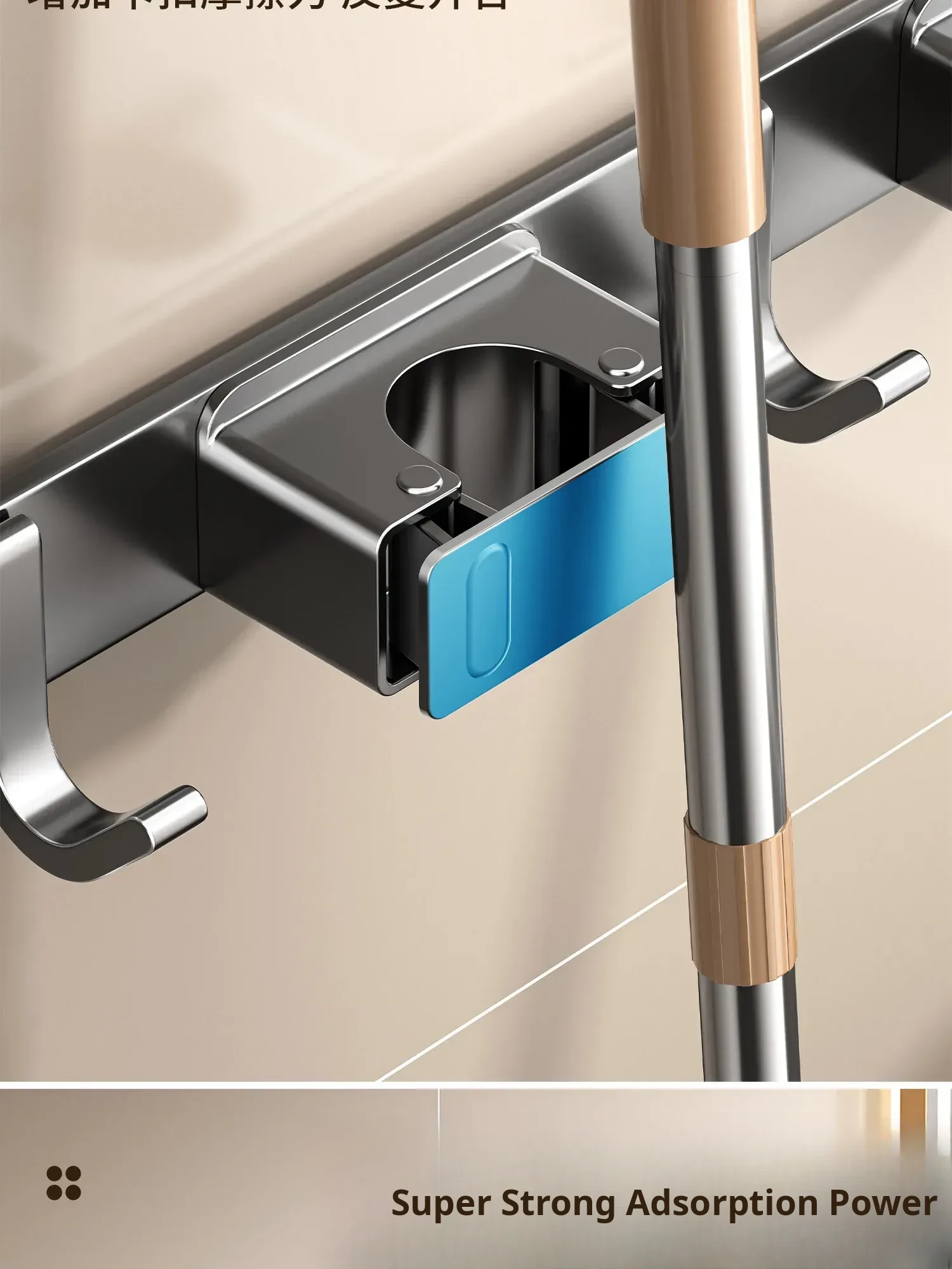Wall-Mounted Mop Holder with Suction Cup – No Drilling Required! Perfect for Bathroom and Kitchen Organization, Keep Your Brooms and Mops Neatly Stored. Ideal Space-Saving Solution for a Tidy Home!