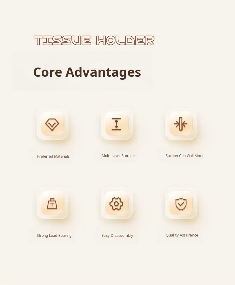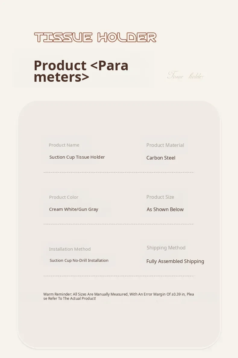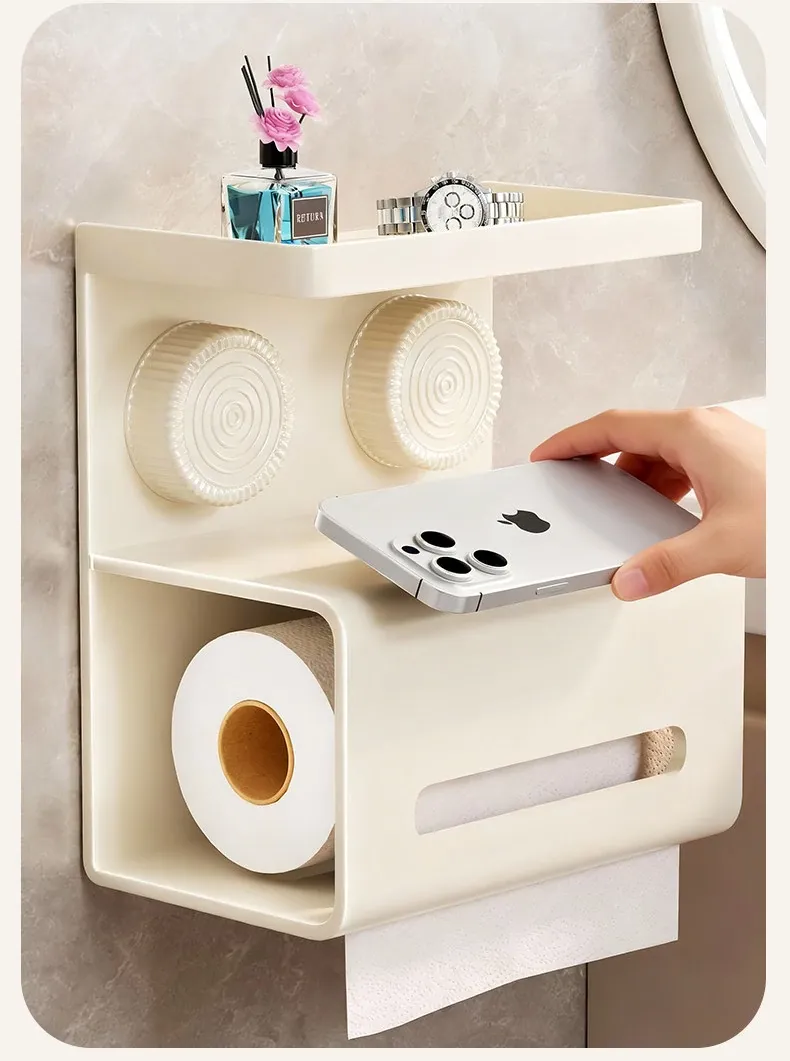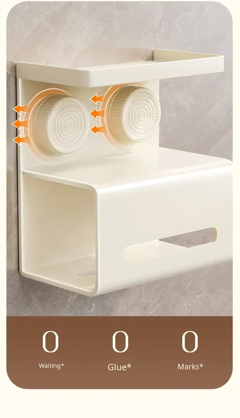 Wall-Mounted Suction Cup Tissue Holder - No Drilling Required, Perfect for Bathroom, Stylish Toilet Paper Storage Organizer, Convenient Roll and Tissue Dispenser for Your Bathroom Needs
