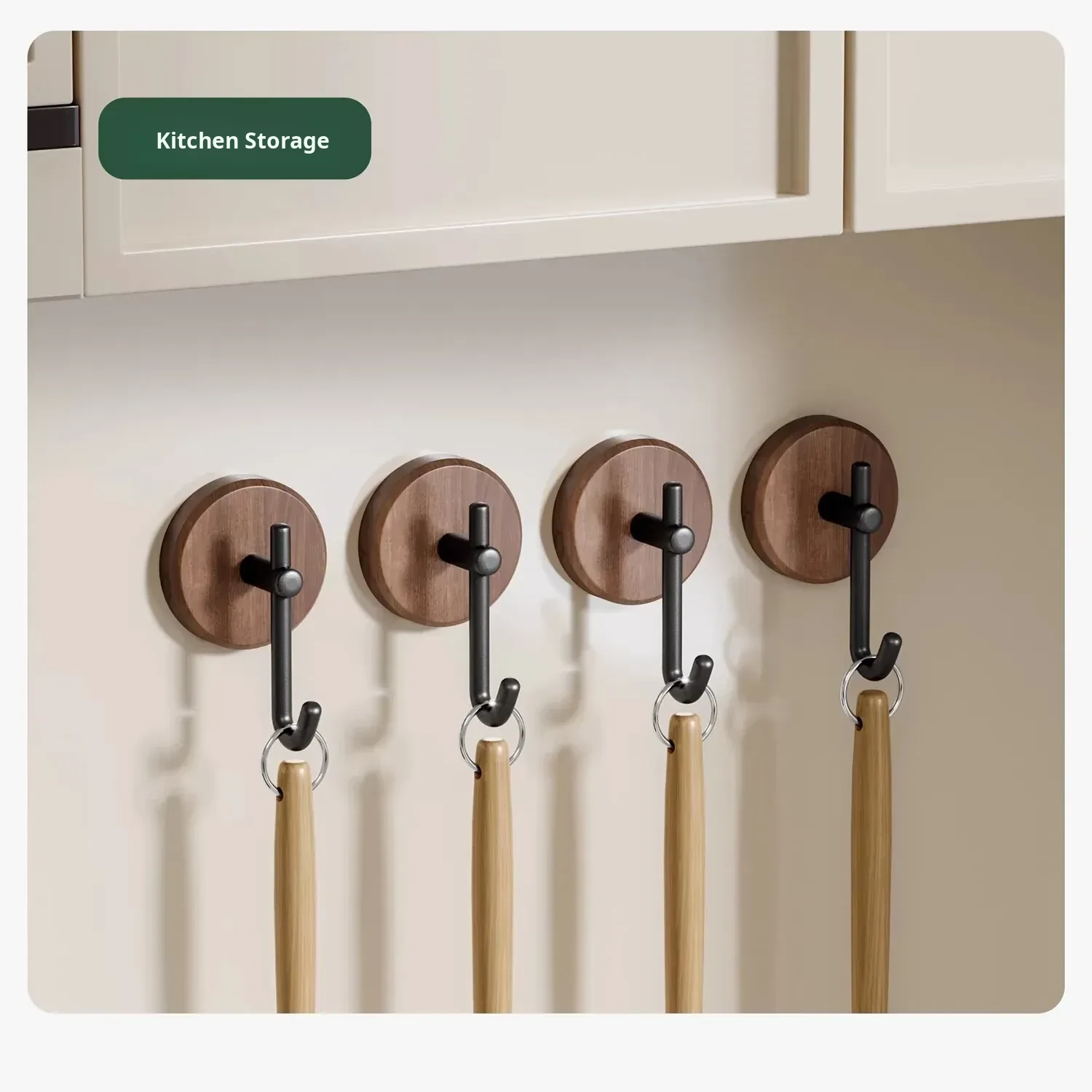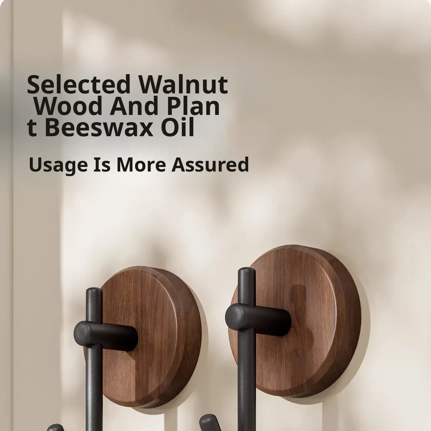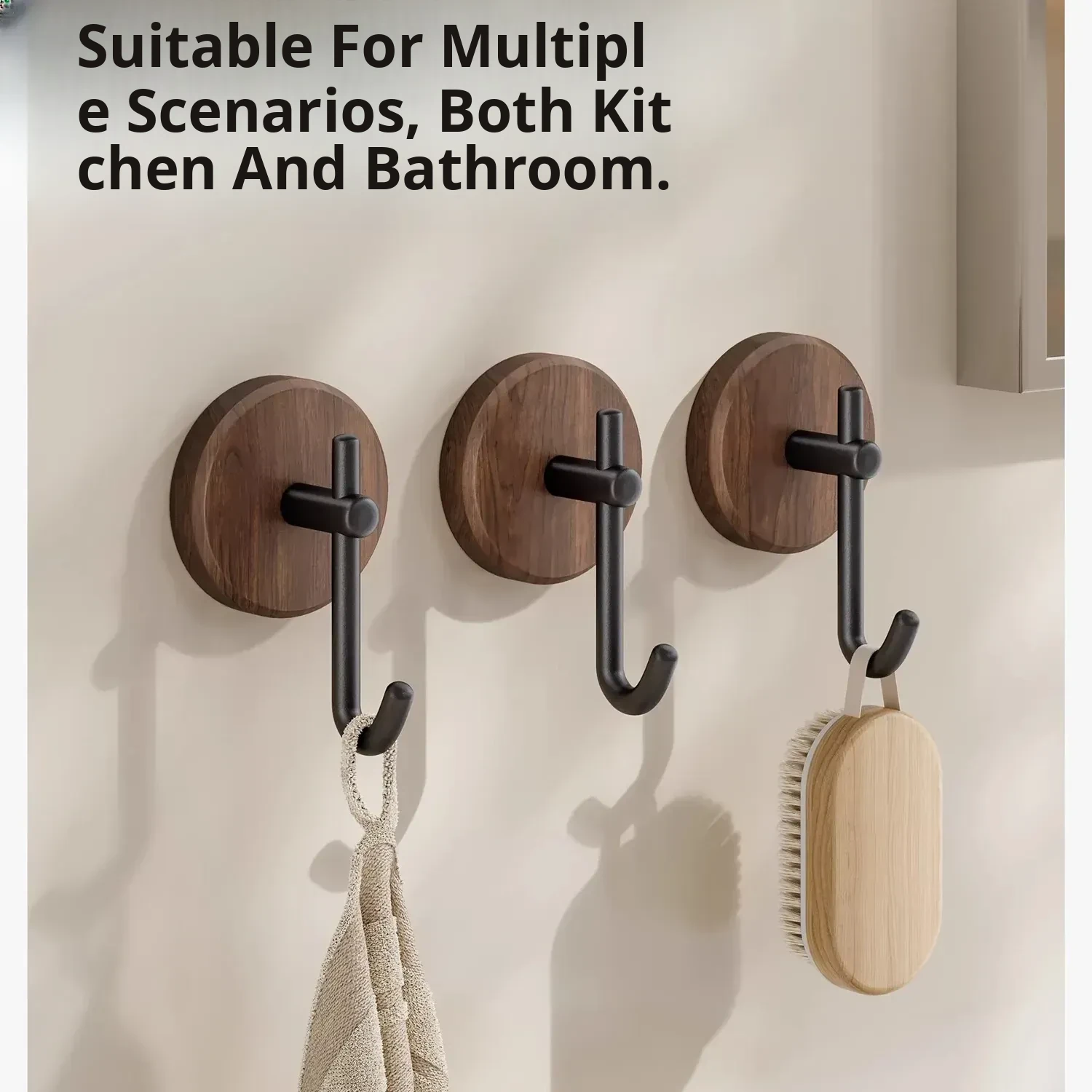 Walnut Wood Bathroom Hooks - No Drill, Strong Load-Bearing, Damage-Free Adhesive Towel Hangers for a Luxurious Touch in Your Bathroom - Perfect for Door or Wall Mounted Use