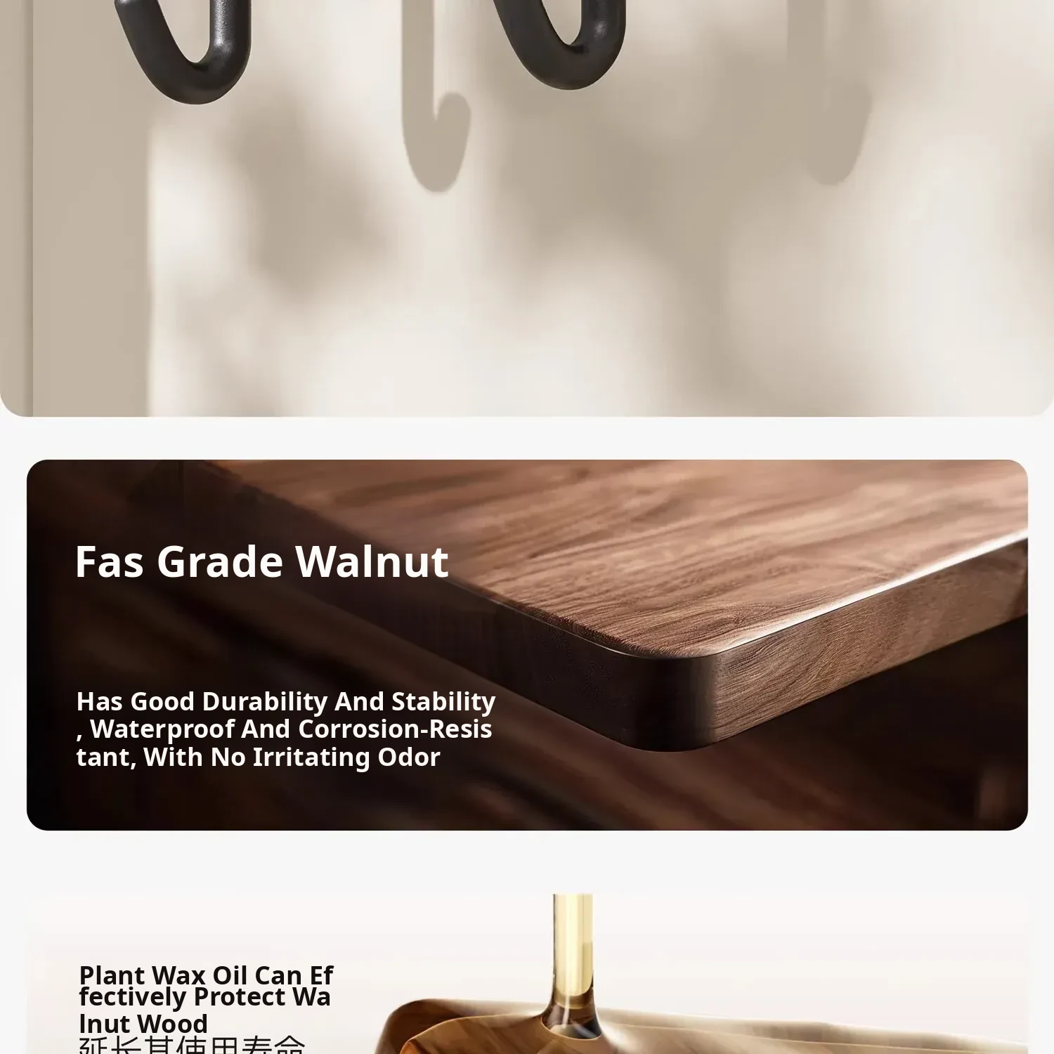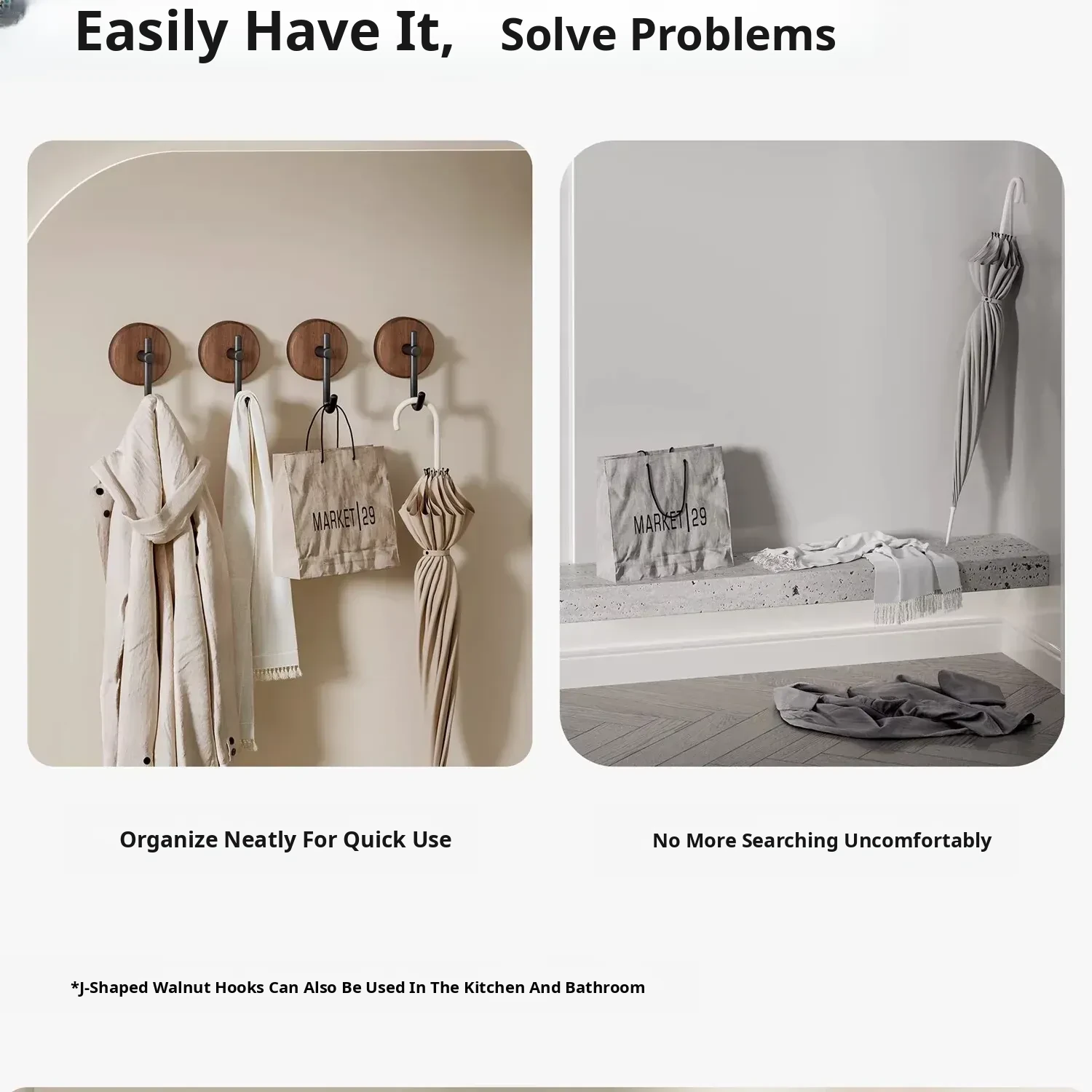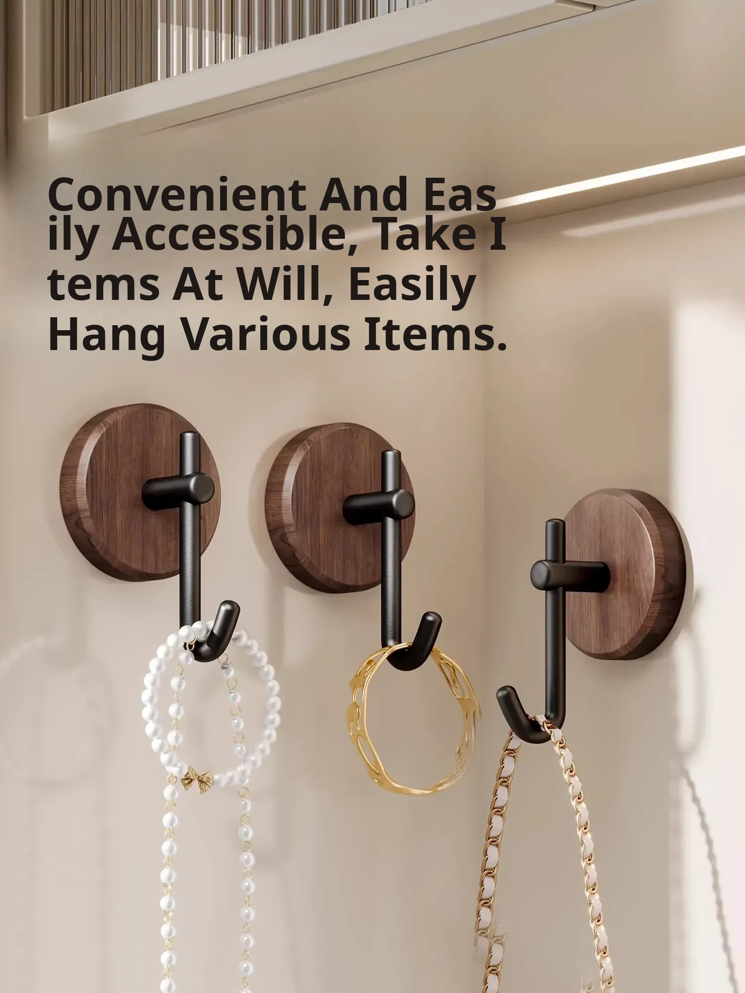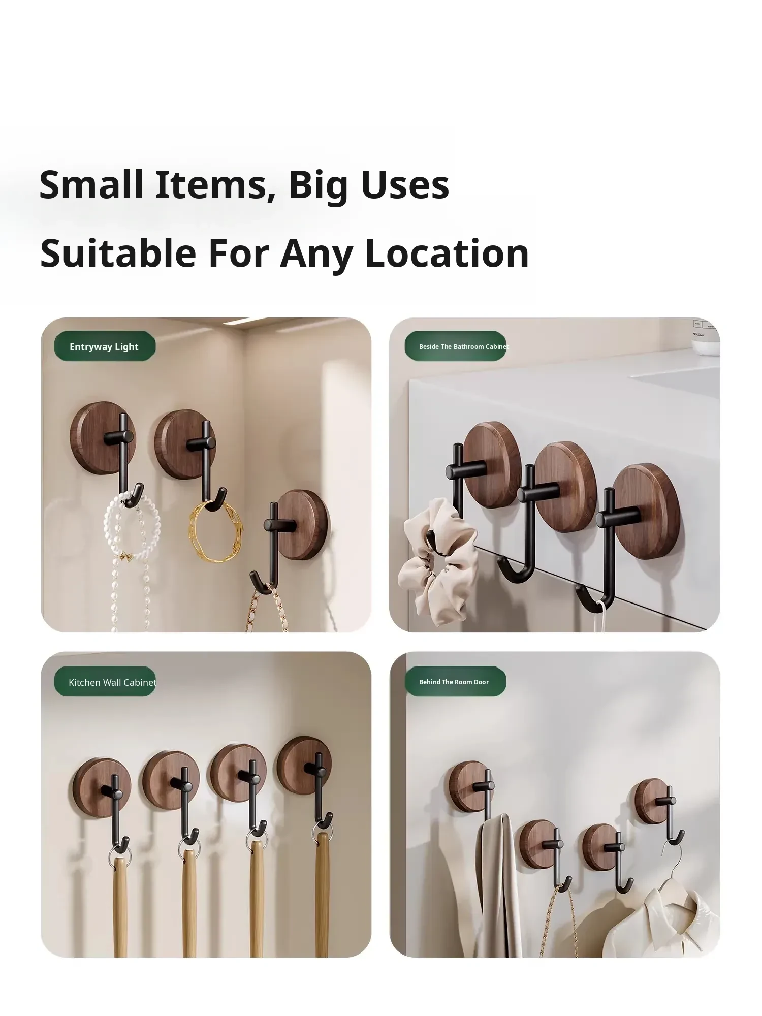 Walnut Wood Bathroom Hooks - No Drill, Strong Load-Bearing, Damage-Free Adhesive Towel Hangers for a Luxurious Touch in Your Bathroom - Perfect for Door or Wall Mounted Use