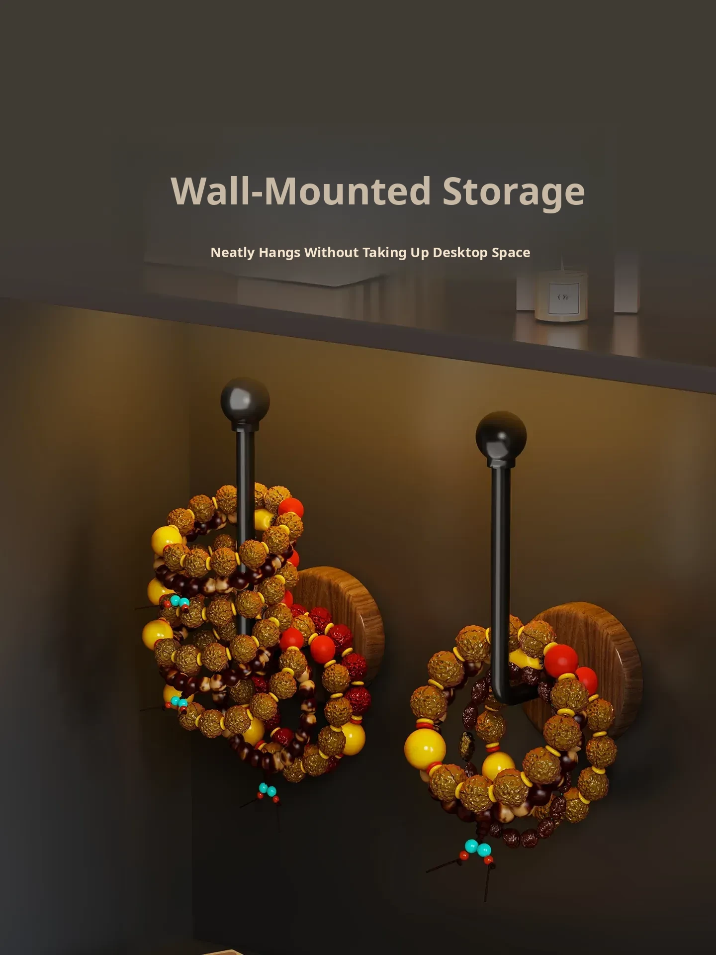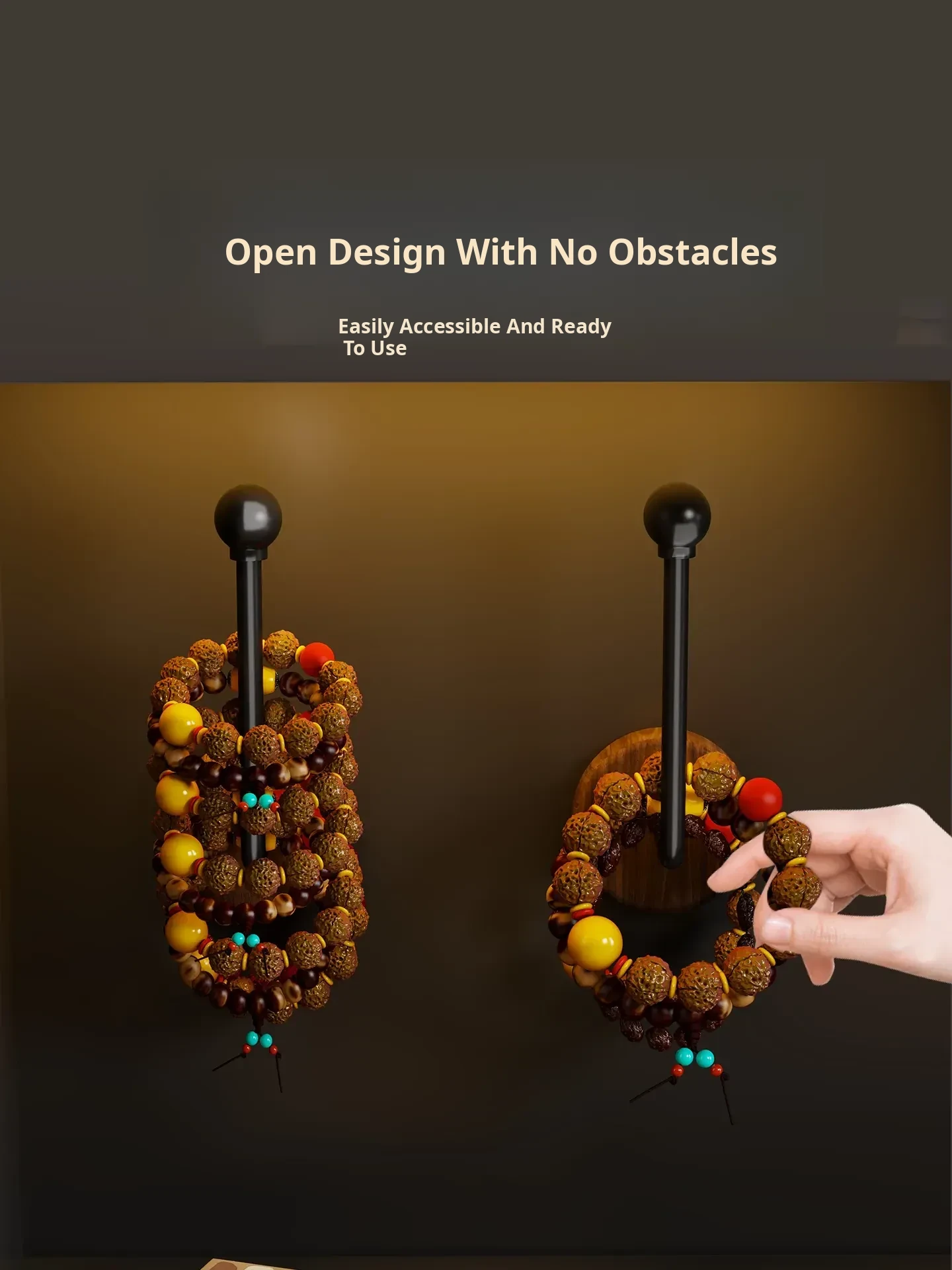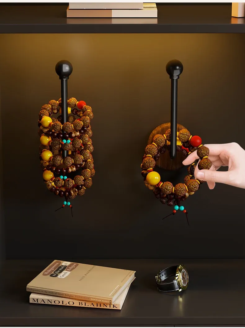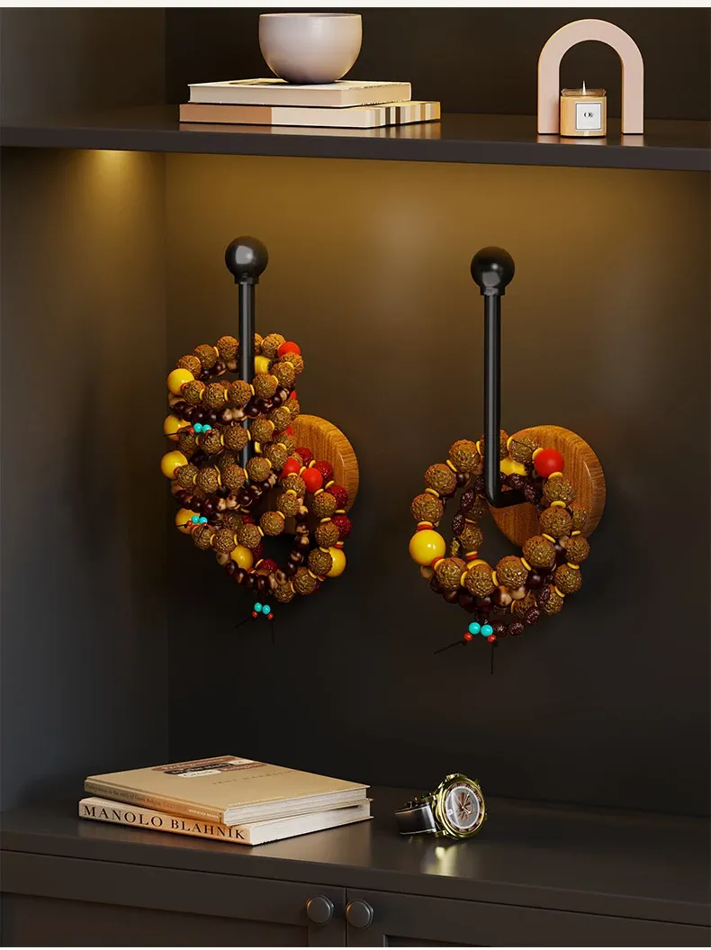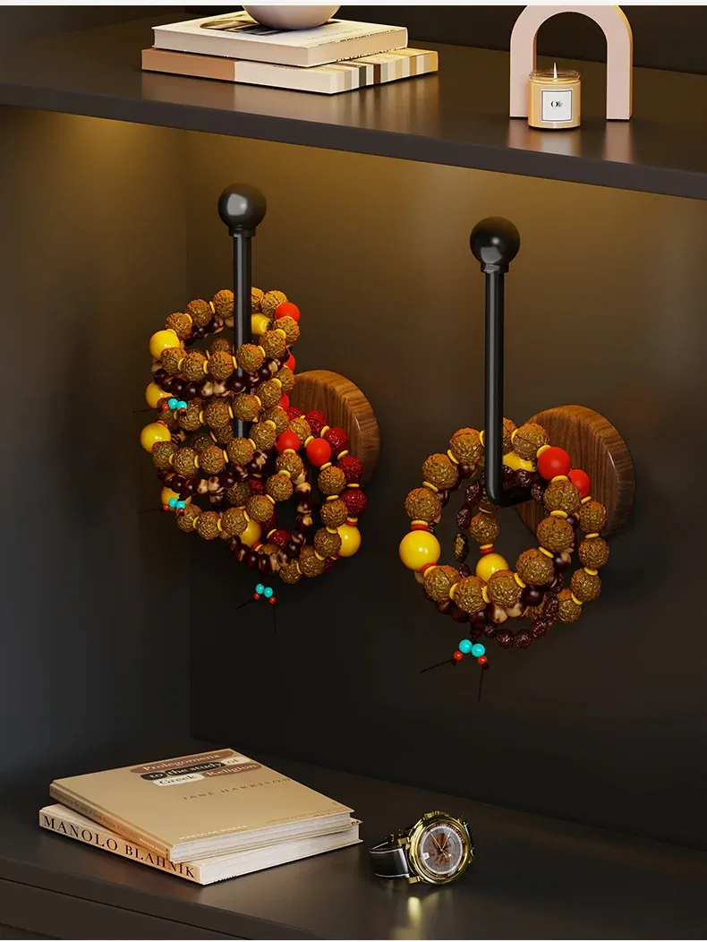 Walnut Wood Jewelry Organizer - Handheld Buddha Beads, Bracelets, Hair Ties, and Headbands - Wall-Mounted Storage Hook for Stylish Home Decor