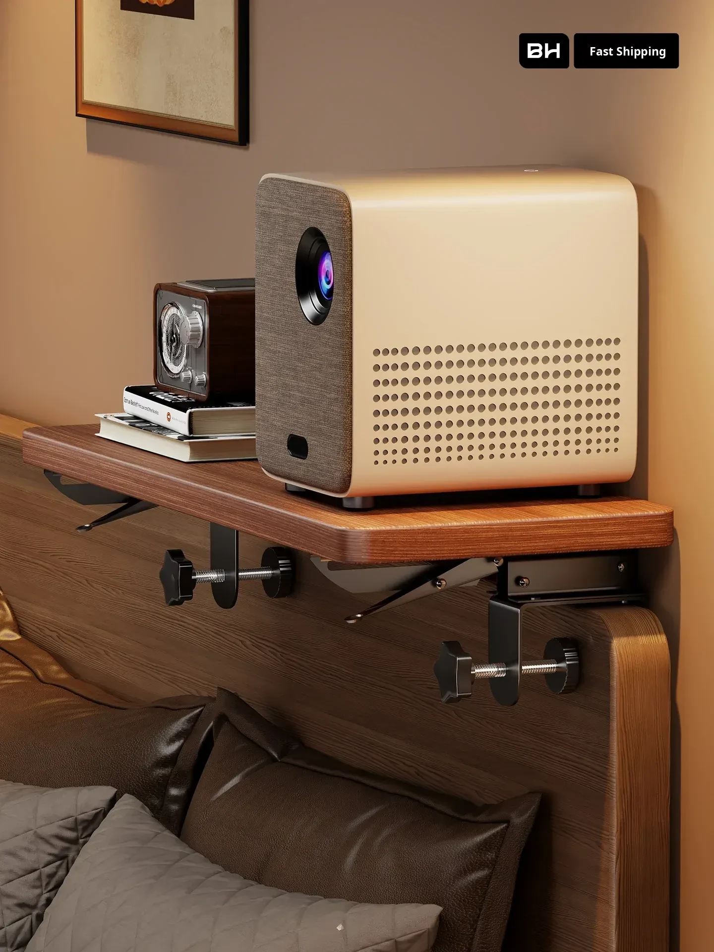 Foldable No-Drill Projector Bedside Stand - Multi-Functional Shelf for Home Use, Perfect for Bedroom, Router Tray, and Power Strip Holder