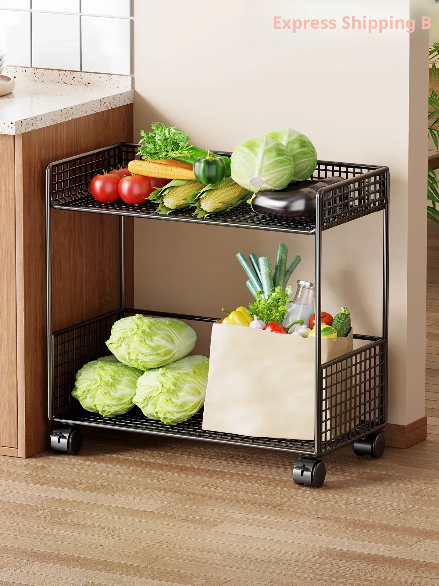 Multi-Layered Kitchen Storage Rack with Vegetable Baskets - Mobile Household Cart for Toys and Organizing Essentials, Perfect for Efficient Space Management!