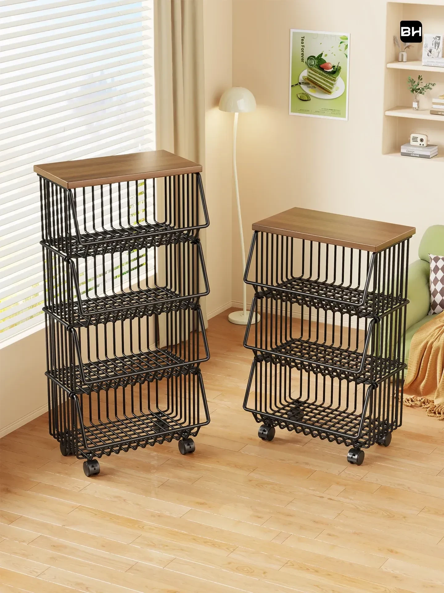 Multi-Layer Kitchen Vegetable Rack - Portable Floor Storage Organizer for Spices, Fruits, Snacks, and Toys - Perfect for Home Use!