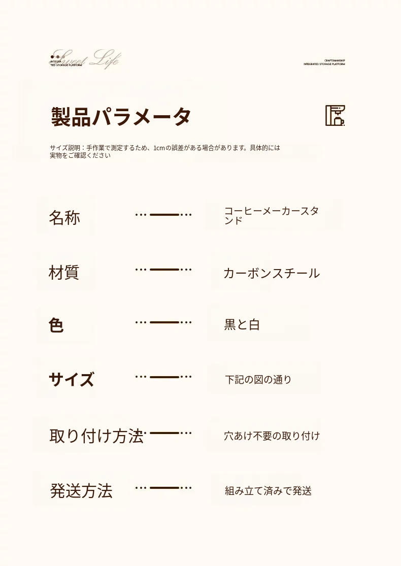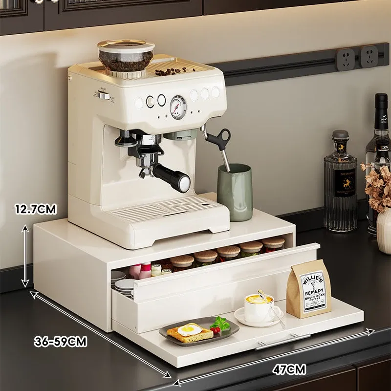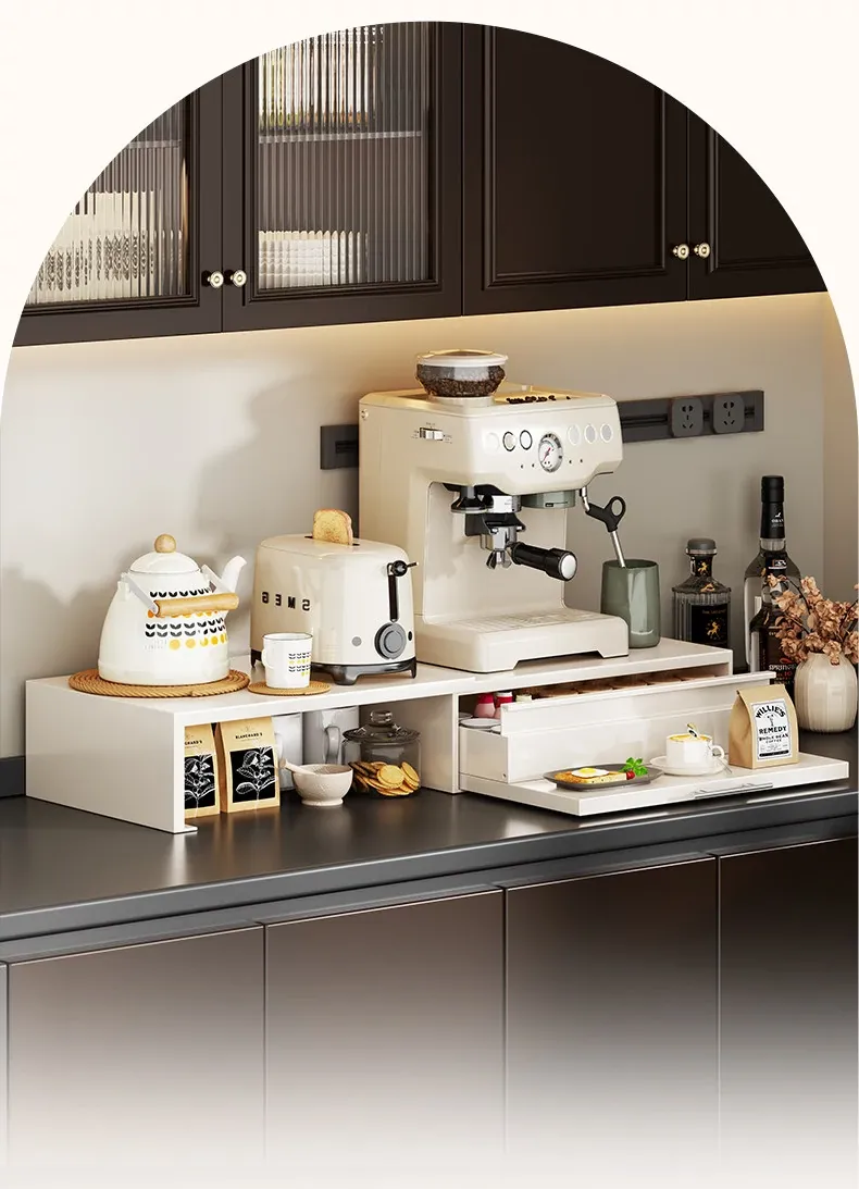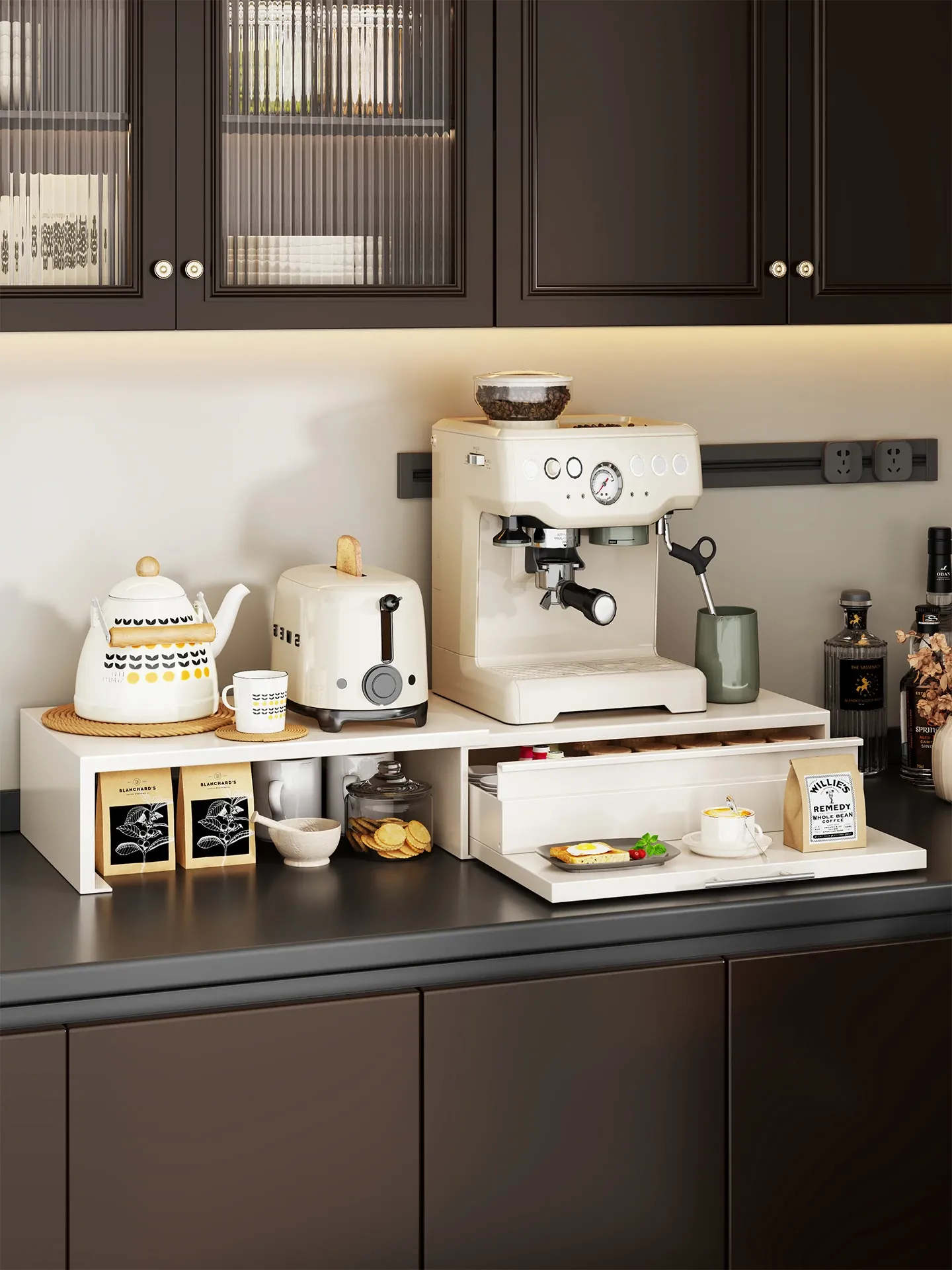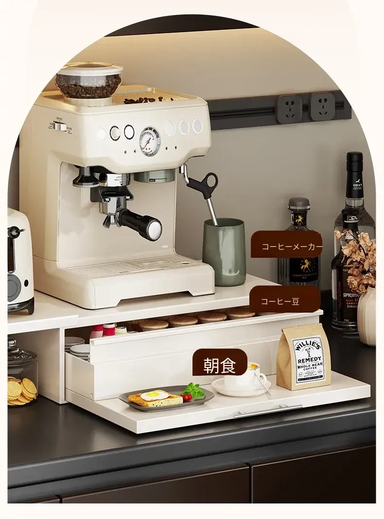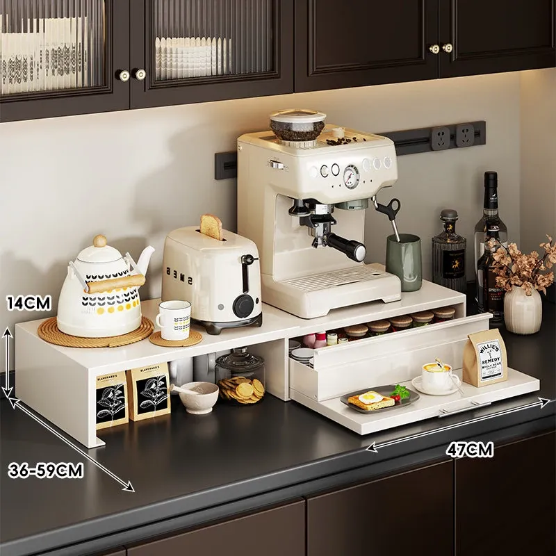 コーヒーメーカー用収納ラック - 調節可能な長さで、厚手で耐久性抜群!キッチンをすっきり整理し、電気ケトルも安心して置ける便利アイテム。あなたの料理空間をもっと快適に!