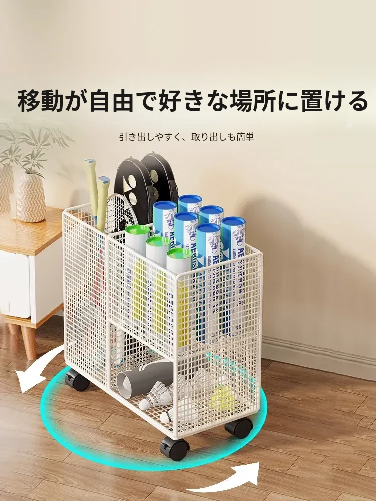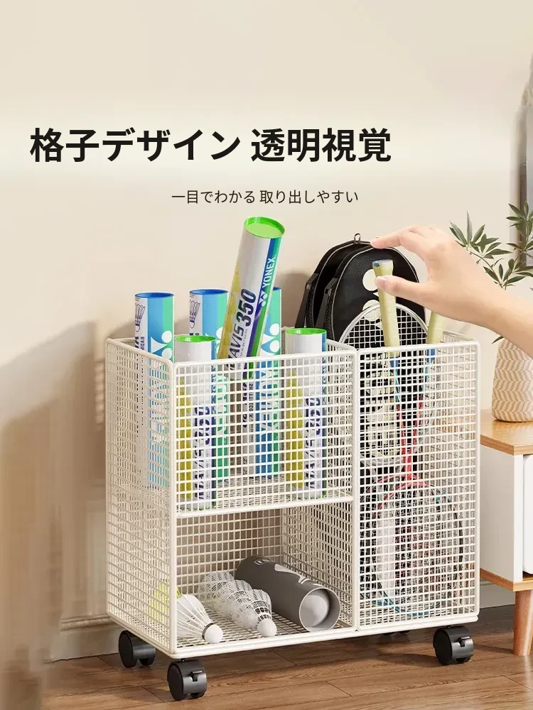 バドミントンラケット収納ラック 家庭用置き棚 バドミントンボールの収納バスケット フィットネス用具の整理整頓に最適!省スペースでスタイリッシュなデザインで、あなたのトレーニング環境をもっと快適に!