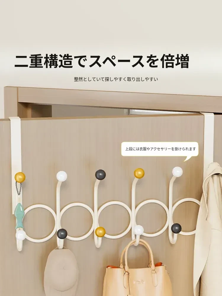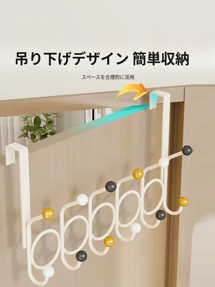ドアフック 取り付け不要のハンガー コートフック 衣類収納 壁掛けラック おしゃれなデザインで寝室やキッチン、バスルームに最適!すっきりとした空間を実現します。