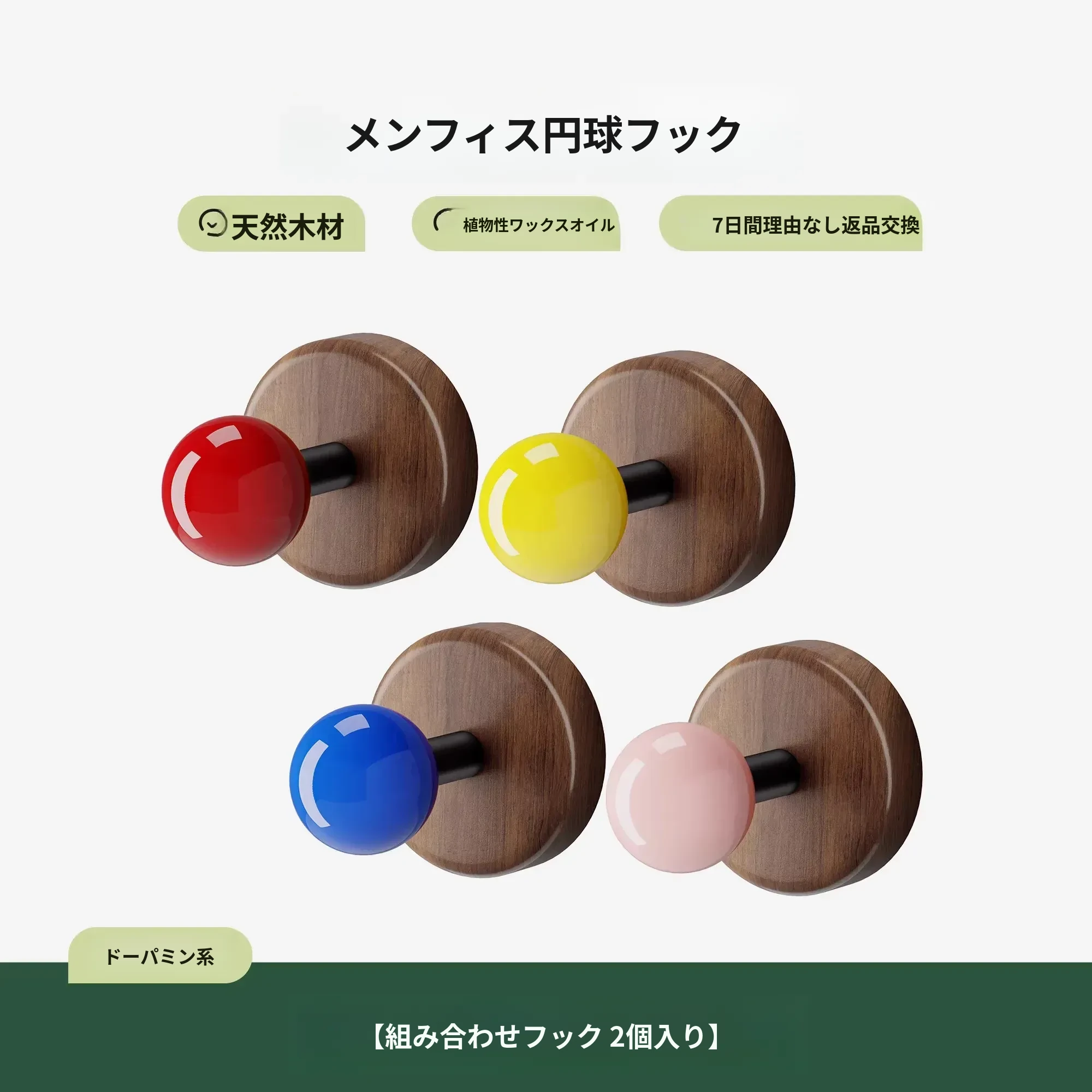 【無垢材ドーパミン-4個入り】赤黄青ピンク